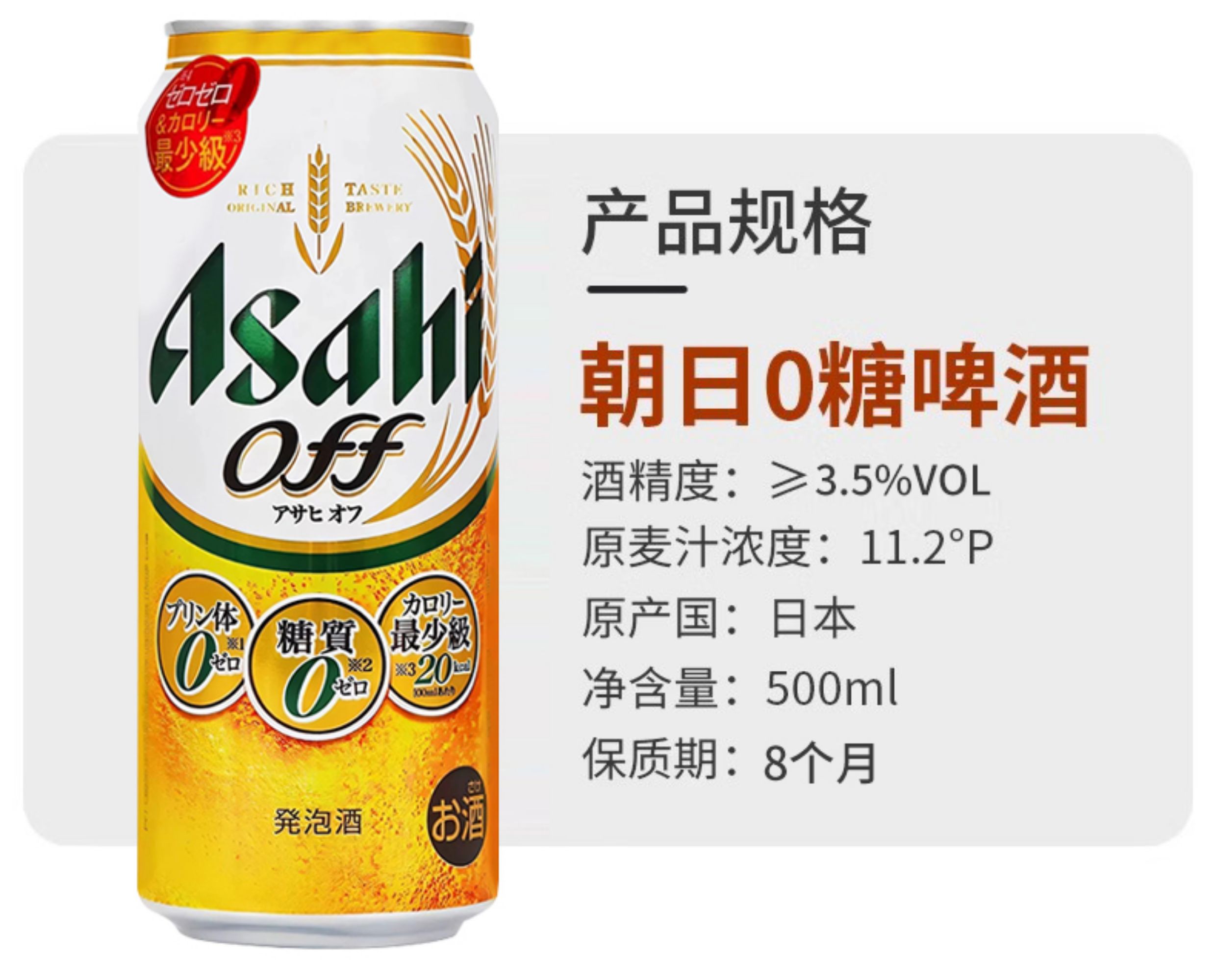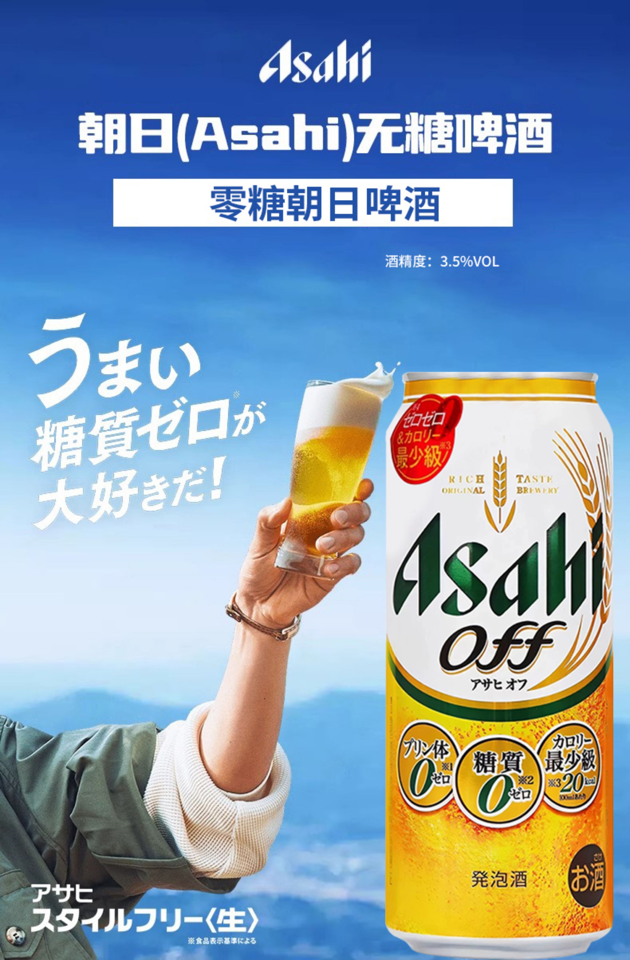 日本进口朝日OFF无糖低卡路里0零糖0嘌呤生啤酒500ml发泡酒