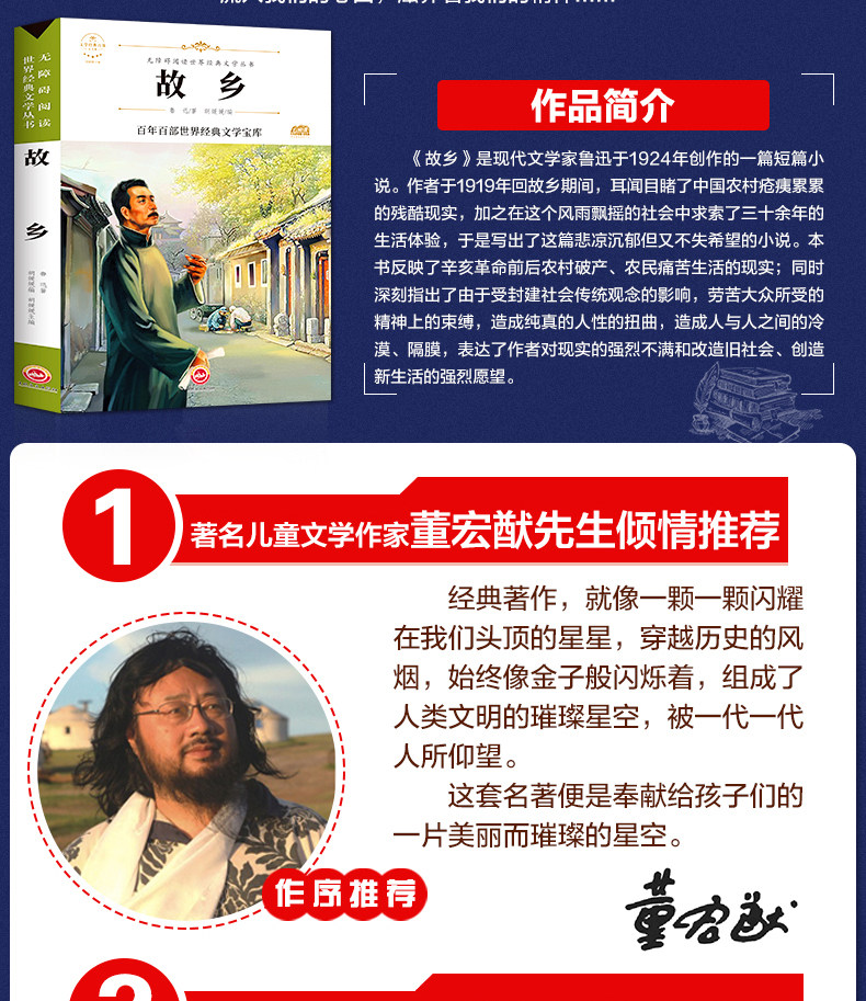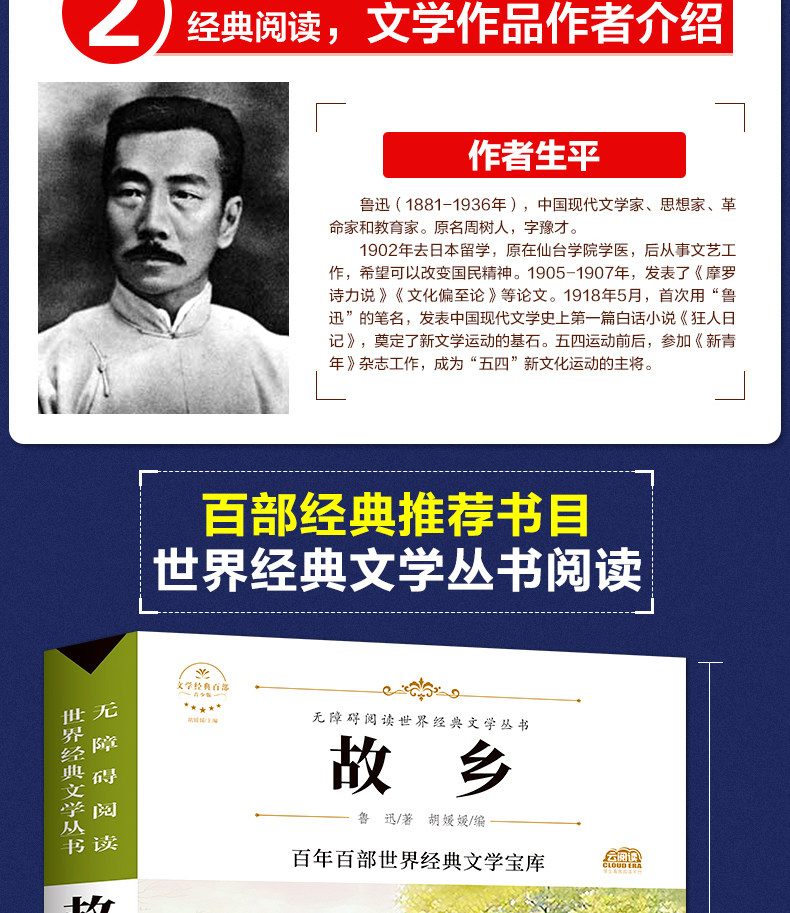故乡 鲁迅原著正版小学生鲁迅读本六年级必读课外书上册下册鲁迅的书籍全集小说散文杂文集作品集小学生四五年级阅读朝花夕拾呐喊