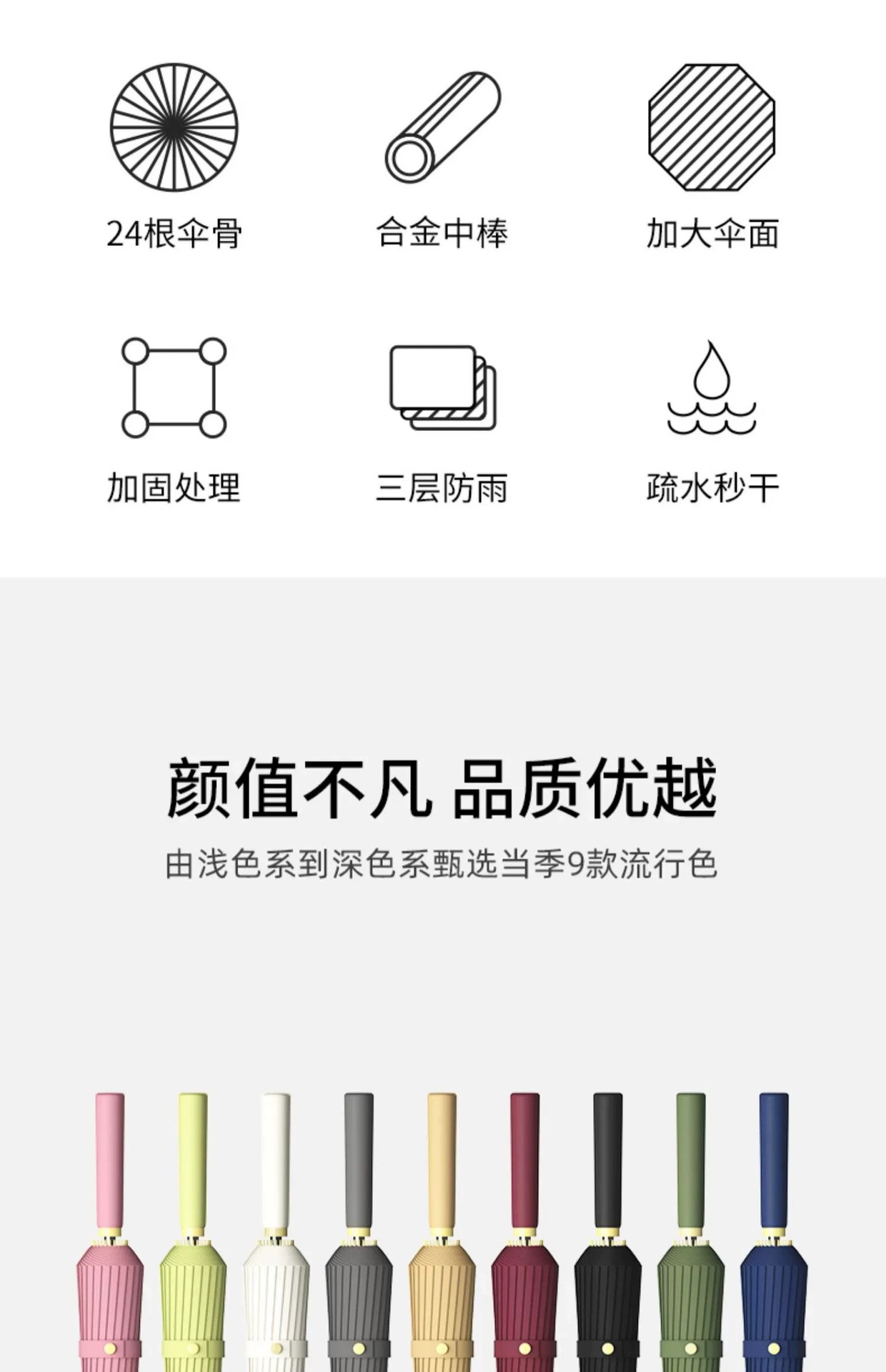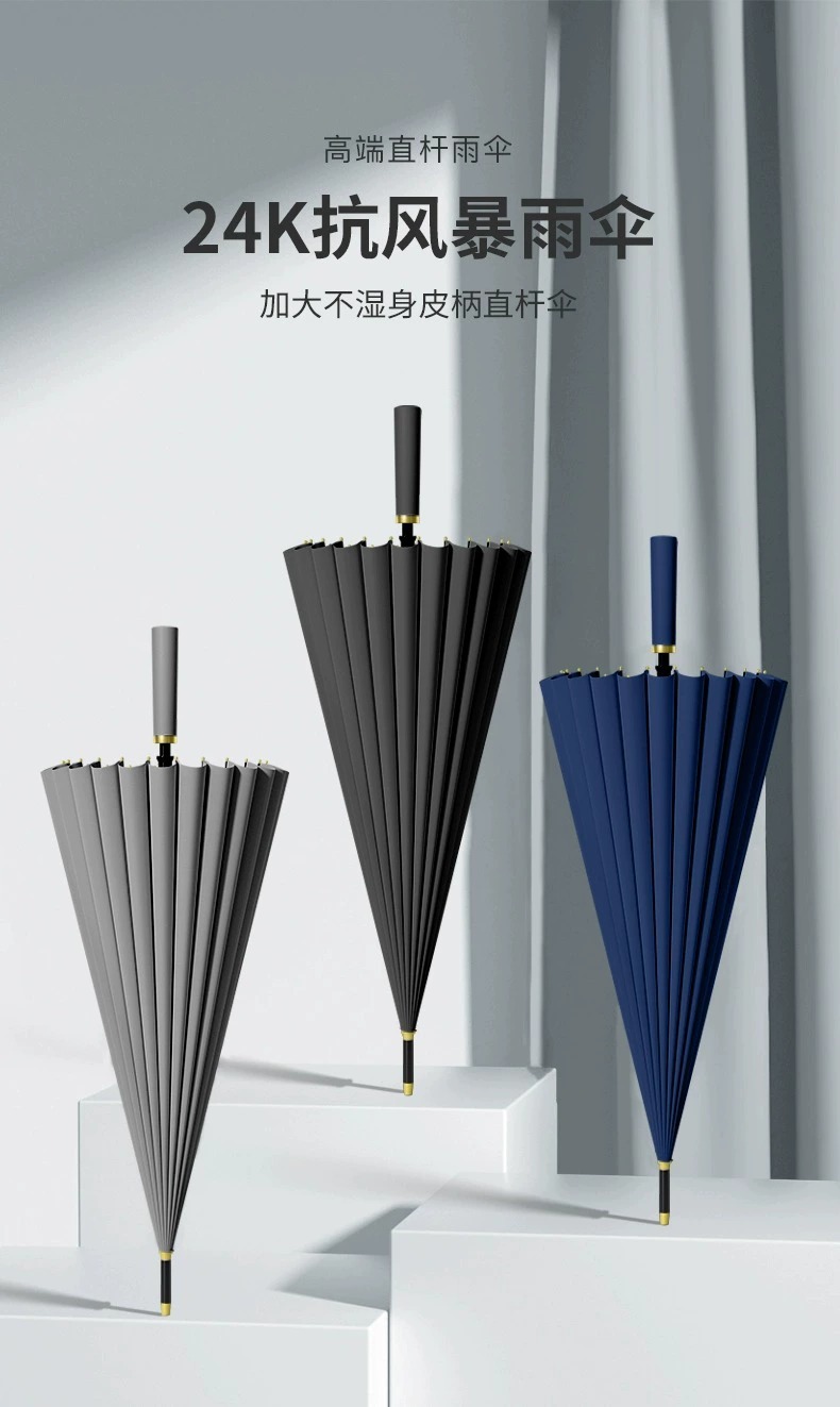 新款直杆皮柄雨伞 纤维骨架抗风暴雨伞 加大不湿身 送背带式伞套