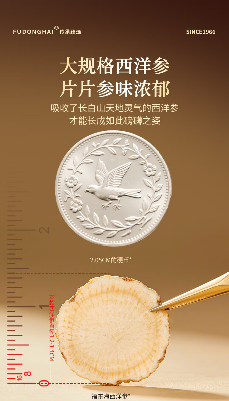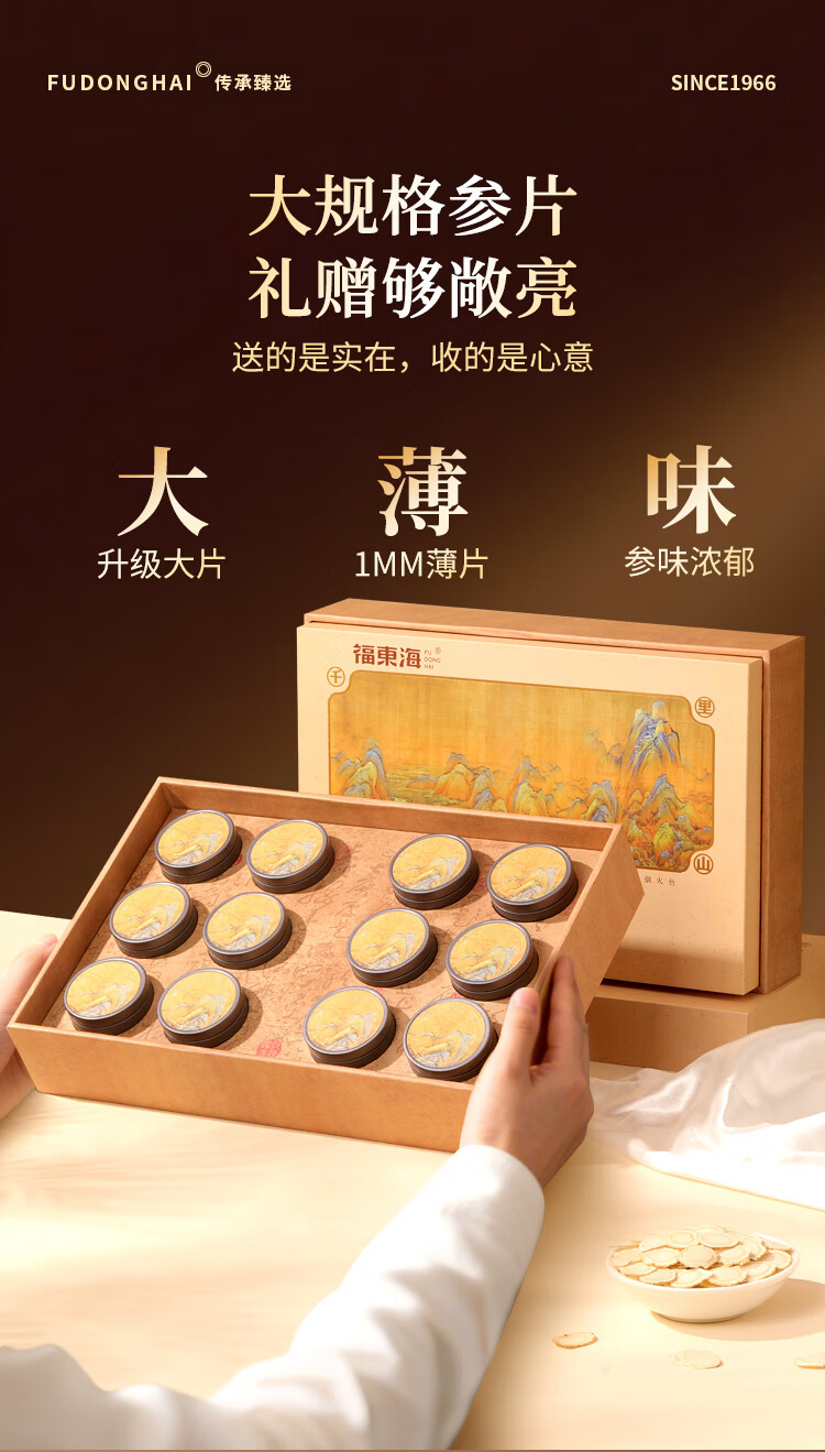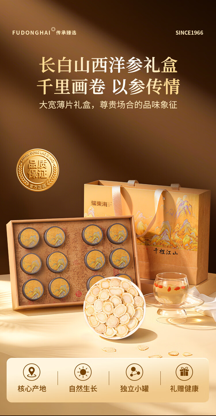 福东海 西洋参片礼盒120克正宗长白山花旗参约1.4cm补品送长辈父母礼品