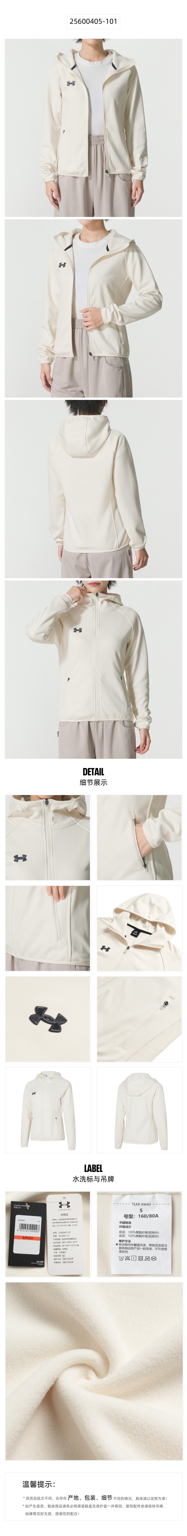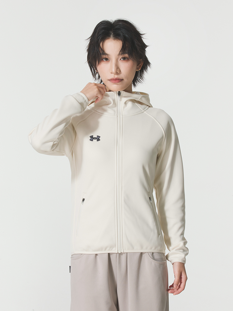安德玛团队 女款珍珠白 针织连帽夹克外套