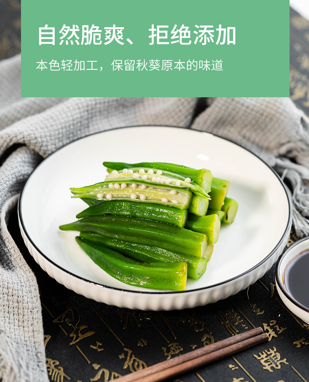 A:急速鲜冻的秋葵口感和新鲜秋葵焯水后入冰水冷却的口感是一样的,没有明显差别,鲜冻秋葵已经过漂烫,烹饪时不适合过长。