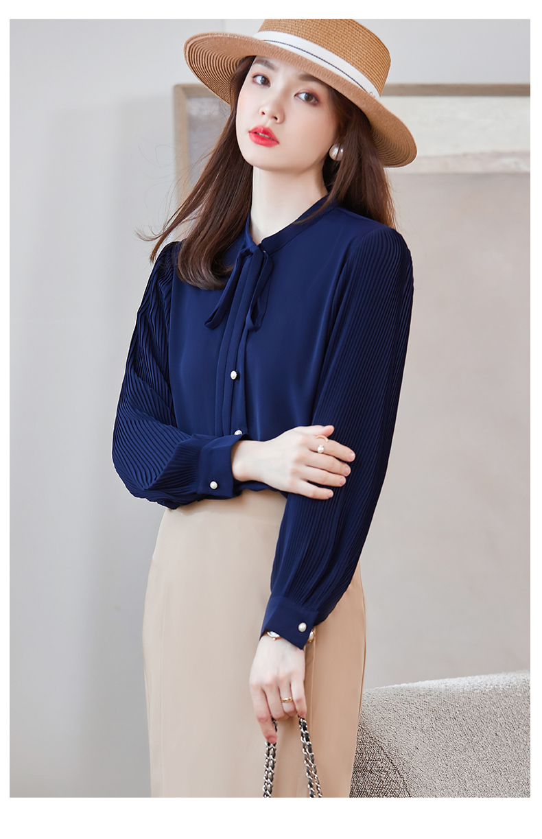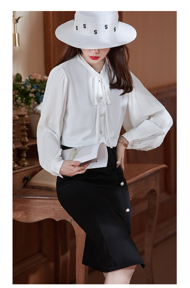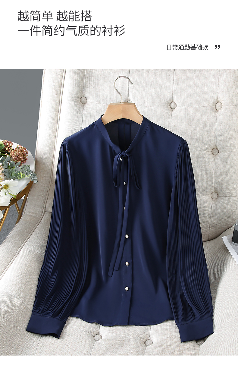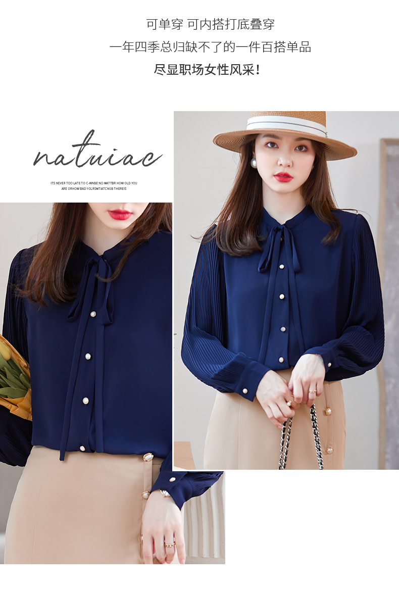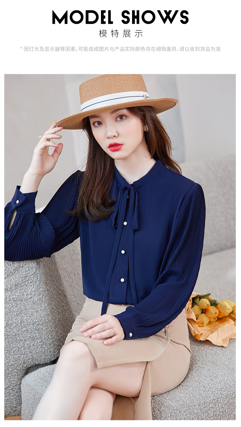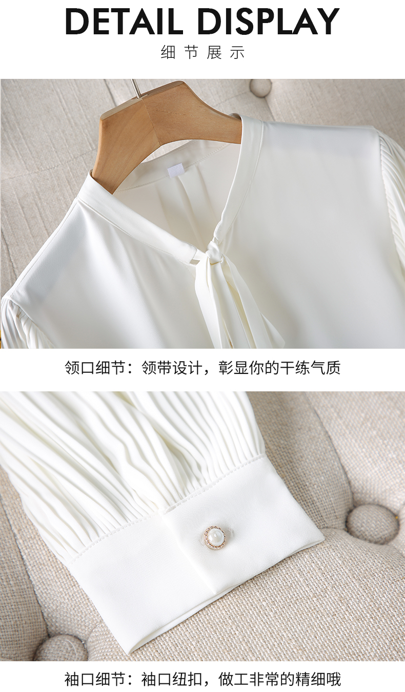 洋气时尚褶皱灯笼袖衬衫设计感休闲百搭时尚百搭系带衬衣