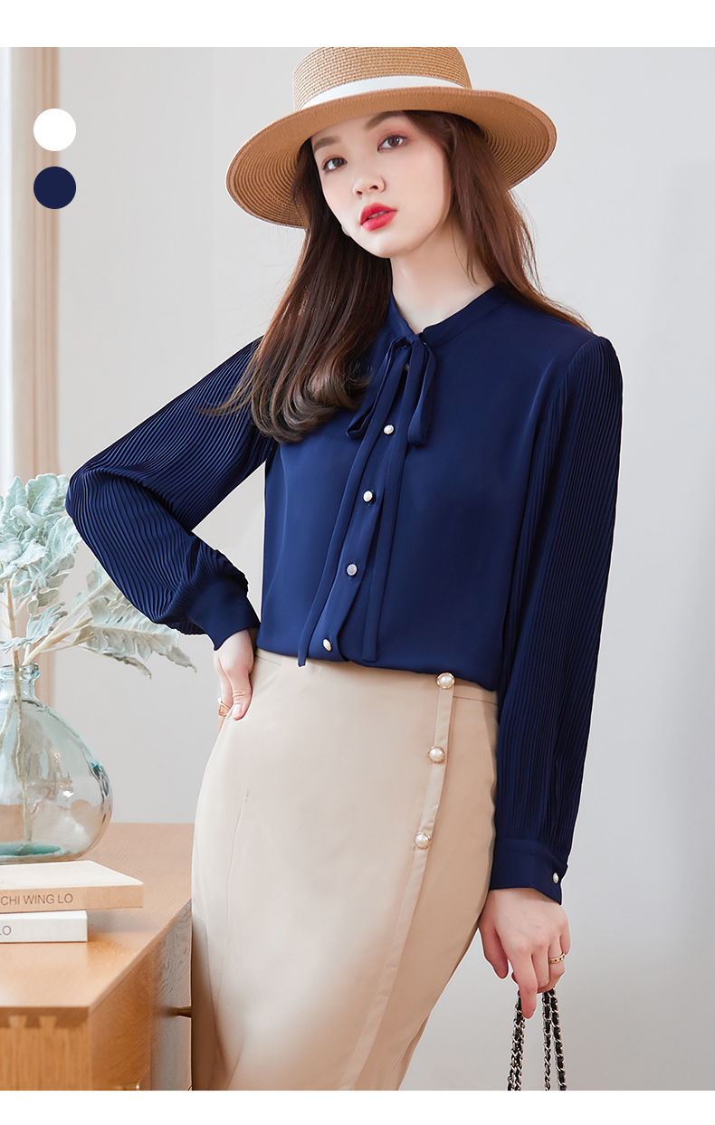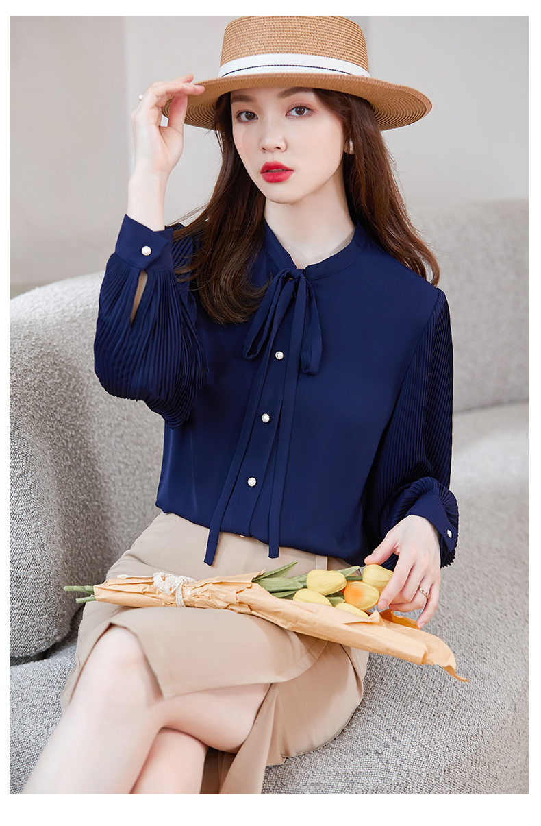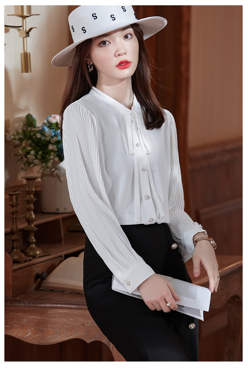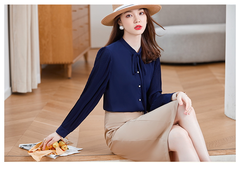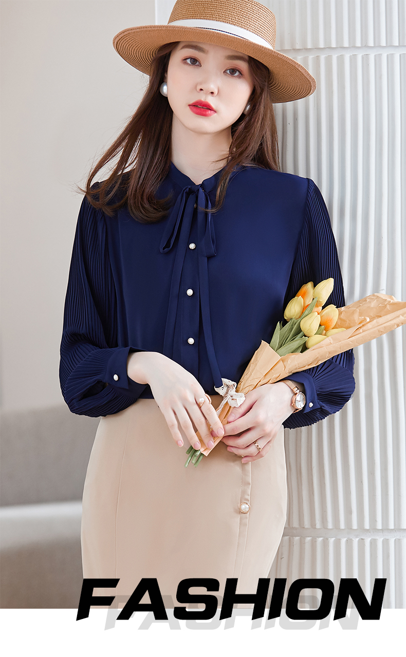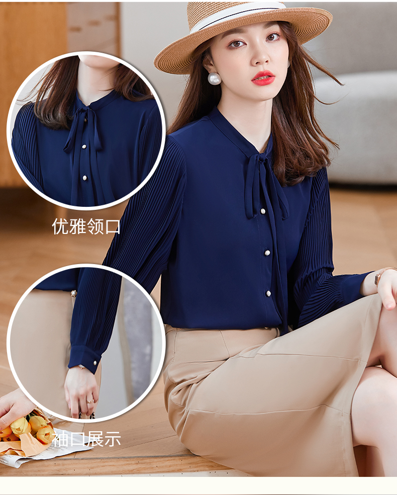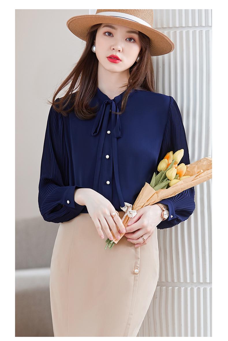 洋气时尚褶皱灯笼袖衬衫设计感休闲百搭时尚百搭系带衬衣