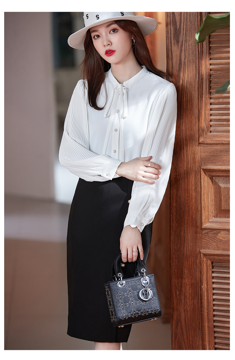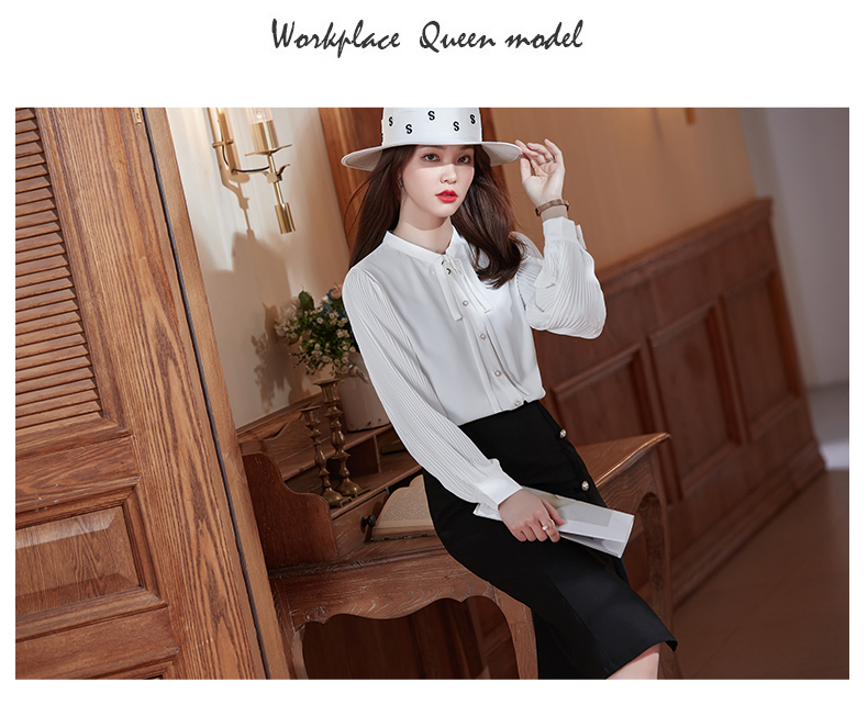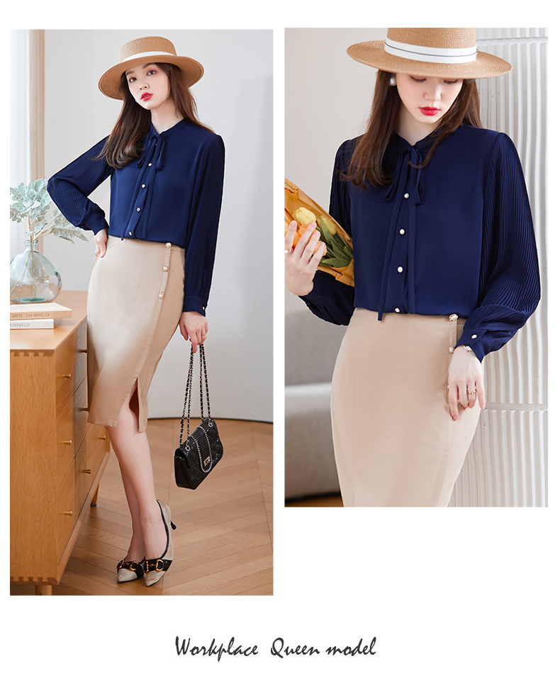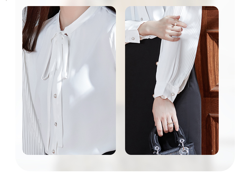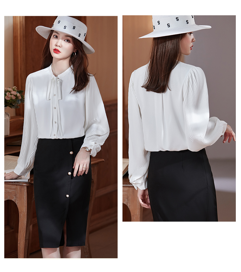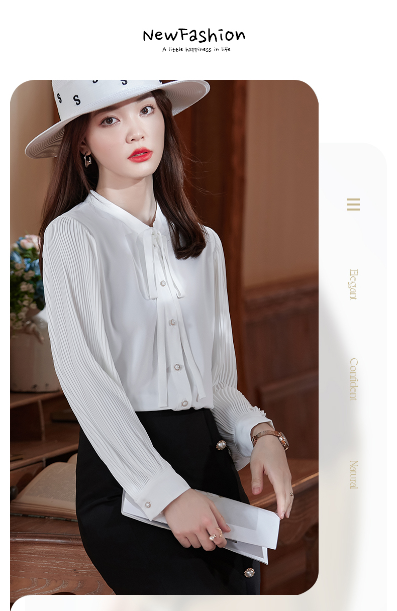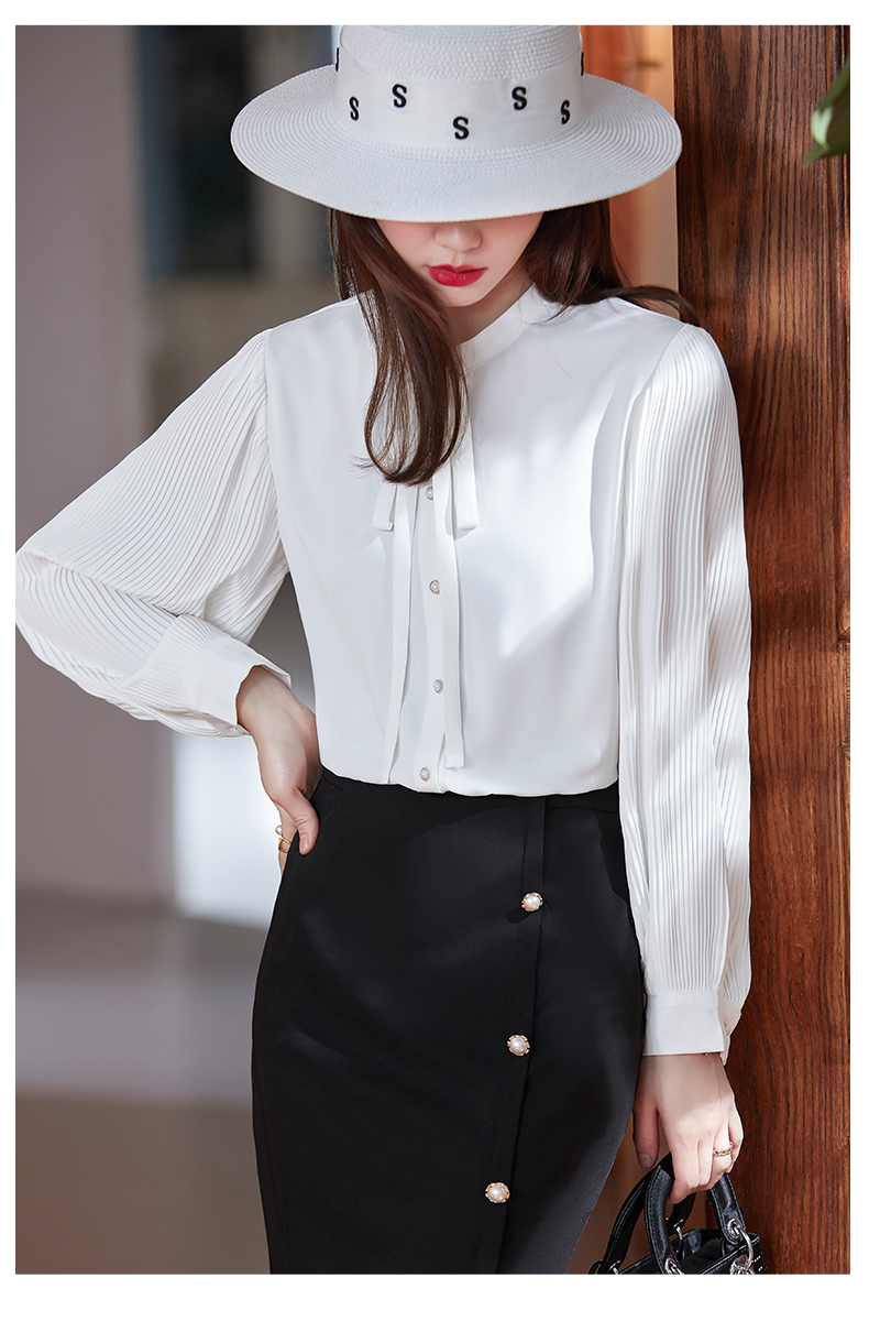 洋气时尚褶皱灯笼袖衬衫设计感休闲百搭时尚百搭系带衬衣