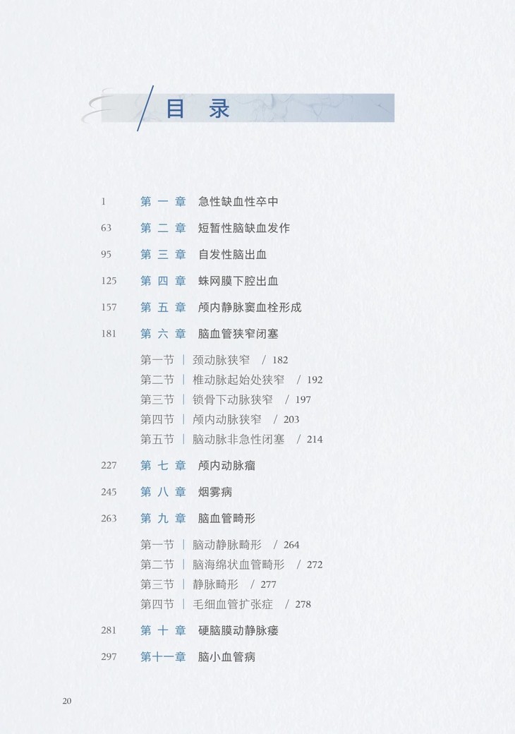本分册共分12章,包括缺血性卒中、短暂性脑缺血发作、自发性颅内出血、蛛网膜下腔出血、 脑血管狭窄/闭塞、动脉瘤 、烟雾病、脑血管畸形、脑动静脉瘘、脑小血管病以及少见病因脑血管病。每个病种的撰写内容包括: 概述(包括定义和流行病学,简介病因与发病机制)、 临床表现、 辅助检查 (包括影像学检查等)、 诊断和鉴别诊断、治疗( 包括治疗前评估, 治疗方式选择, 治疗管理)以及预后评估及随访管理。对于从事神经系统疾病诊疗、教学及研究工作的神经内科、神经外科、神经介入科、急诊科、老年科等相关专业的医生、学生及研究人员具有较强的指导价值。