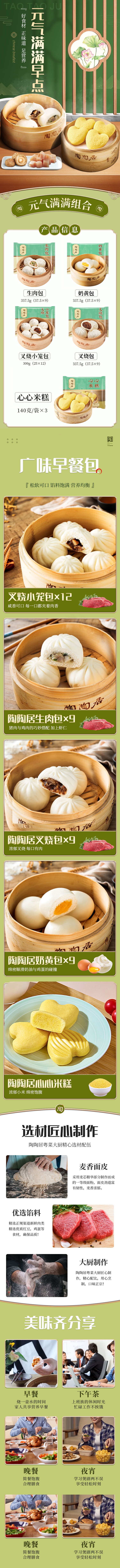 陶陶居早点组合7件装1732.5g 冷链包邮到家,心心米糕3袋、生肉包1袋、叉烧包1袋、叉烧小笼包1袋、奶黄包1袋