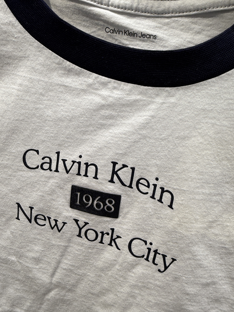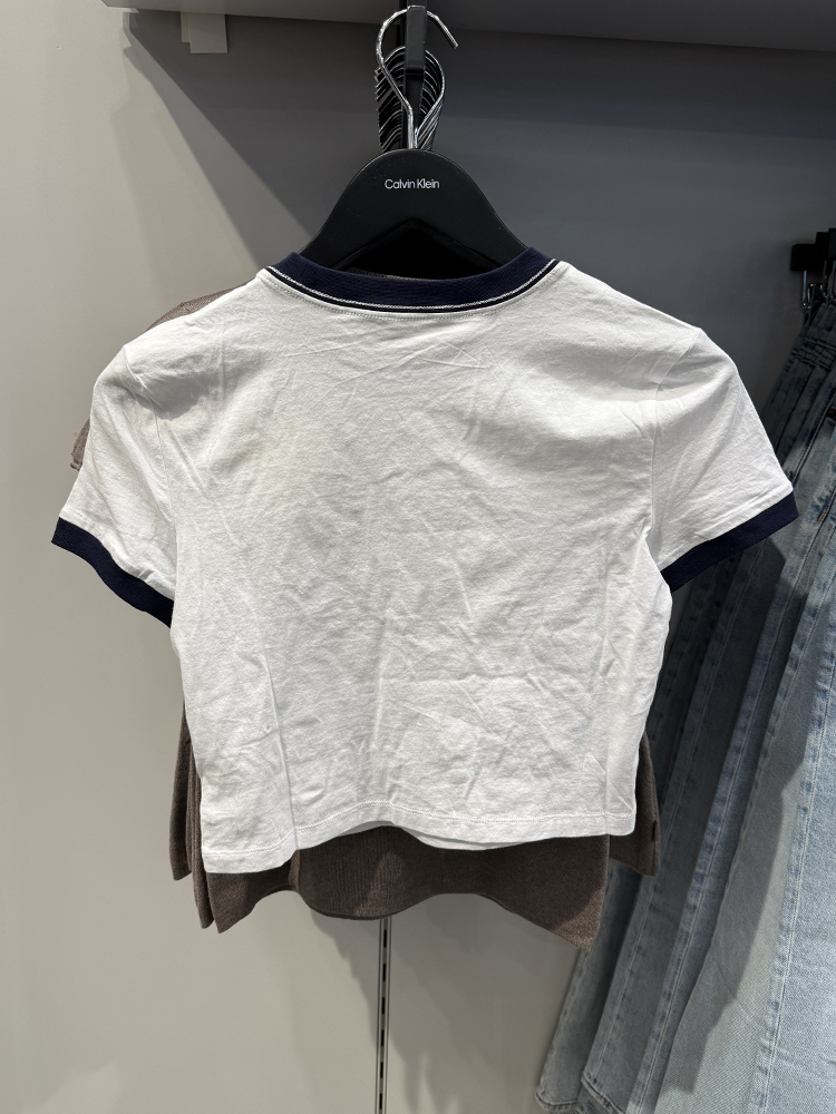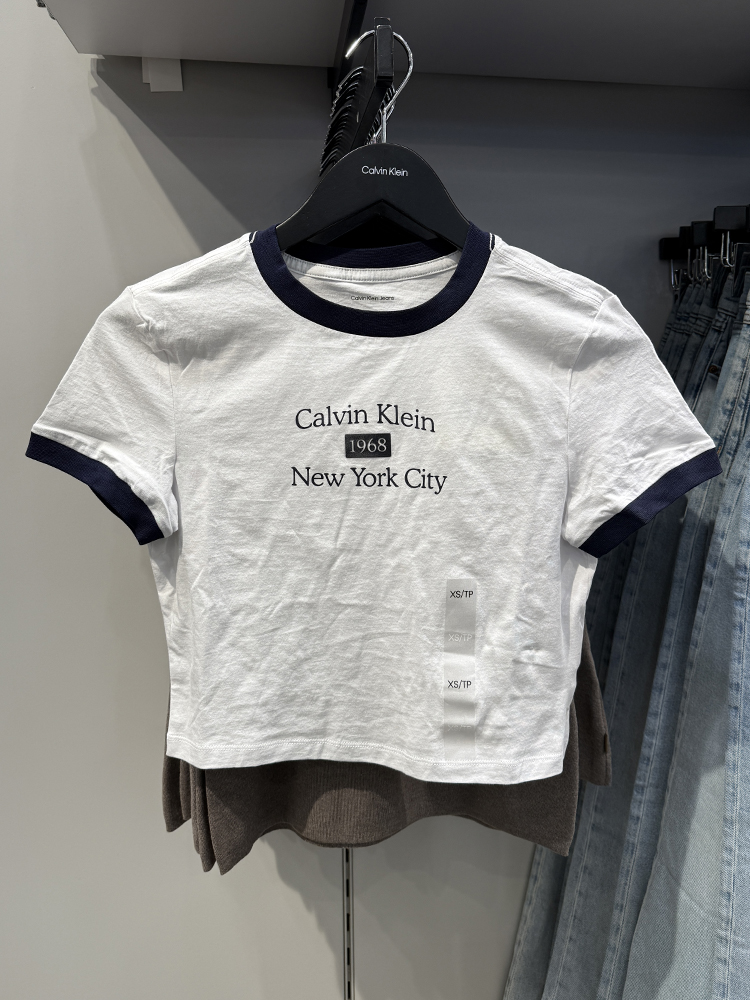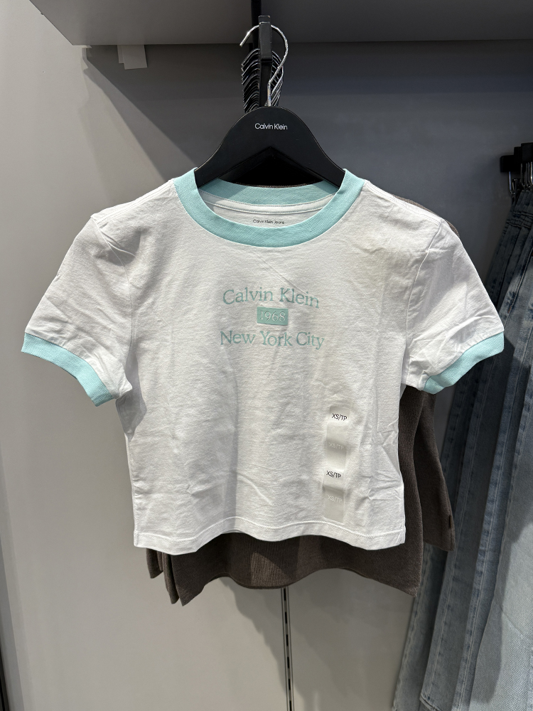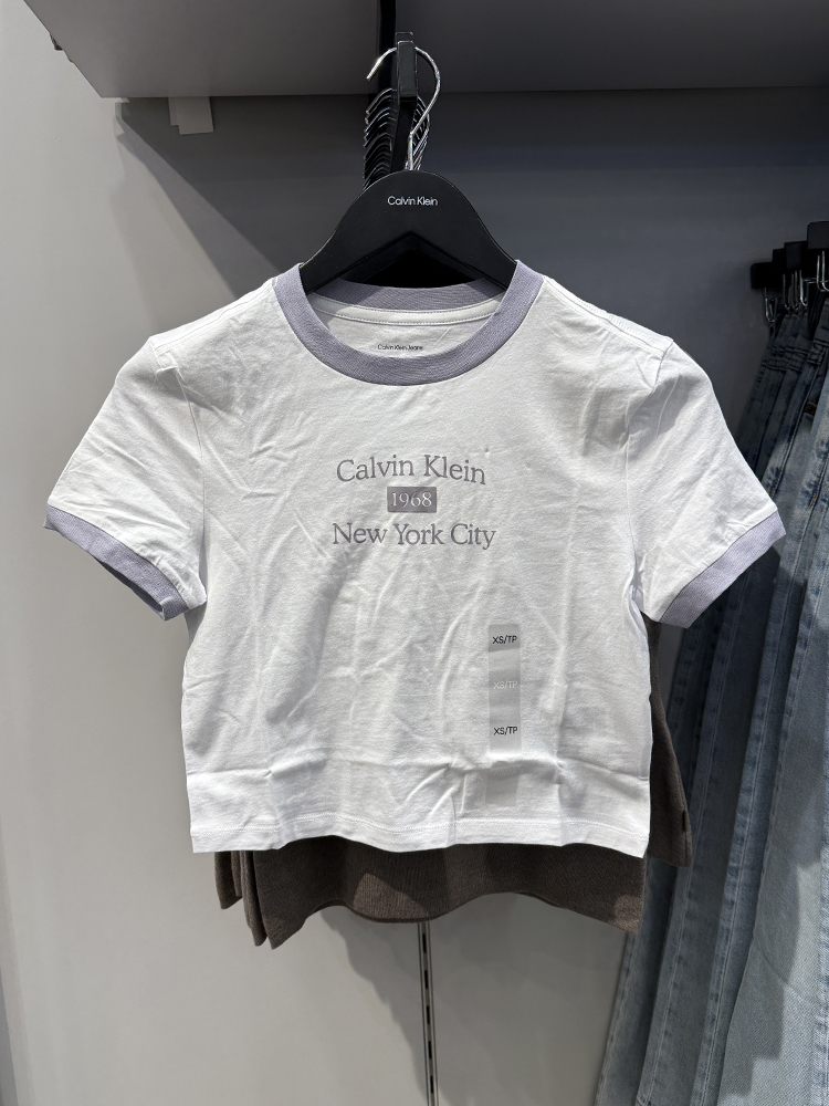 Calvin Klein Jeans/CK 女士夏季纯棉露脐短款休闲圆领短袖T恤