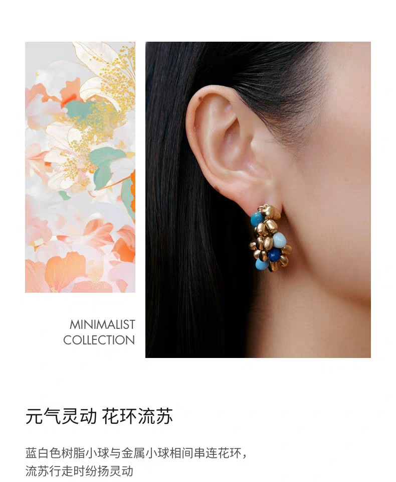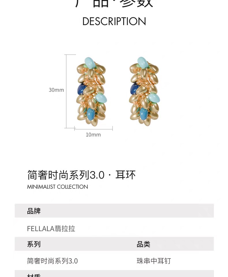 2楼Fellala/翡拉拉「简奢3.0」系列时尚串珠中耳钉简约时尚女耳饰货号925416104吊牌价799现价719