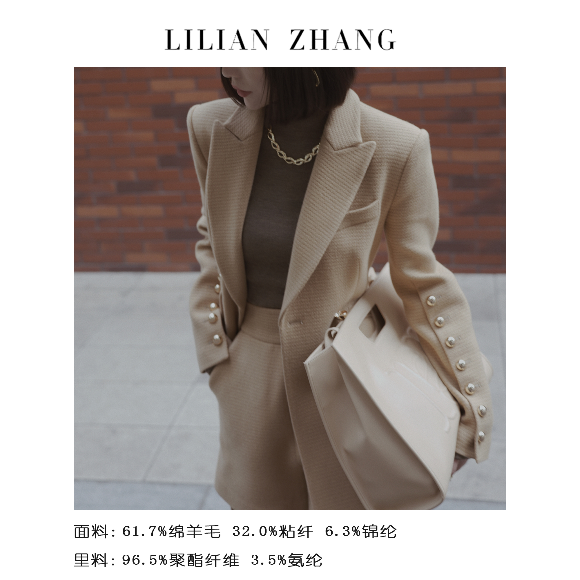 - LILIAN ZHANG ,创立于2008年,为 ARMANI 等国际品牌设计创作时装。 LILIAN ZHANG 坚持原创设计、坚持立体剪裁、坚持颠覆奢侈品价格、坚持简约经典 ,深受时尚女性喜爱。