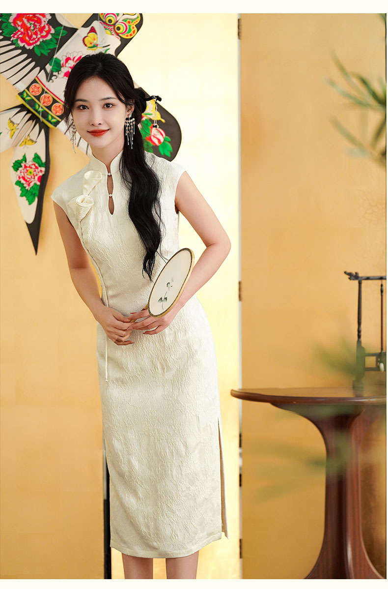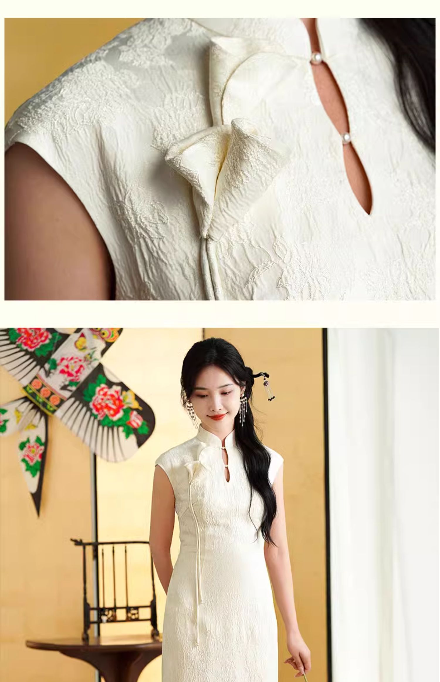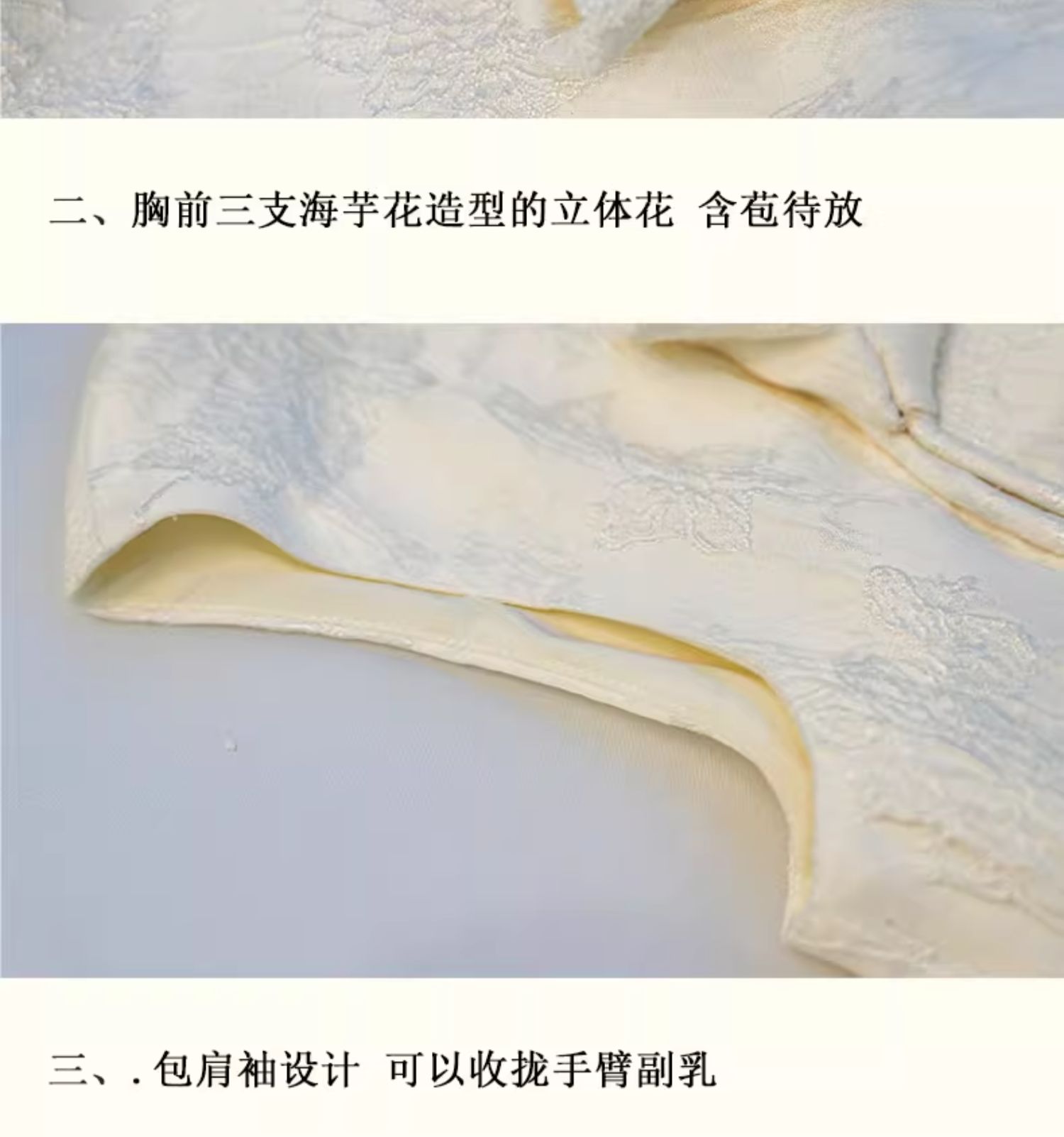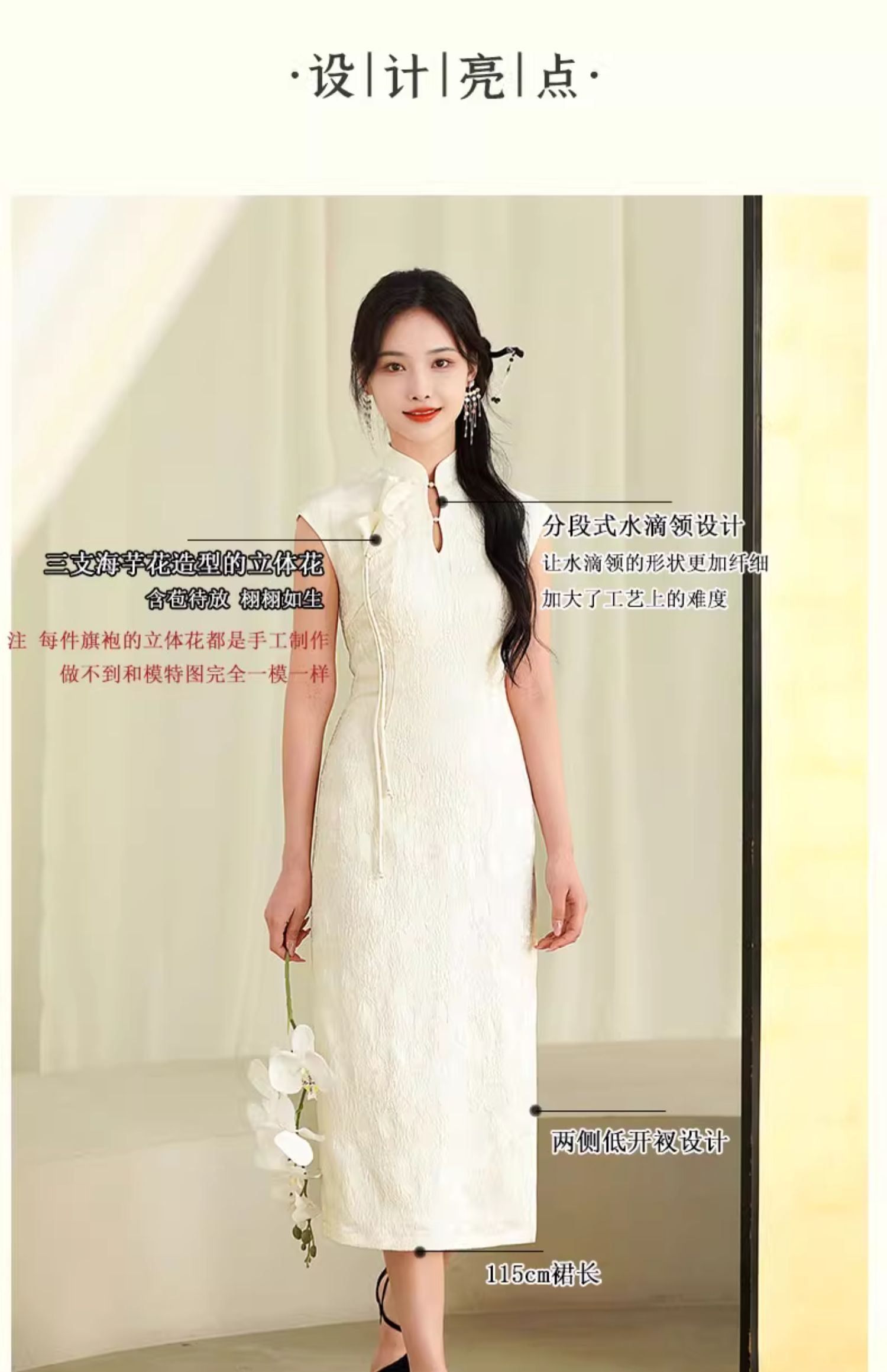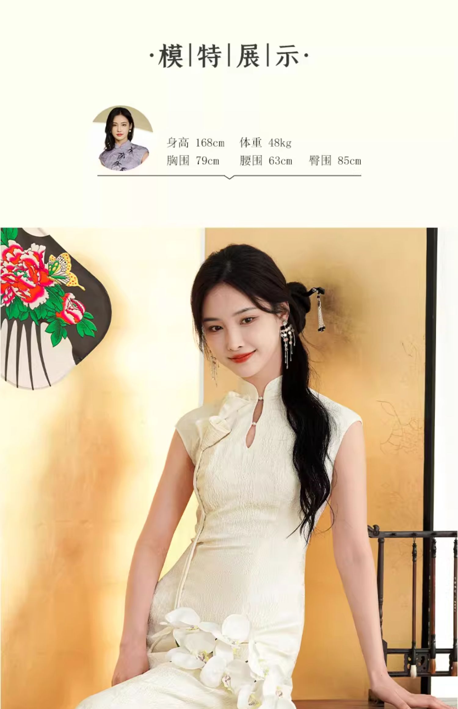 上海逸红颜瑾华2025夏季新款提花分段水滴领立体花新中式改良旗袍