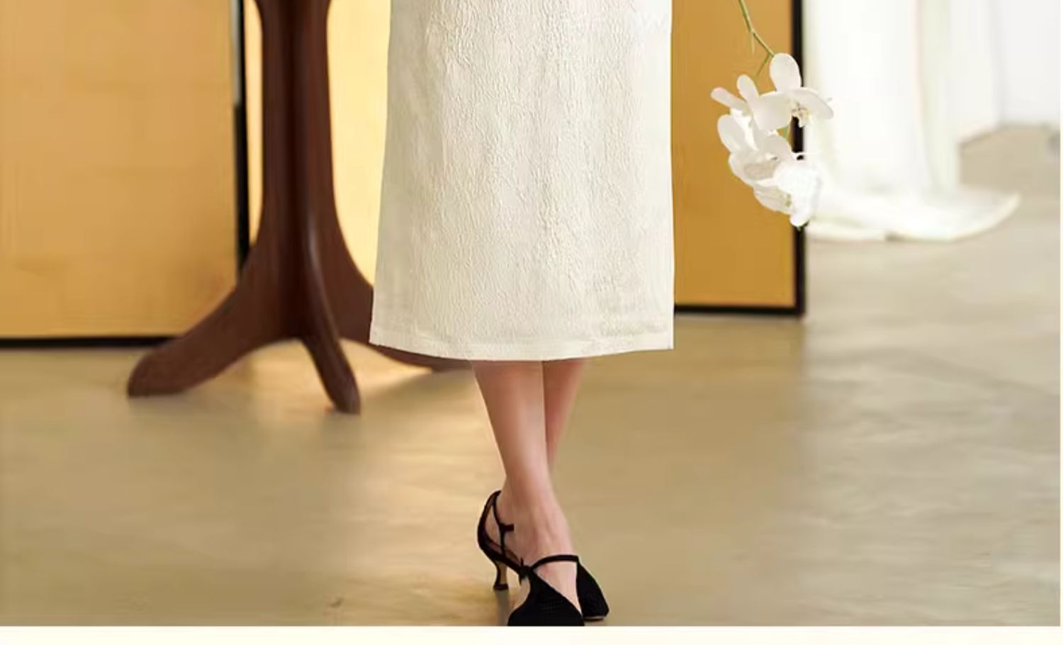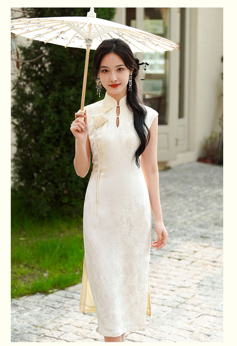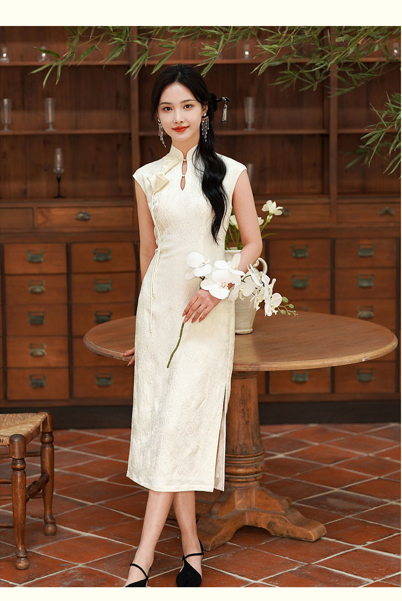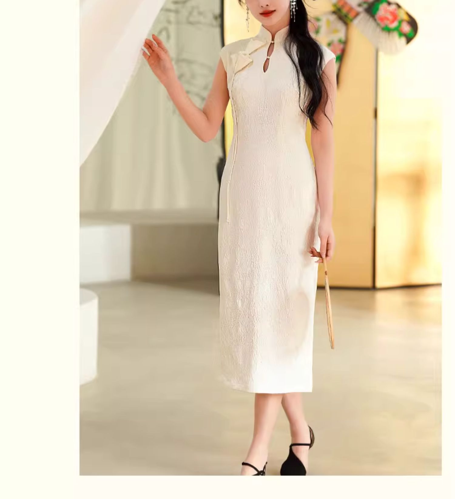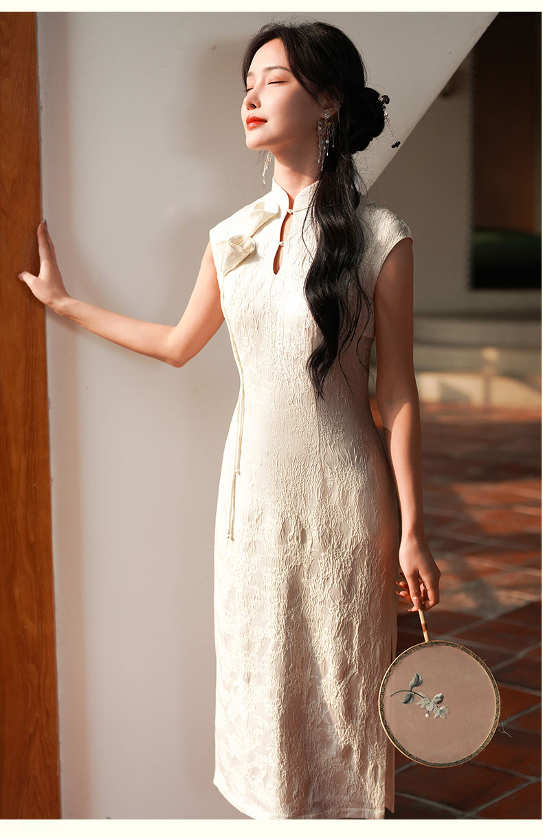 上海逸红颜瑾华2025夏季新款提花分段水滴领立体花新中式改良旗袍