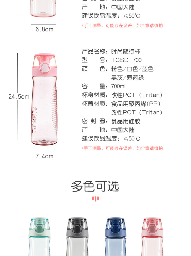 【春上新】10楼 膳魔师 Tritan塑料水杯 TCSD吊牌价158-178 活动价134~151元