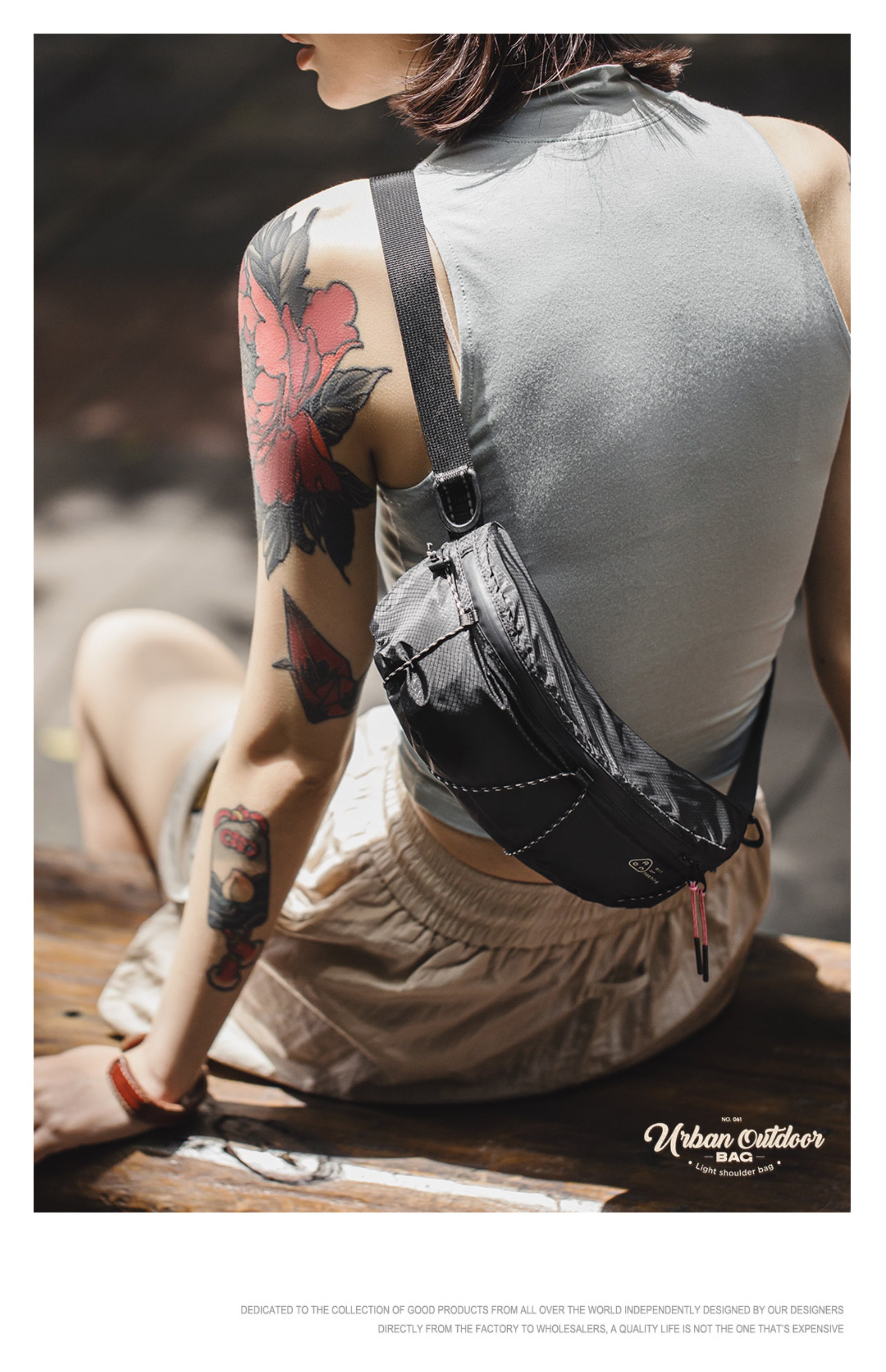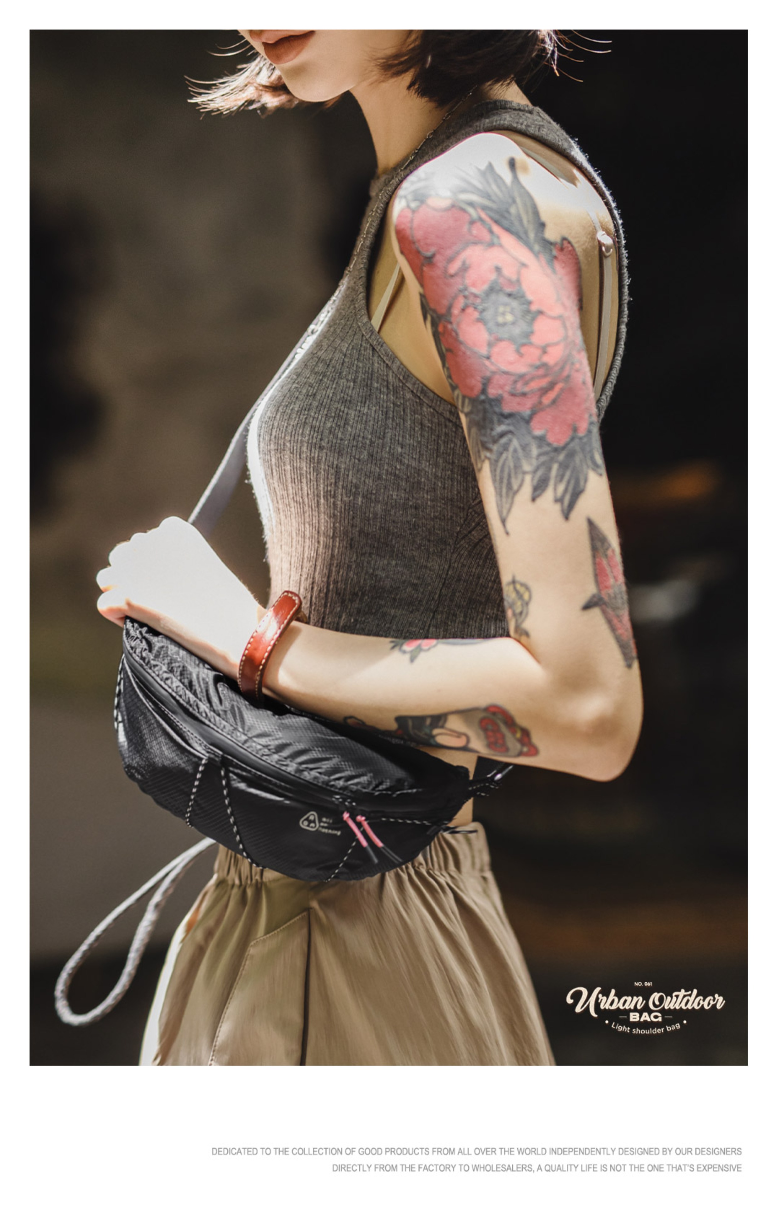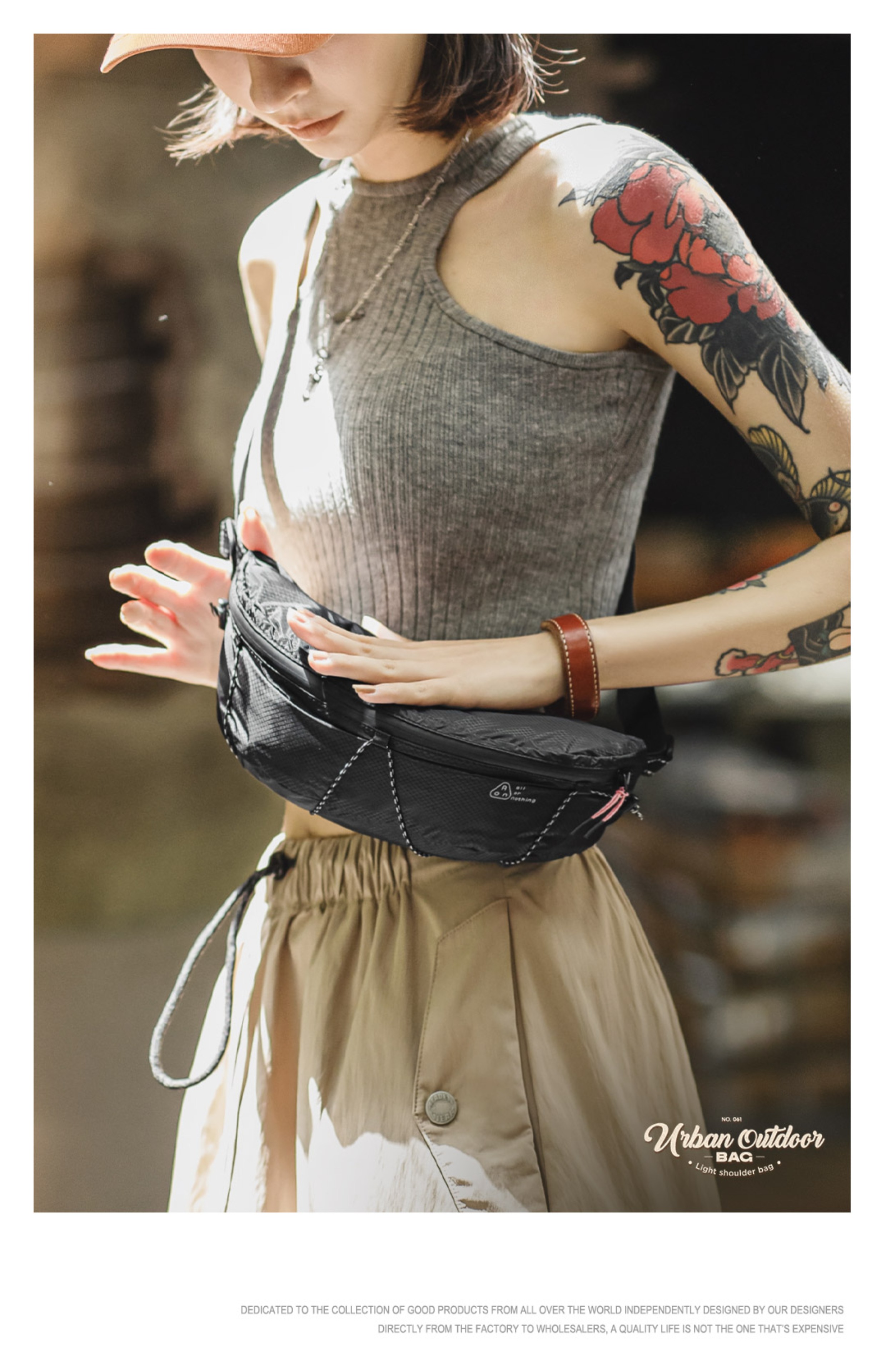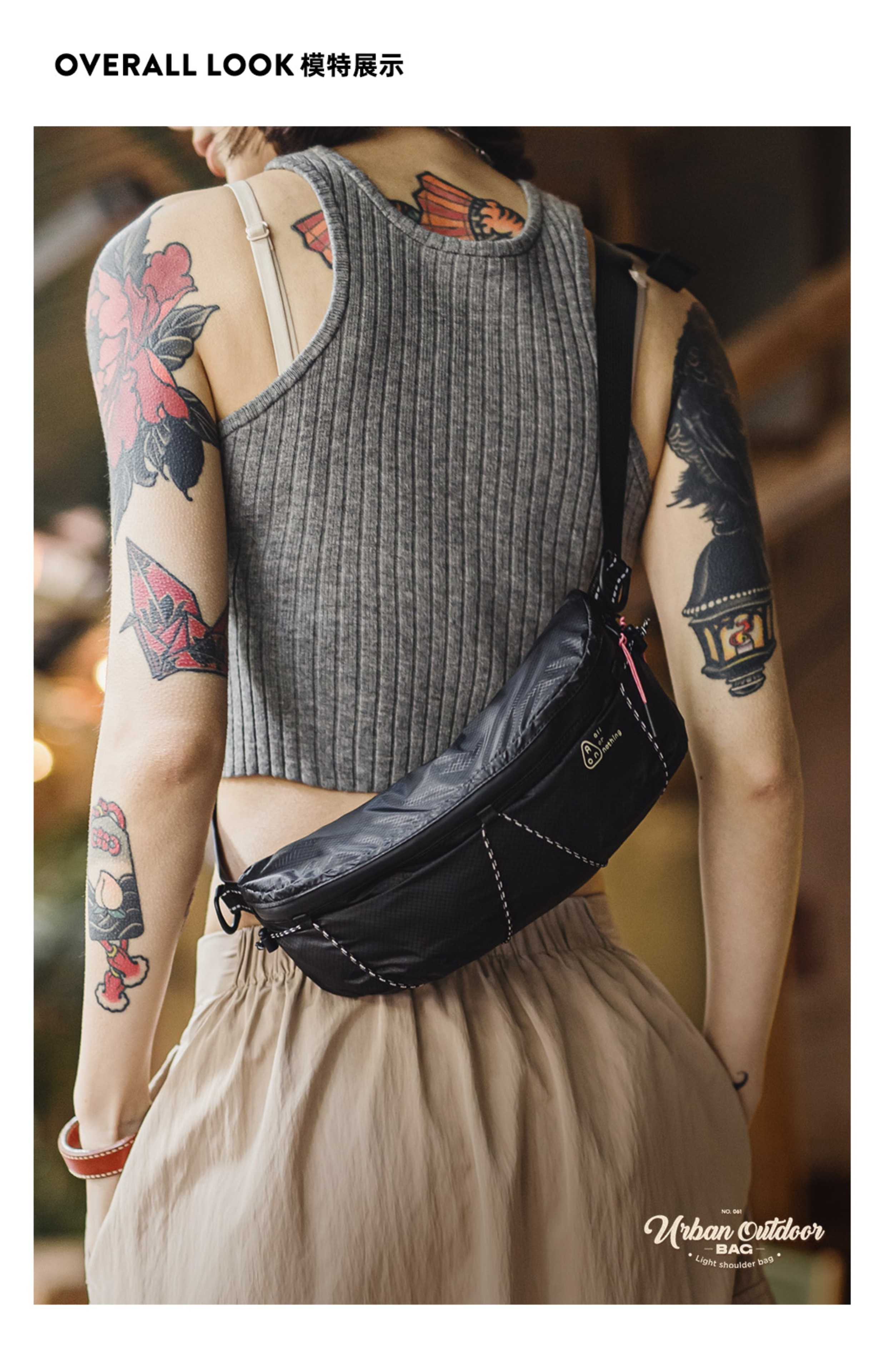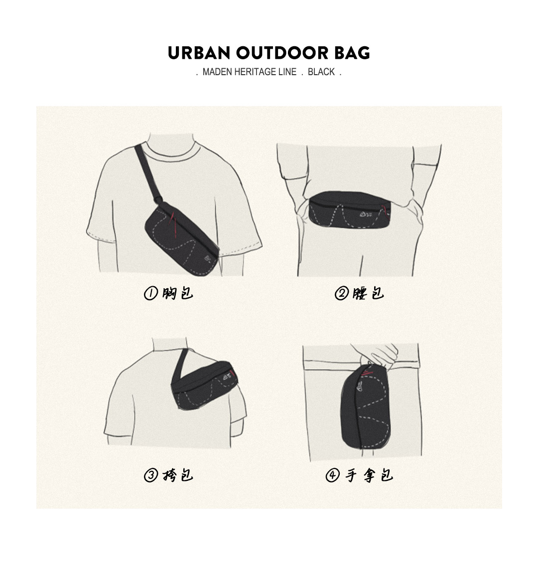 马登女士山系机能斜挎包户外手机腰包摩托车黑色胸包骑行手拿包
