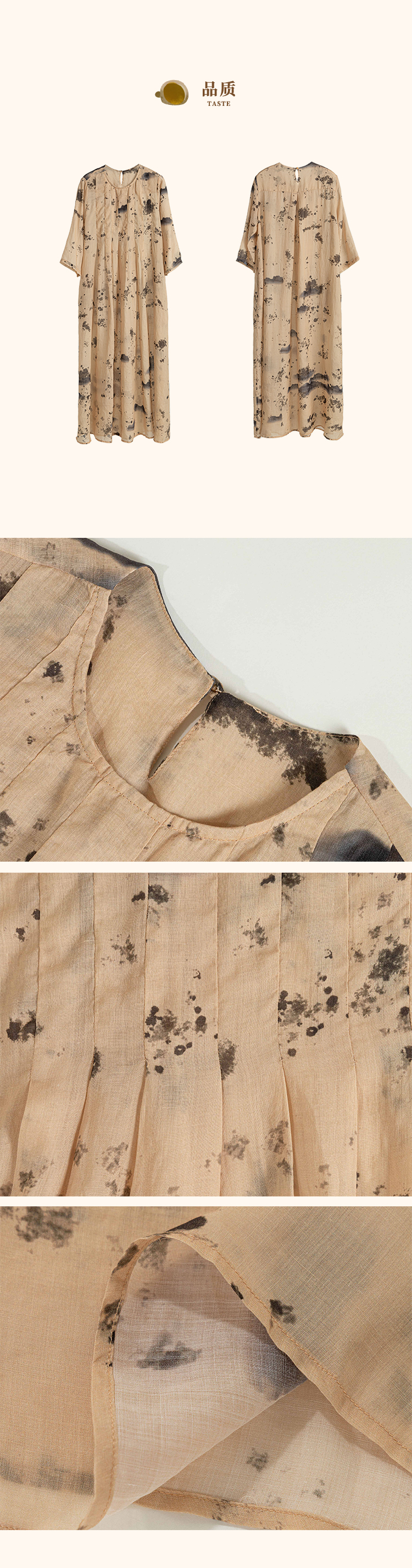 绽放363朵【甜茶系列·白茶】天丝苎麻手绘泼墨山脉国画连衣裙