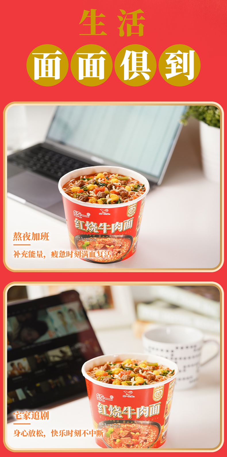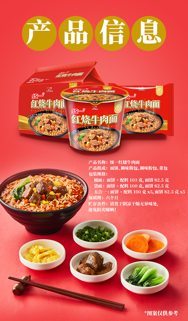 统一卤香红烧牛肉面方便面泡面桶装115g