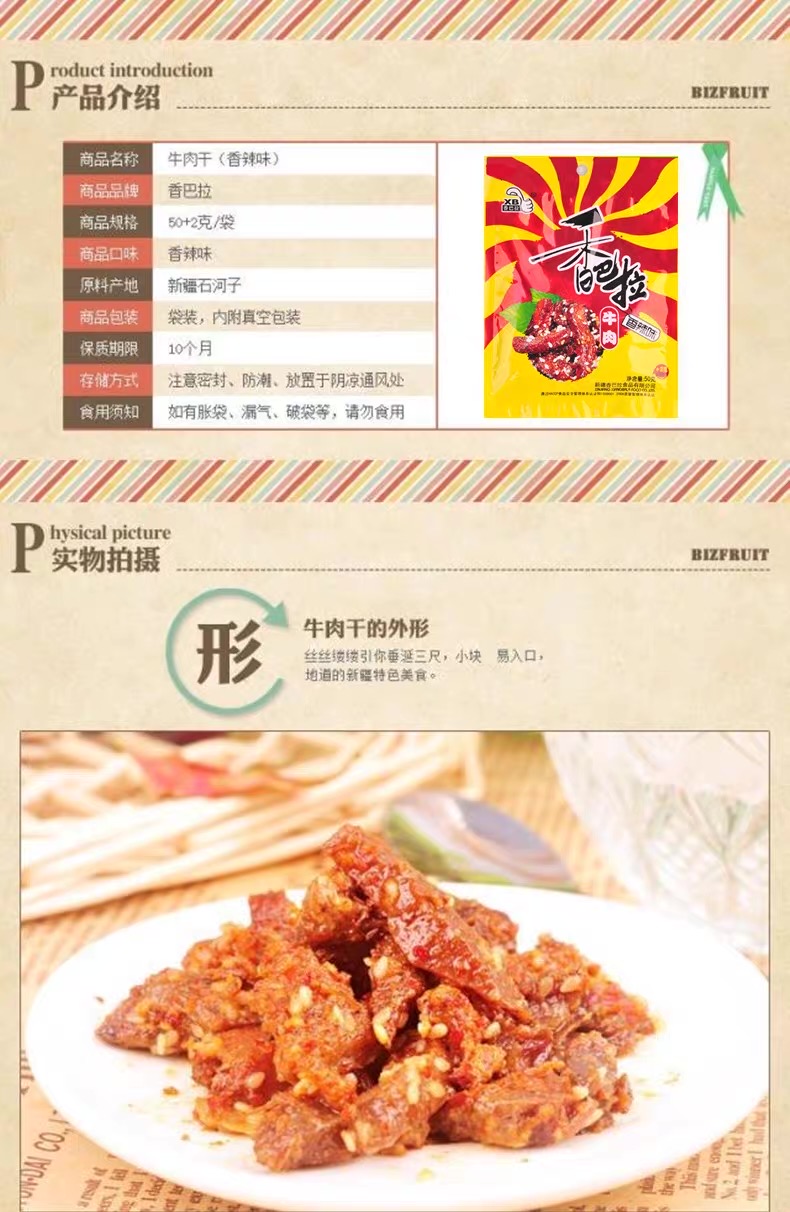 【1件起全国包邮】新疆特产香巴拉牛肉干 真空包装(50g*1包)