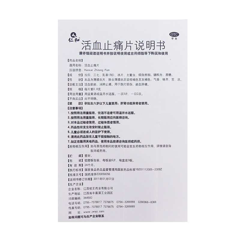 仁和活血止痛片0.8g*18片/盒活血散瘀消肿止痛片跌打损伤淤血肿痛