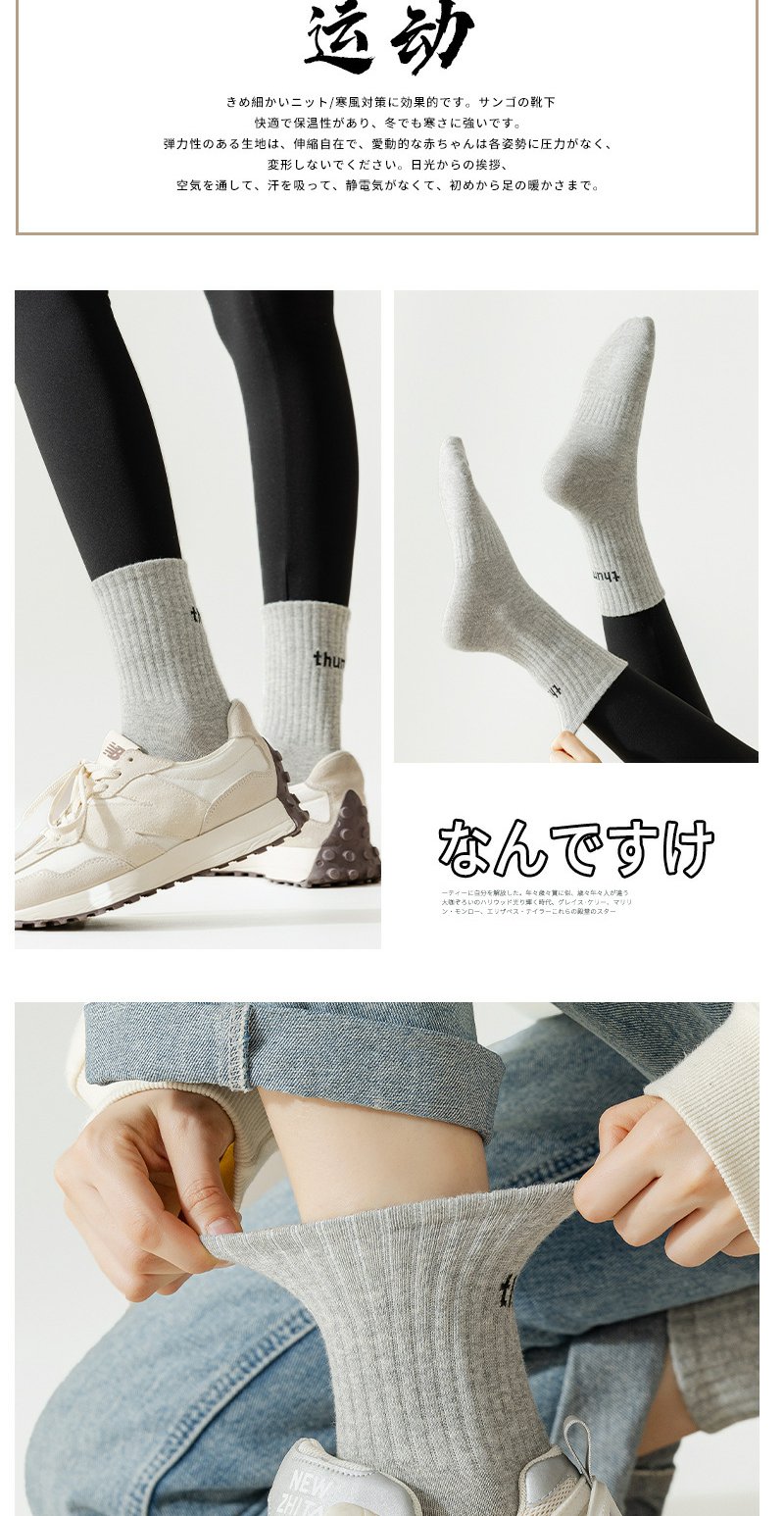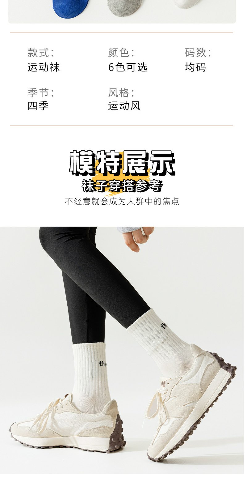 严百搭 袜子女秋冬吸汗透气中筒袜女生抗菌纯棉运动袜1双