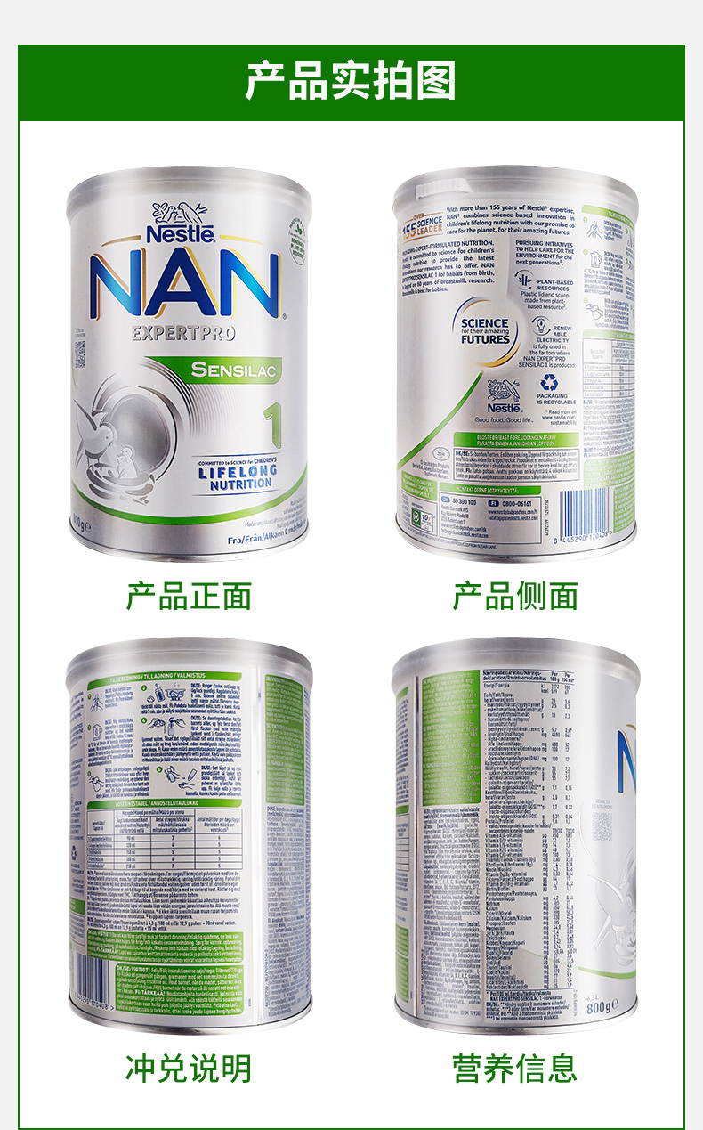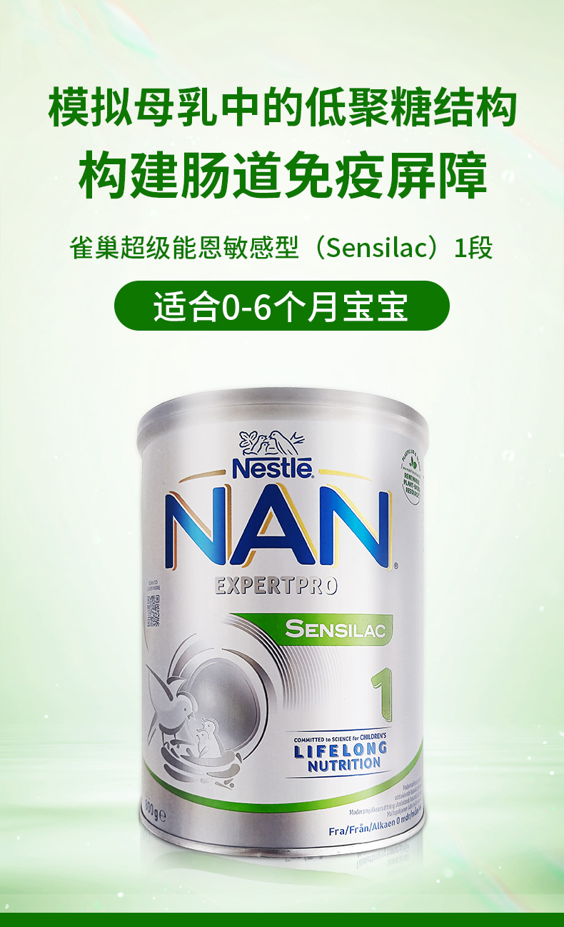 [丹麦/瑞典]雀巢超级能恩敏感型1段800克. Nestle Nan Sensilac1 800g 绿罐