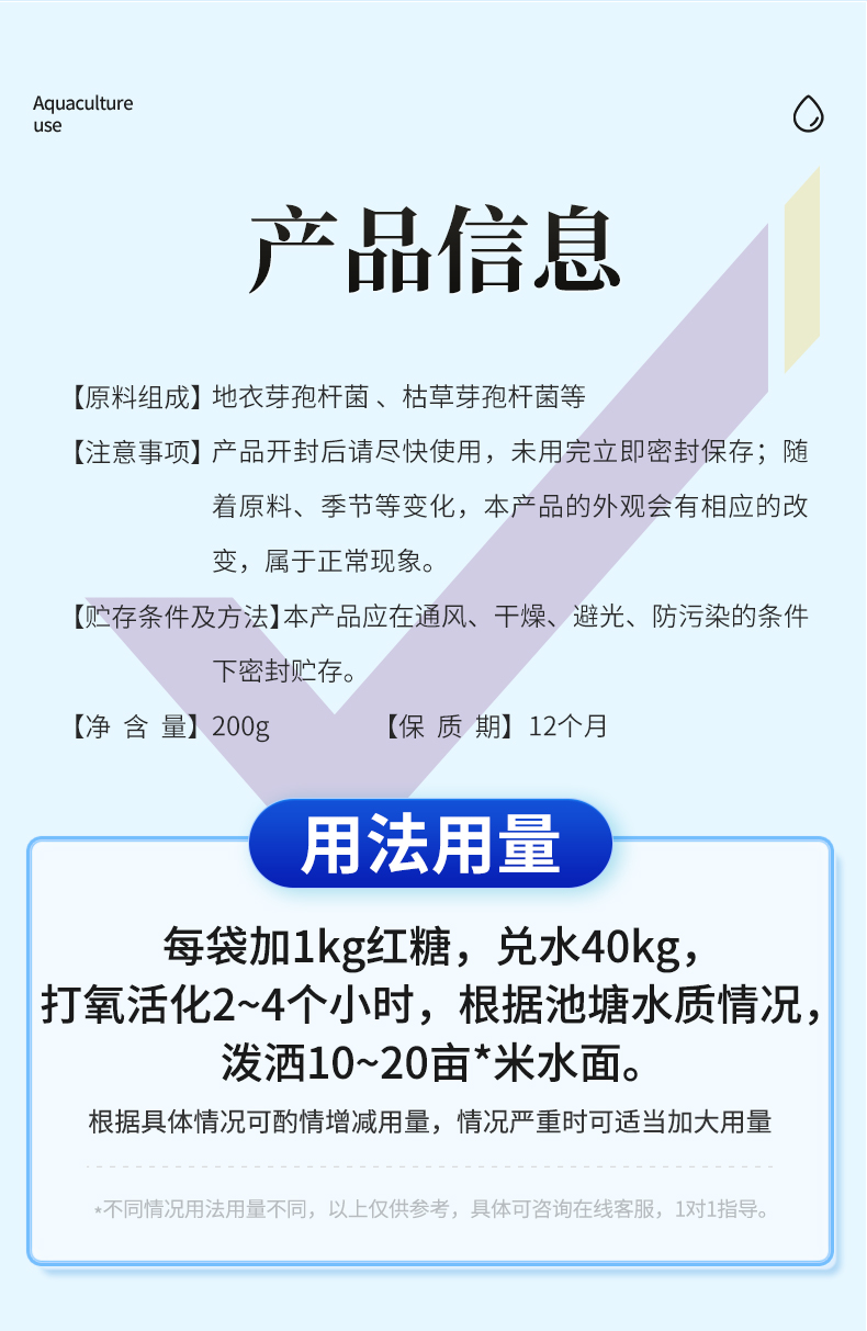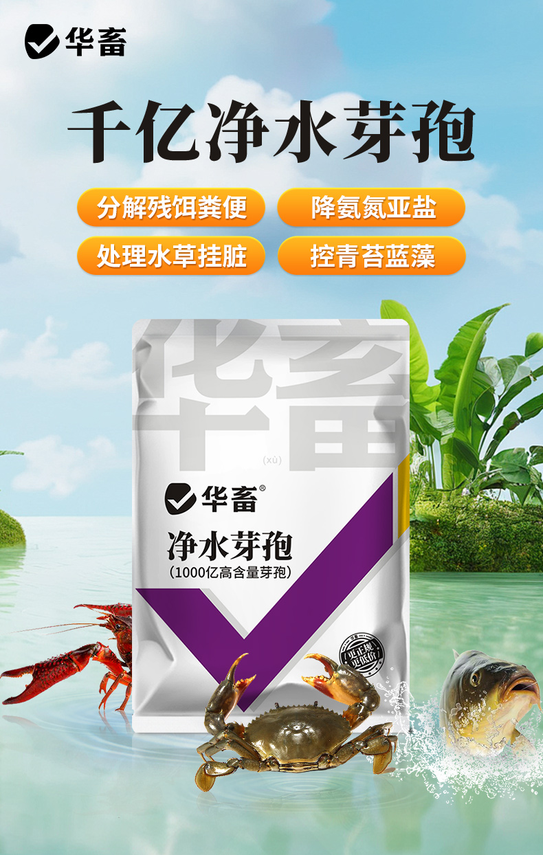 华畜千亿净水芽孢 分解残饵粪便 降氨氮亚盐 处理水草挂脏 控制青苔蓝藻