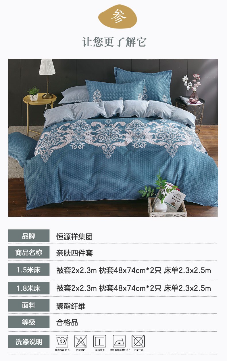 TY 恒源祥彩羊亲肤四件套-格林(蓝) 200*230CM 1DB1962【鲜享2.0】