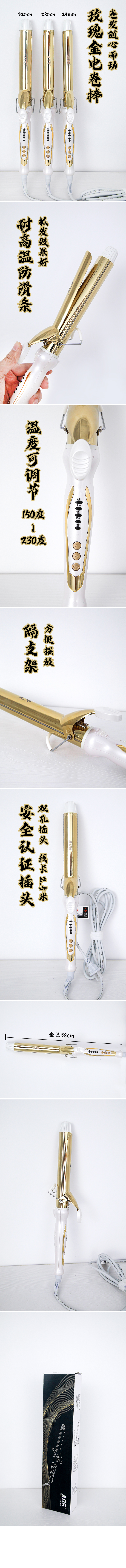 玫瑰金电卷棒发廊专用不伤发大波浪卷发器