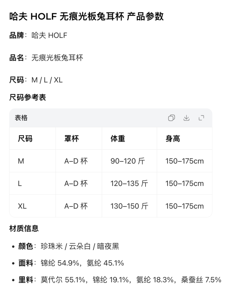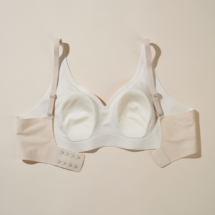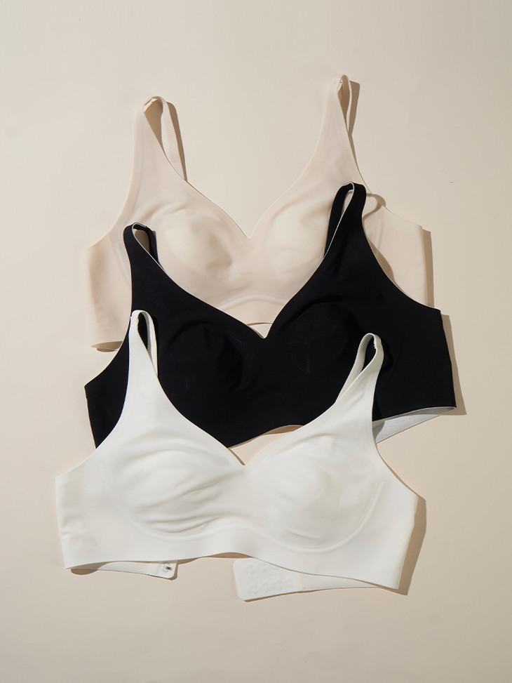 有珍珠米、云朵白、暗夜黑三个经典色,尺码M、L、XL,90斤到150斤都能找到合适的。外料柔软有弹性,耐穿不变形,既能满足显小显瘦、舒适无痕,又能兼顾透气亲肤、稳固承托,大胸胸闭眼入,尤其是夏天,真的需要!