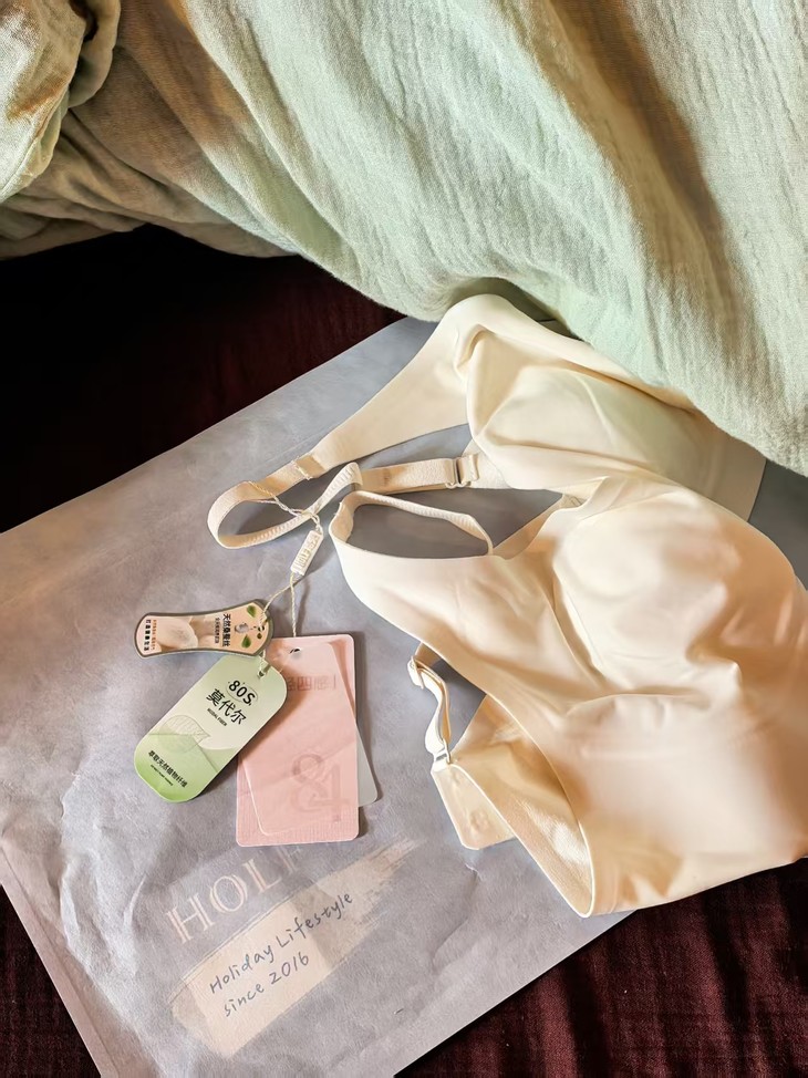面料方面更是做到顶配级别,里料采用莫代尔、锦纶、氨纶与桑蚕丝混纺,是国内少数工厂才能生产的80支0碳面料,由大牌供应商特供,手感比很多商场贵内衣还要柔软亲肤,而且经过抗过敏处理,换季敏感肌也不闷不痒,裸睡级别的体验,毫无束缚感。同时还搭载凉感黑科技,贴肤瞬间就能感受到冰冰凉凉的触感,透气吸汗性比普通内衣高出25%,再加上一片式无痕剪裁和宽边设计,穿紧身 T 恤、针织衫都看不出内衣痕迹,彻底摆脱尴尬勒痕。包容性也超强,四排两扣搭配可调节肩带,精准贴合不同身形,无论是A杯还是D杯,都能稳稳托住!