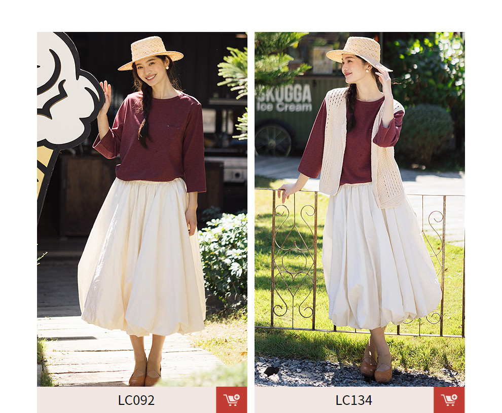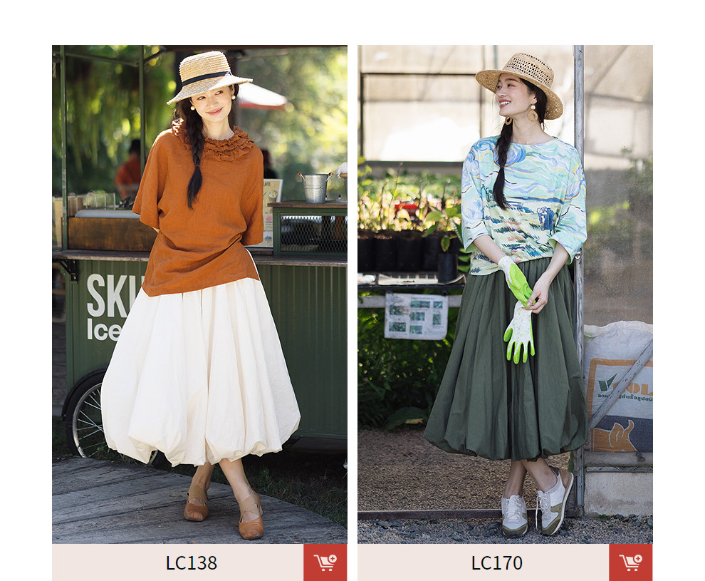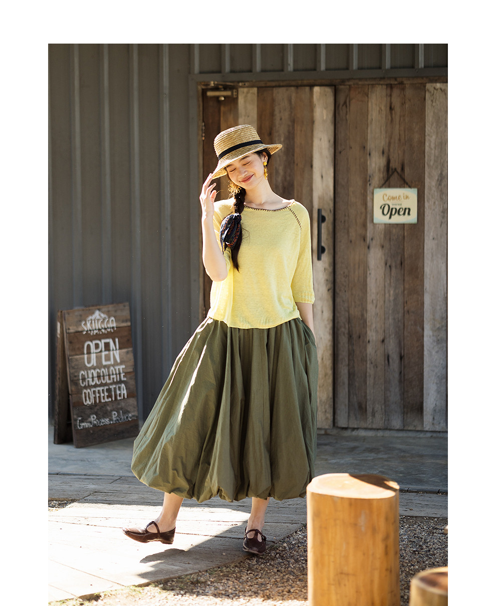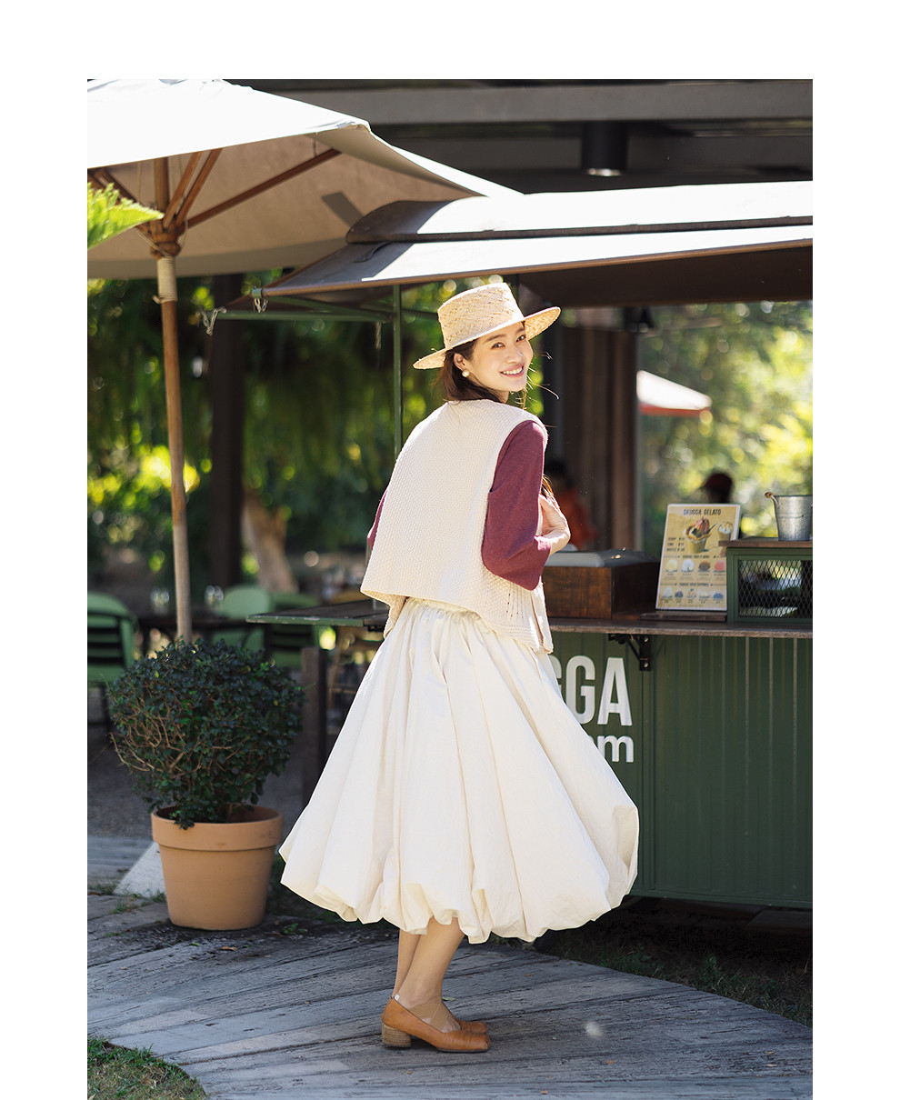 绽放102朵/小妇人*棉混纺宽松量感花苞半身裙女可调节腰围中长裙