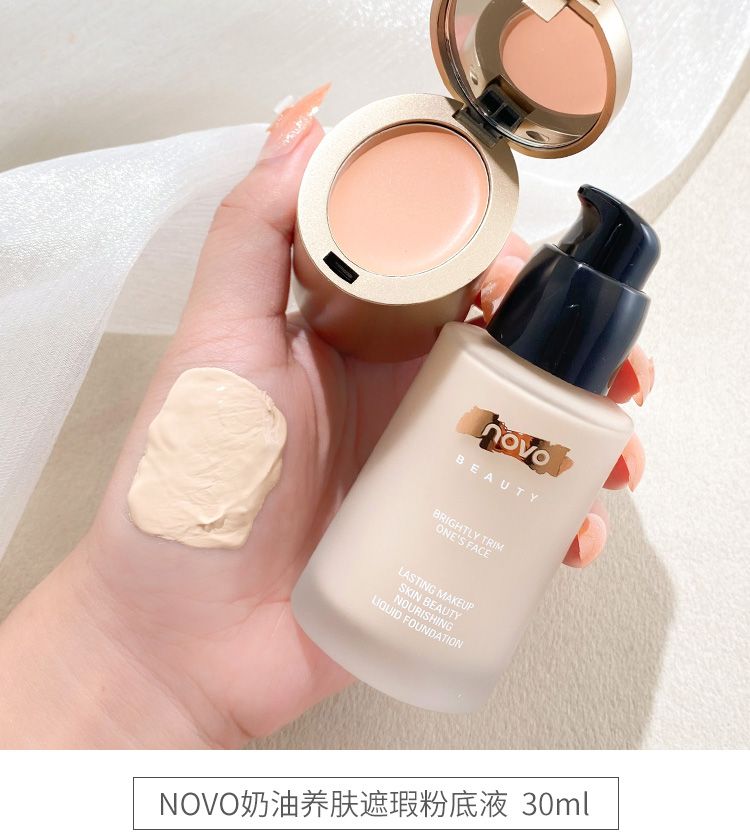 NOVO粉底液奶油遮瑕保湿不卡粉不脱妆控油bb霜补水持久学生遮瑕膏