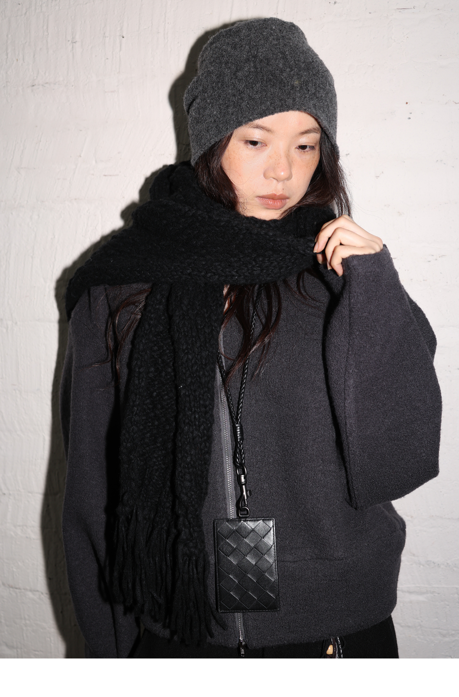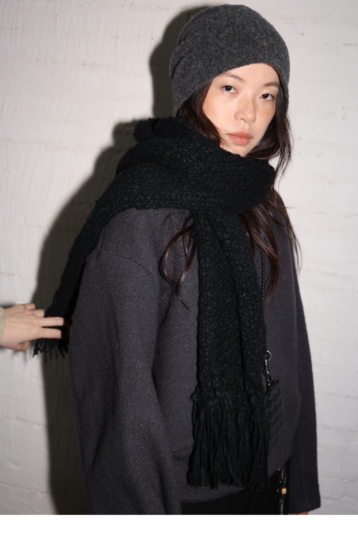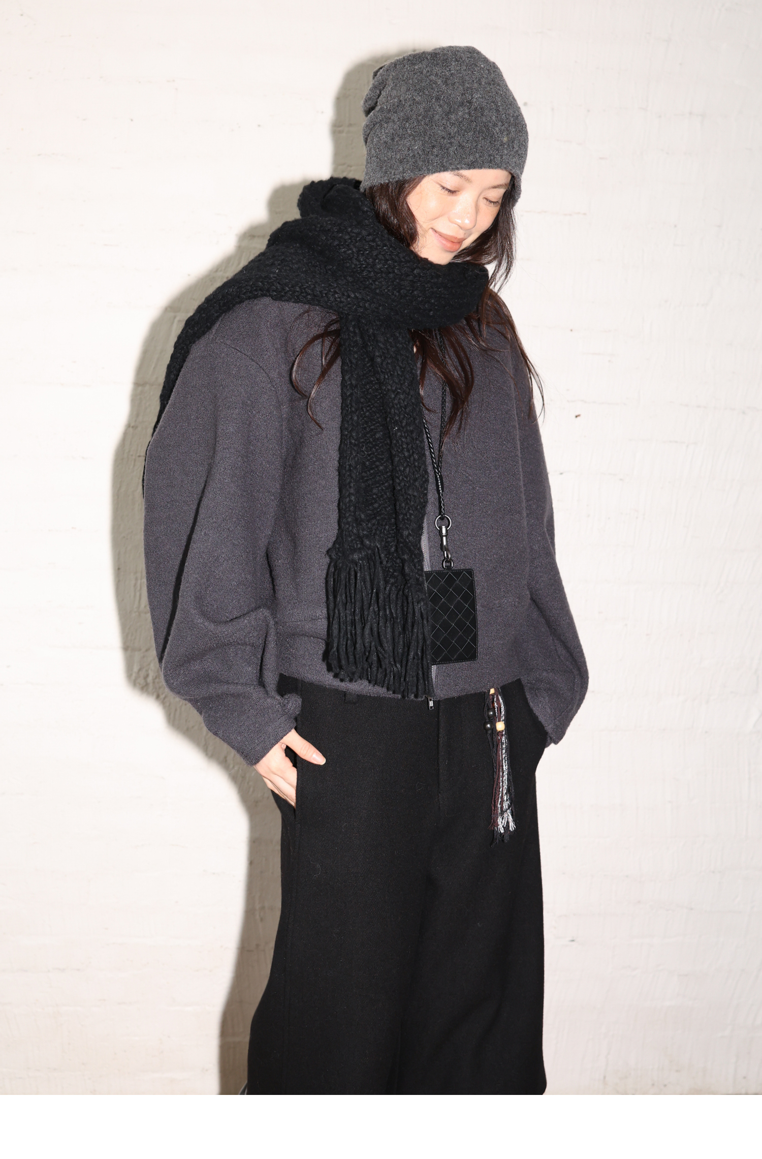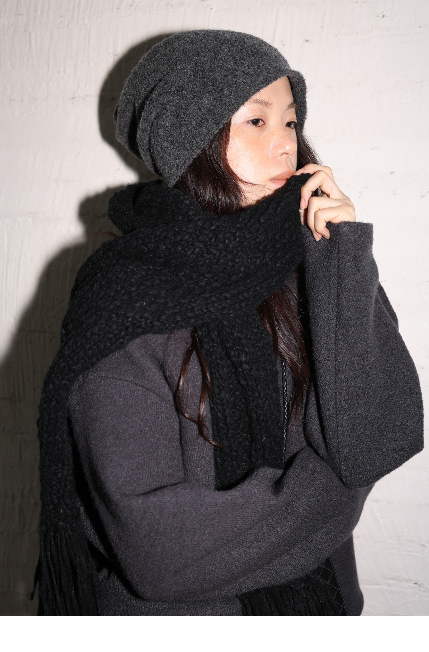 素舶 羊毛花式珍珠大肚纱 重工流苏针织长围巾