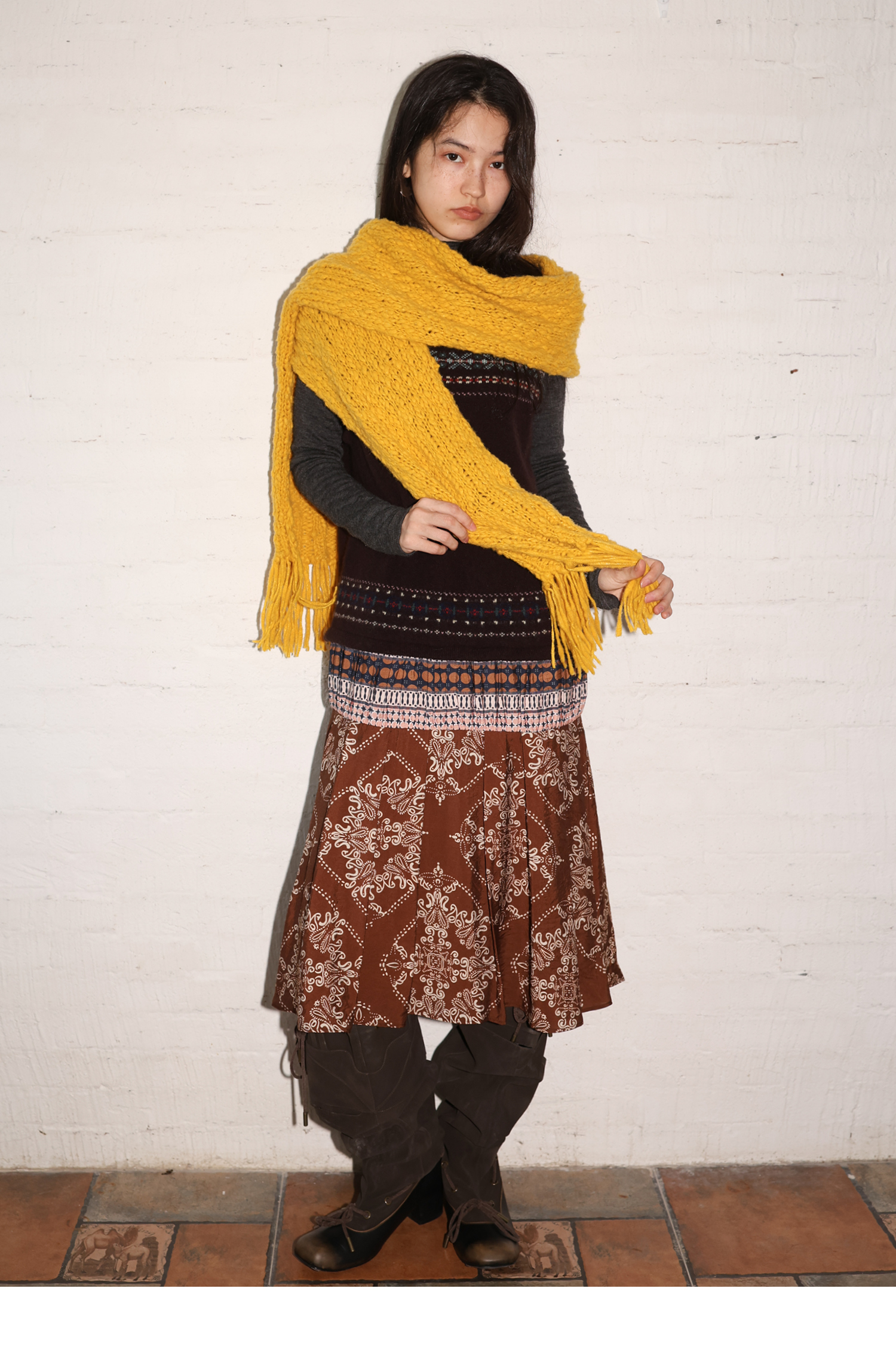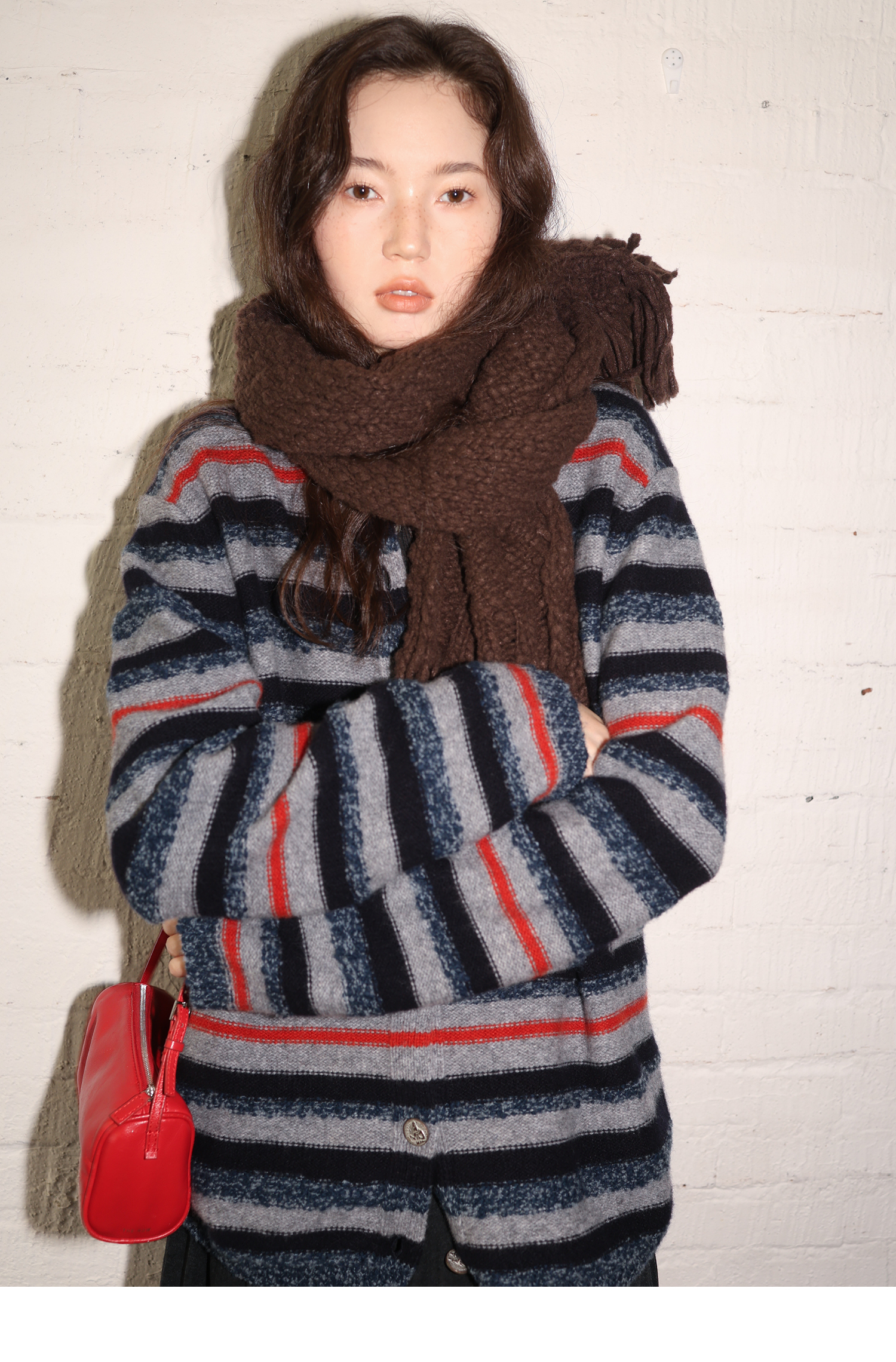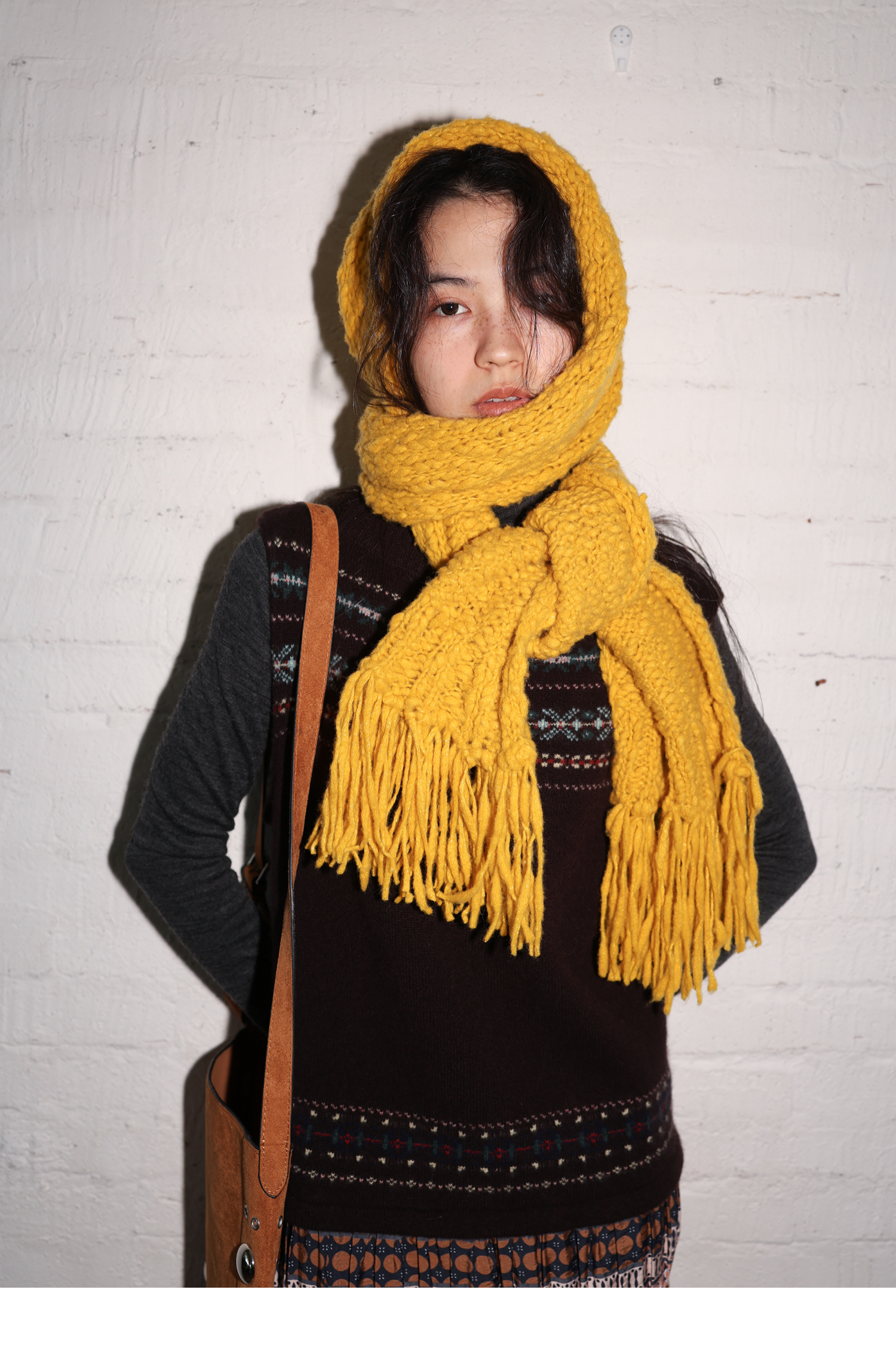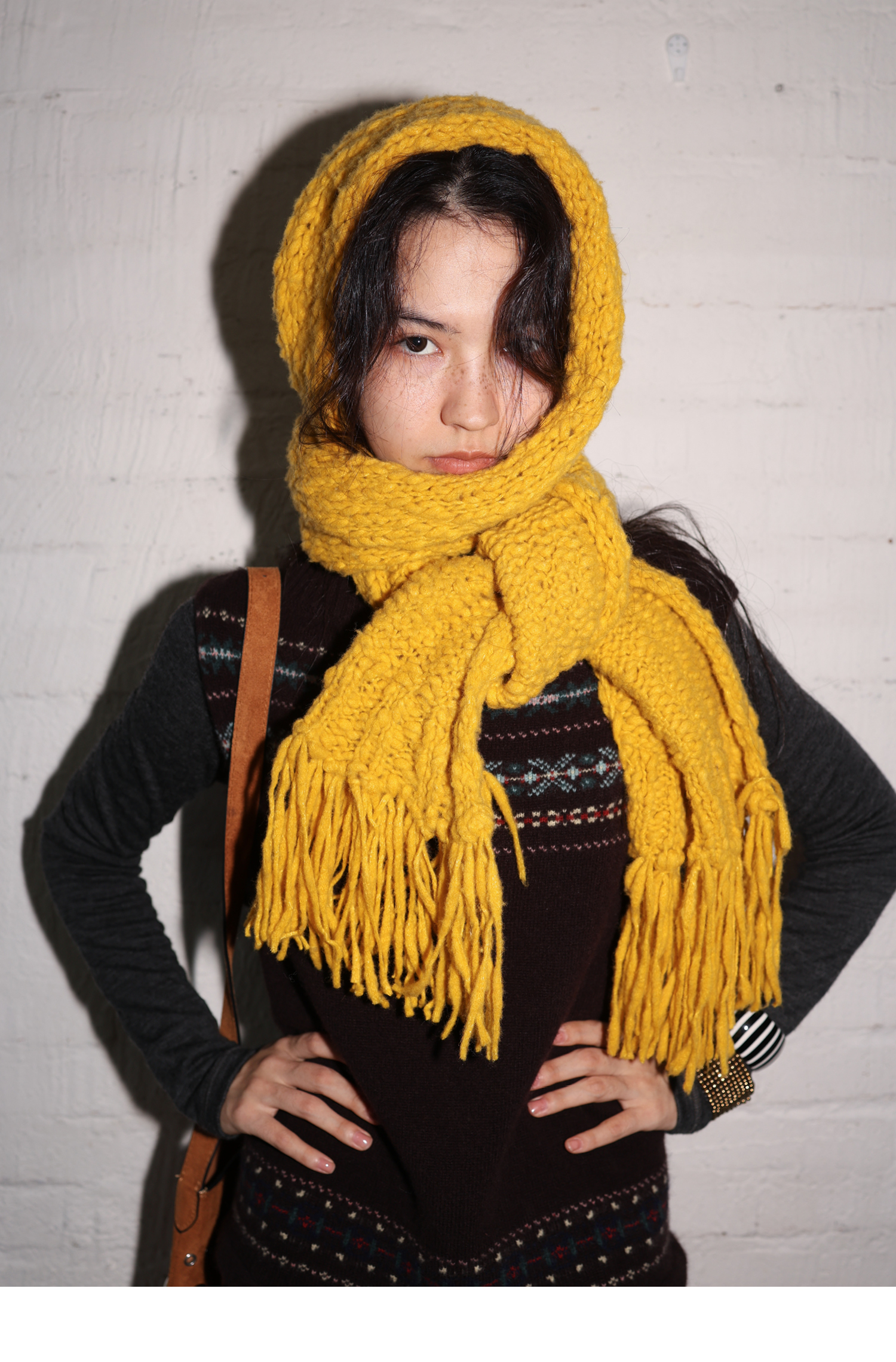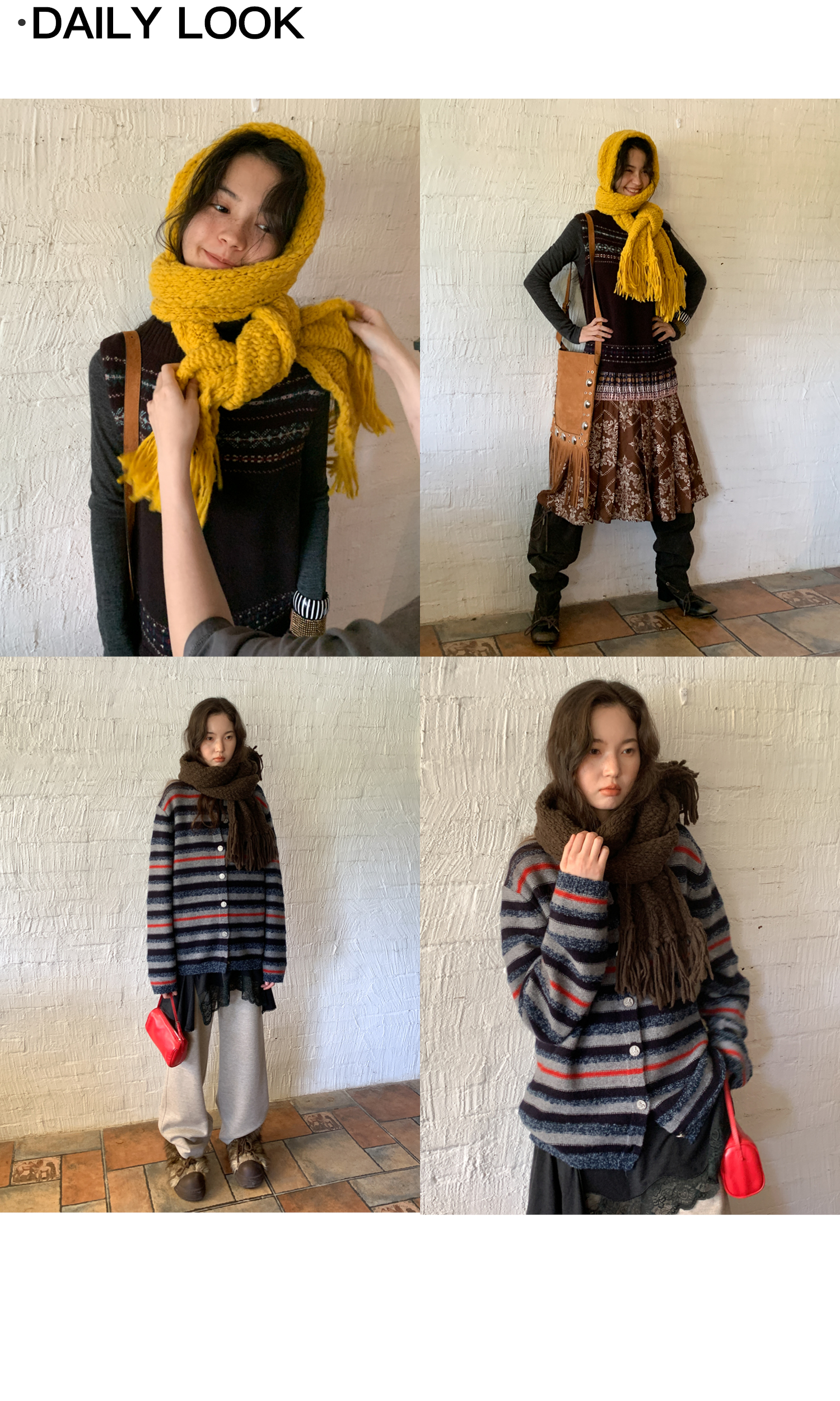 素舶 羊毛花式珍珠大肚纱 重工流苏针织长围巾
