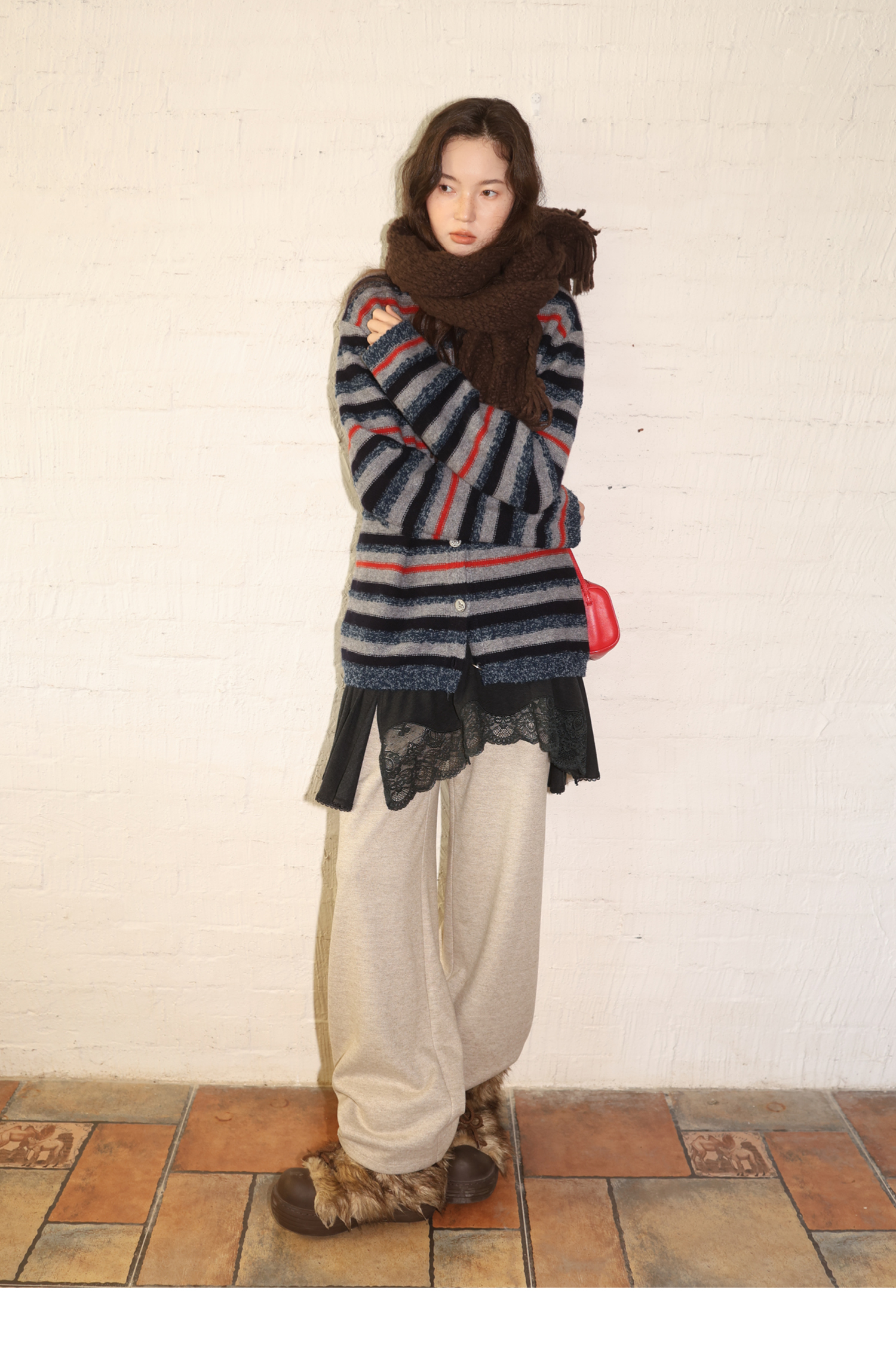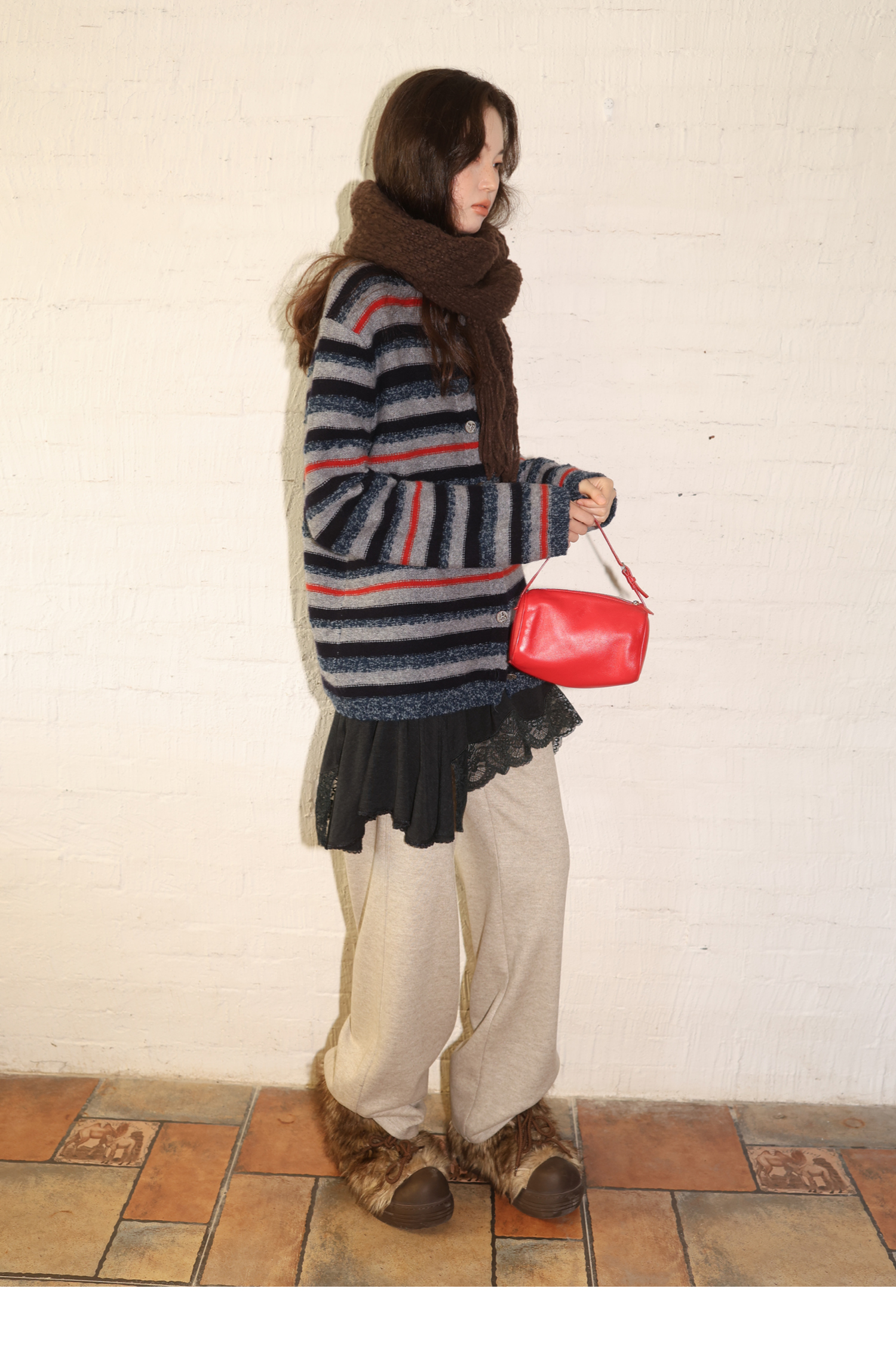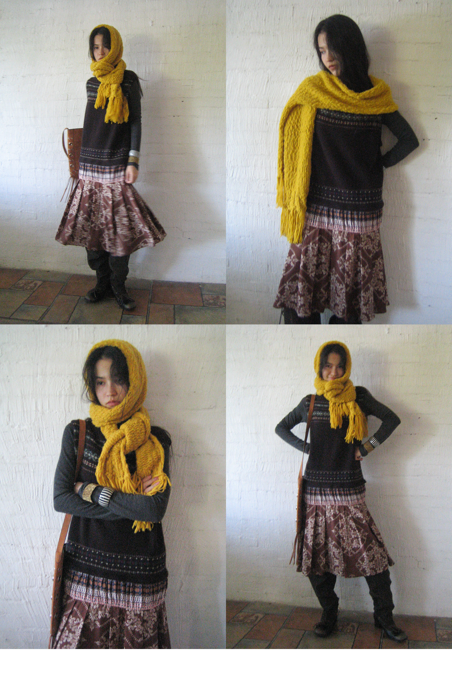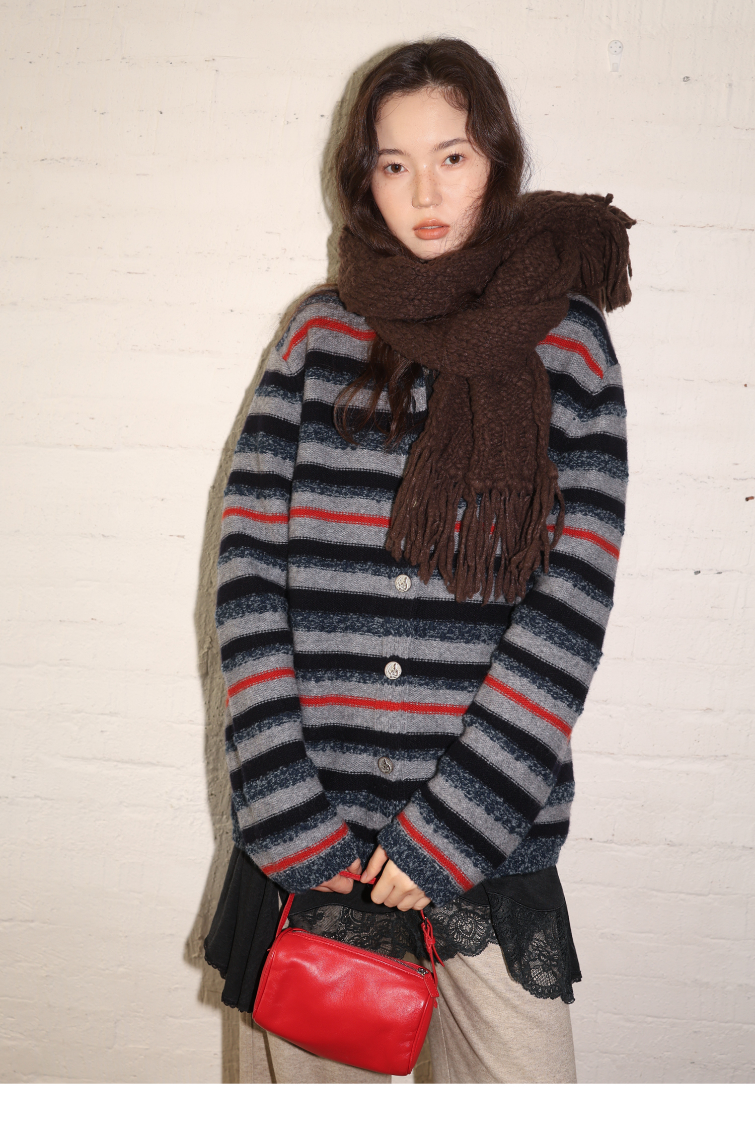 素舶 羊毛花式珍珠大肚纱 重工流苏针织长围巾