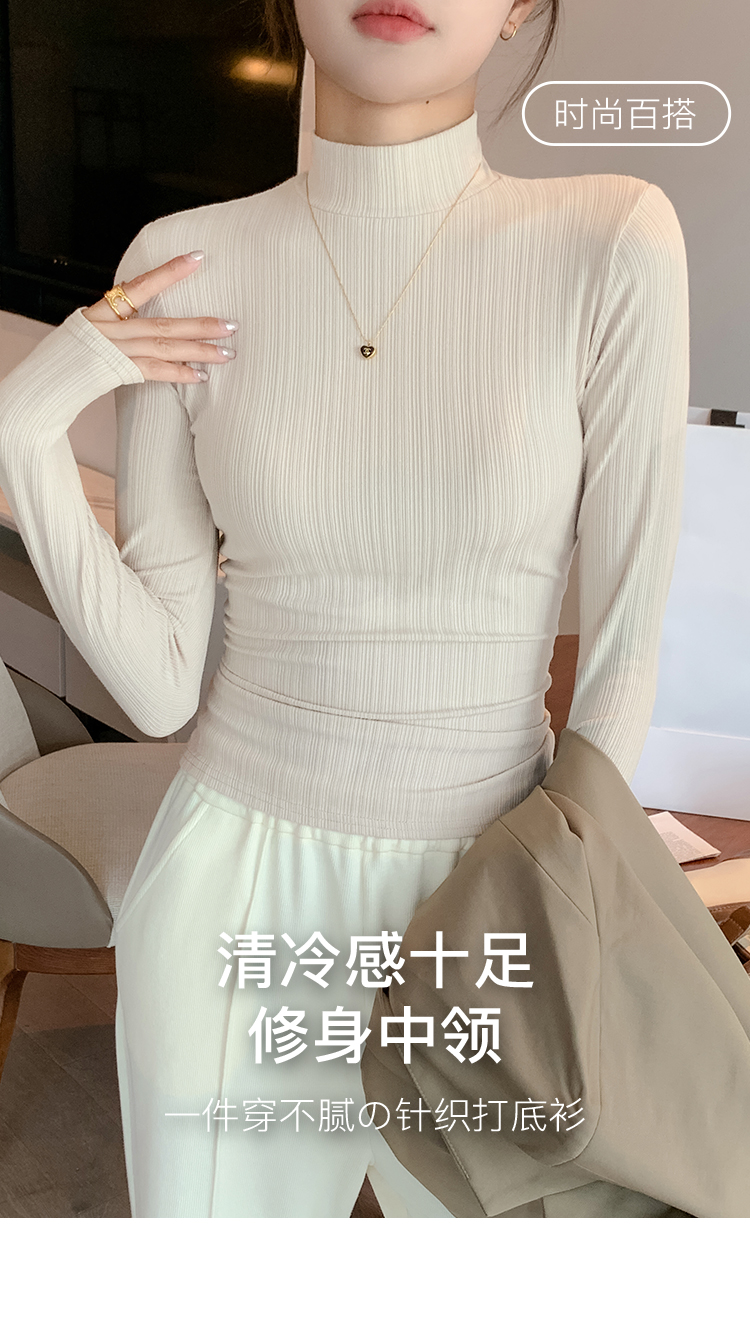 多色可选【内搭高级感】时尚半高领打底衫女洋气可外穿修身显瘦螺纹中领打底衫