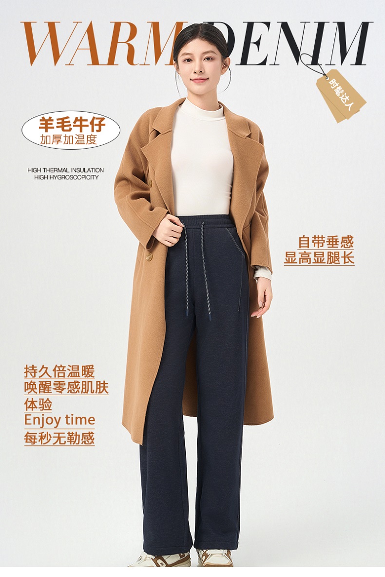 【亏本清仓,抢完下架】【800克重超抗寒,内里填充全羊毛】SAKURA樱花加厚牛仔高山绵羊毛直筒裤发热阳离子全包边休闲牛仔裤