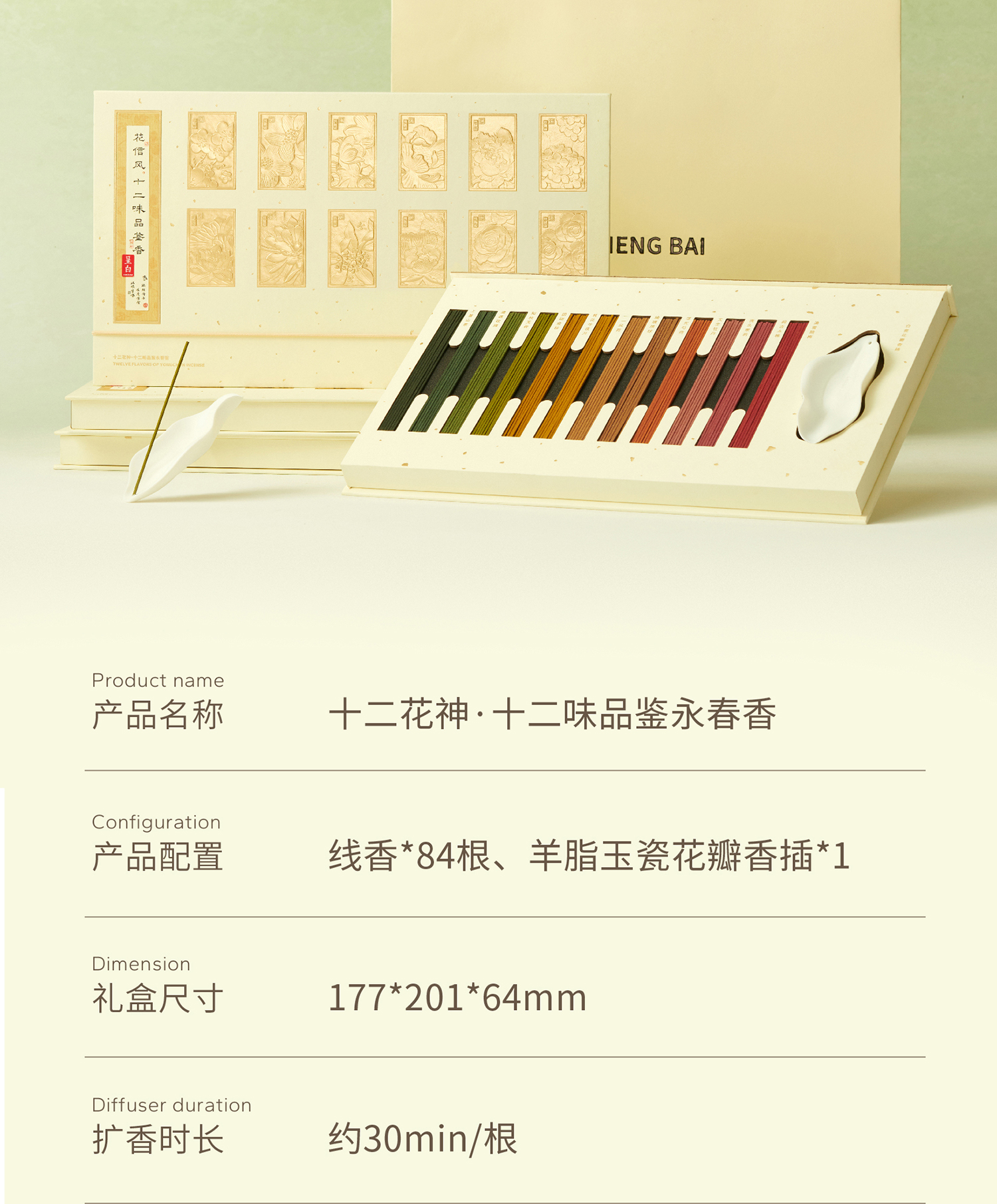 呈白 十二花神系列非遗永春线香花信礼盒