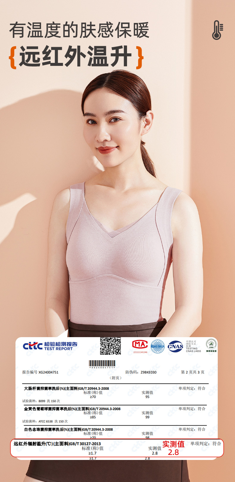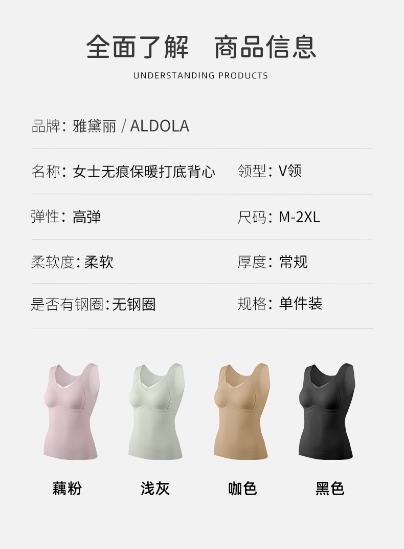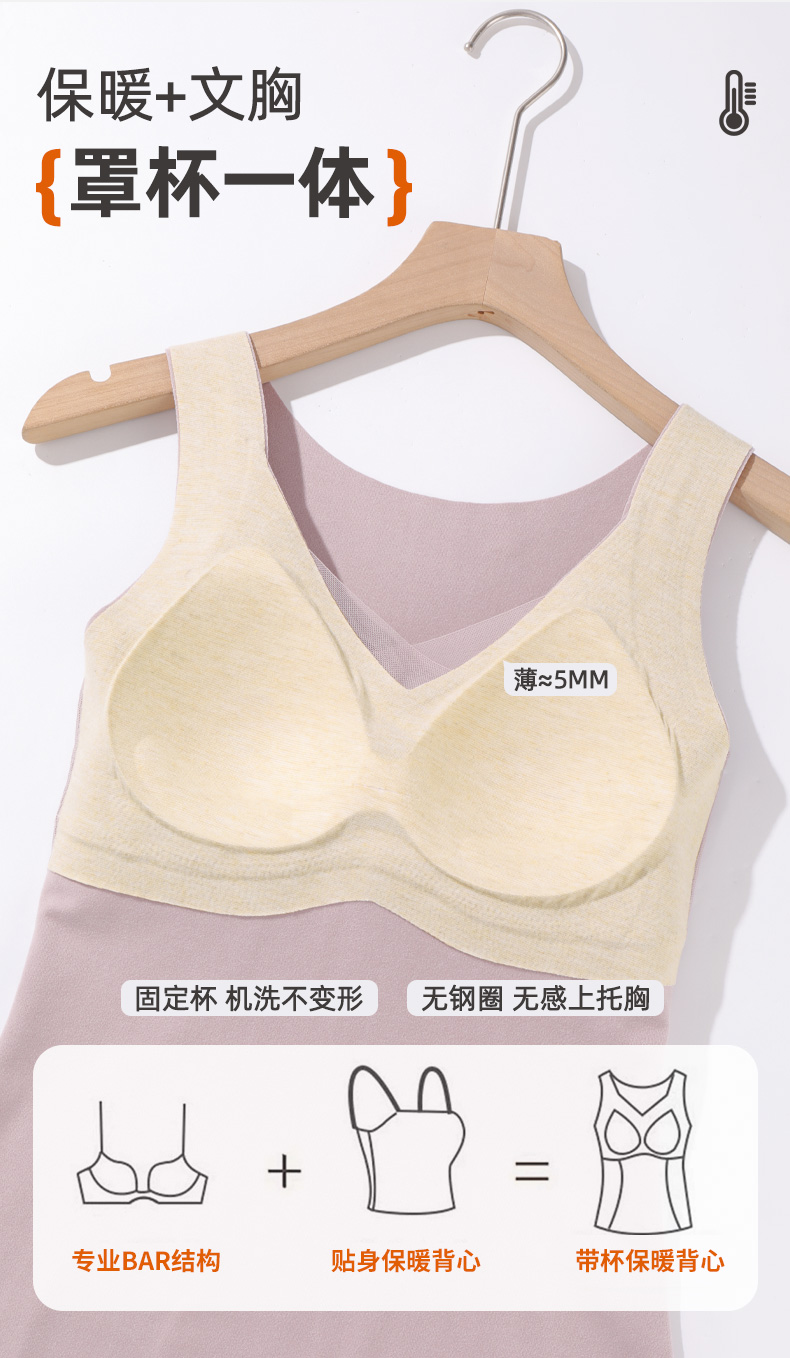 雅黛丽保暖背心带胸垫打底衫7A抑菌2024新款秋冬高弹显瘦上衣马甲