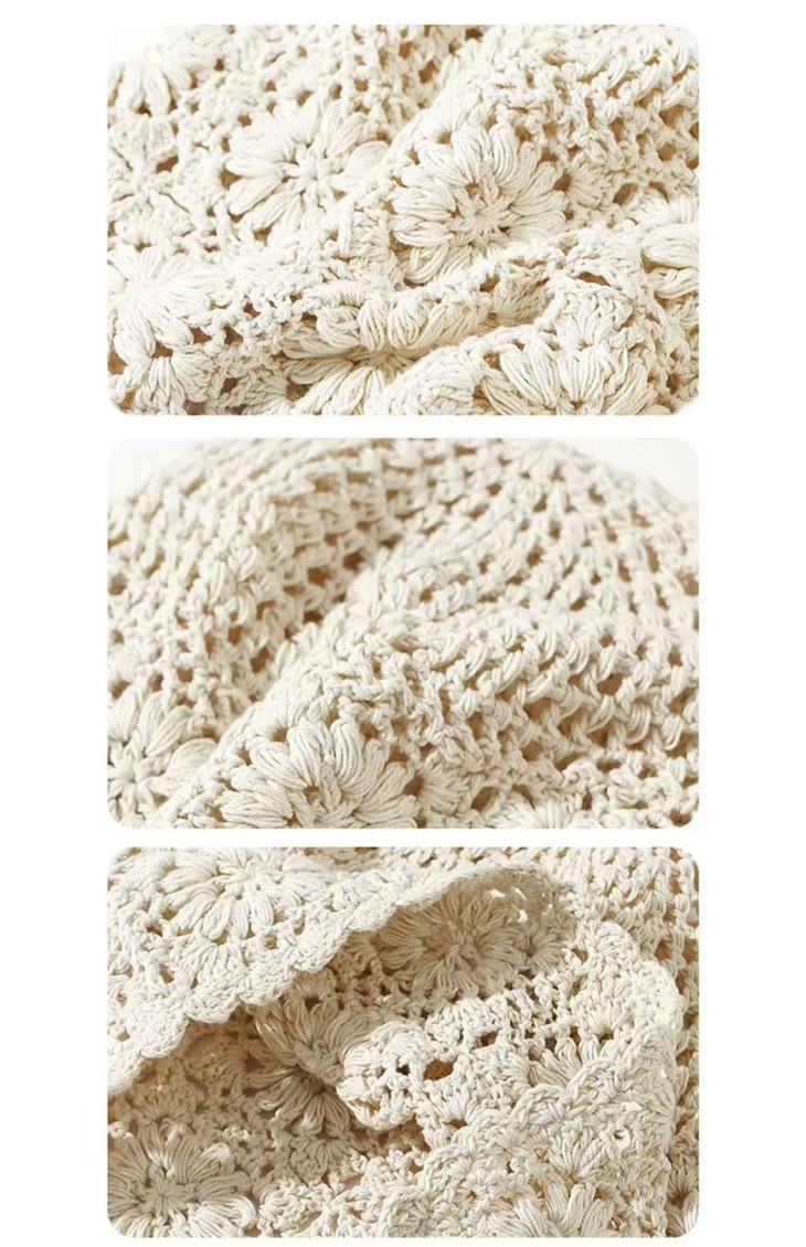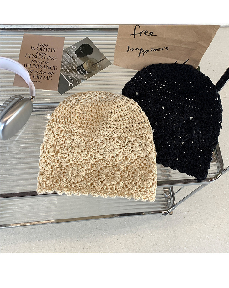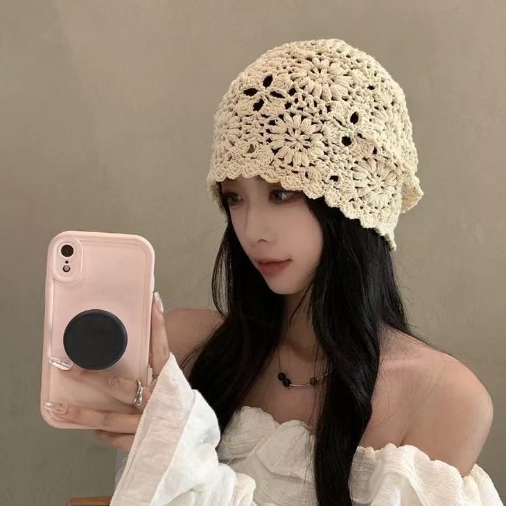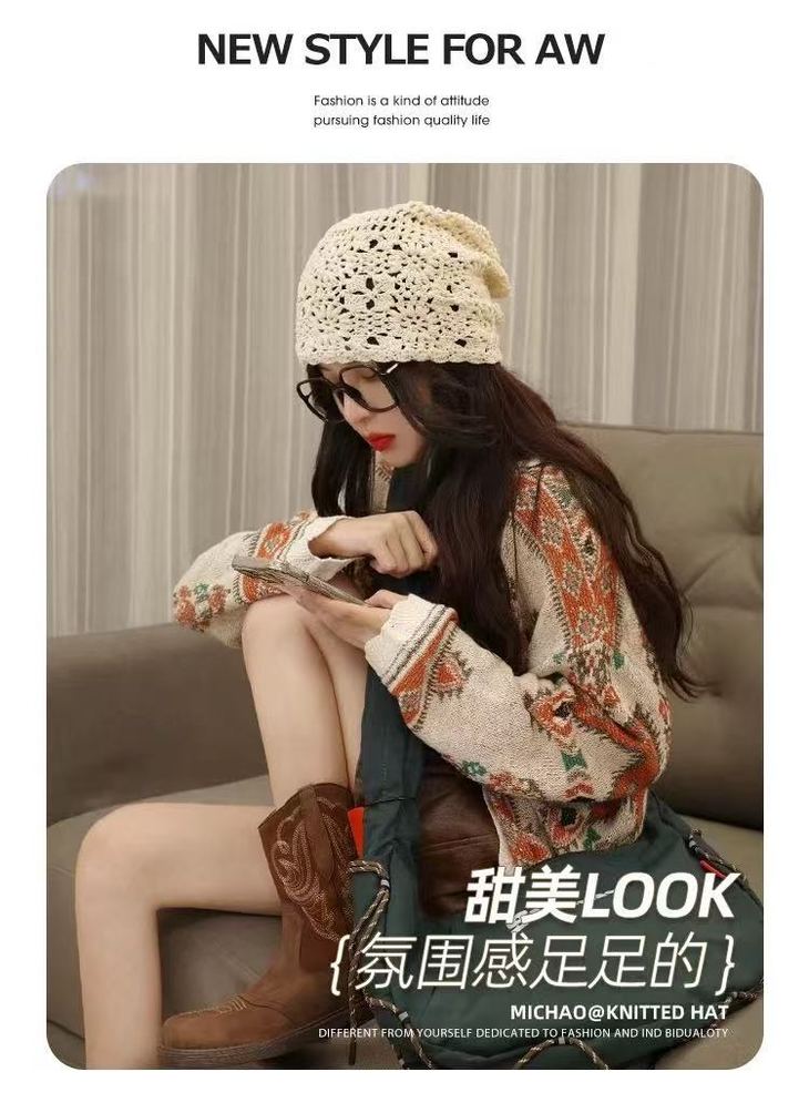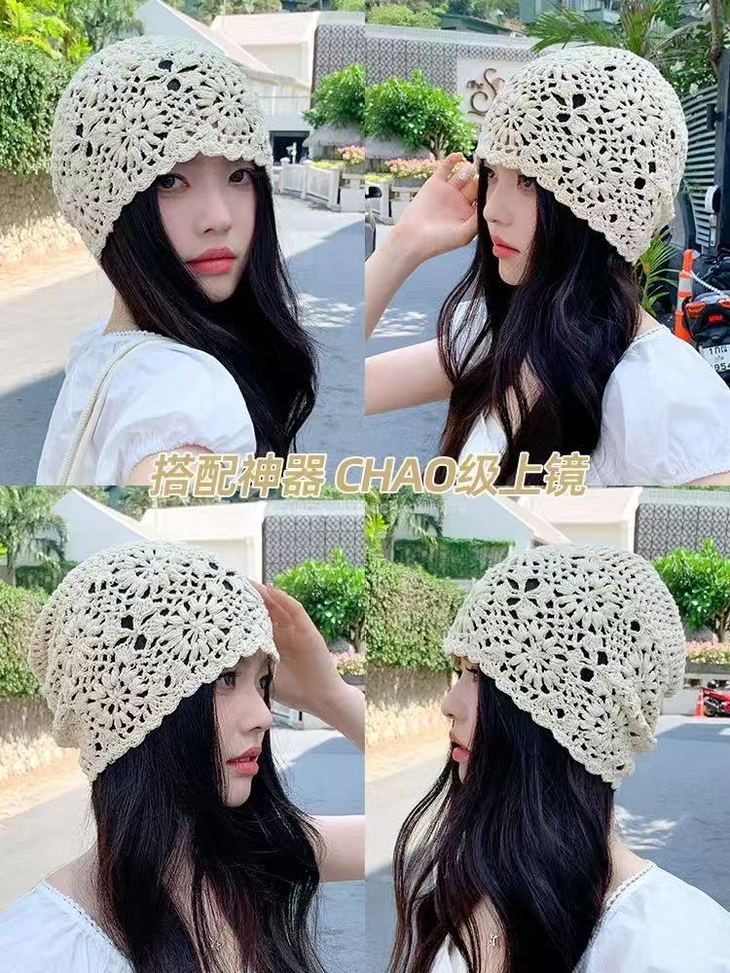 【拍照敲出片❗镂空手工毛线帽】甜美LOOK「范围感足足的」简约不单调,复古手工勾花风格,修饰脸型显脸小,怎么带都好看❗日系手工花朵编织包头帽,复古文艺透气堆堆帽L