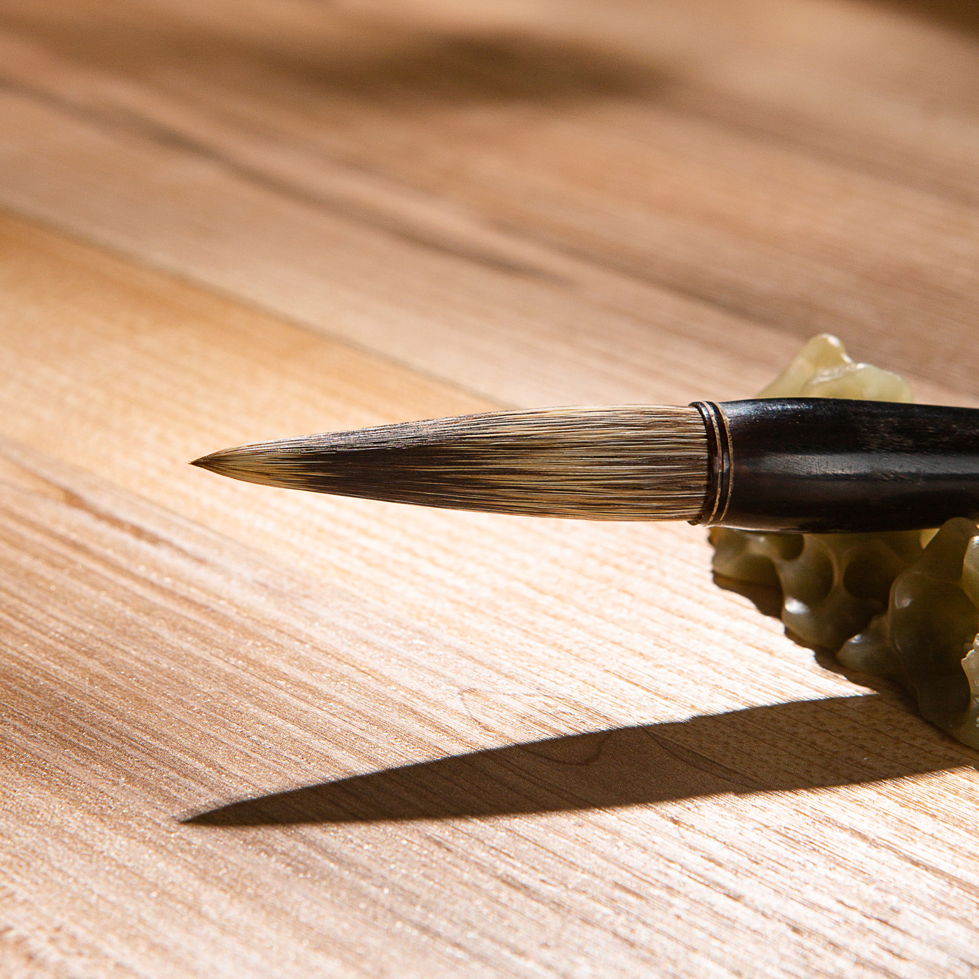 80年代“金鼎石獾”老宣笔。此笔为传统宣笔老工艺制作,真材实料,笔锋劲挺,弹性超强。此种老石獾笔存世稀少,可遇而不可求。