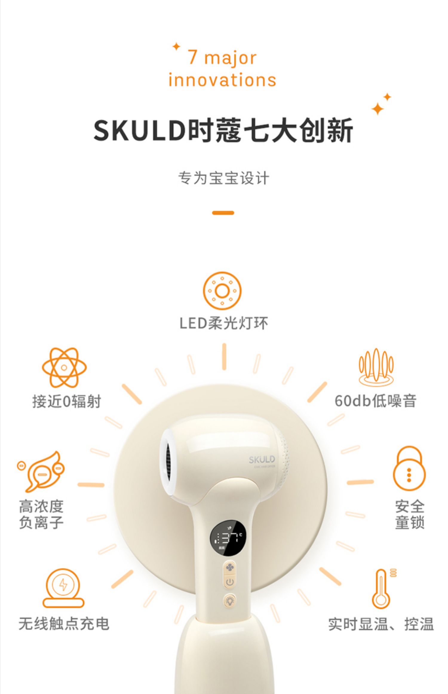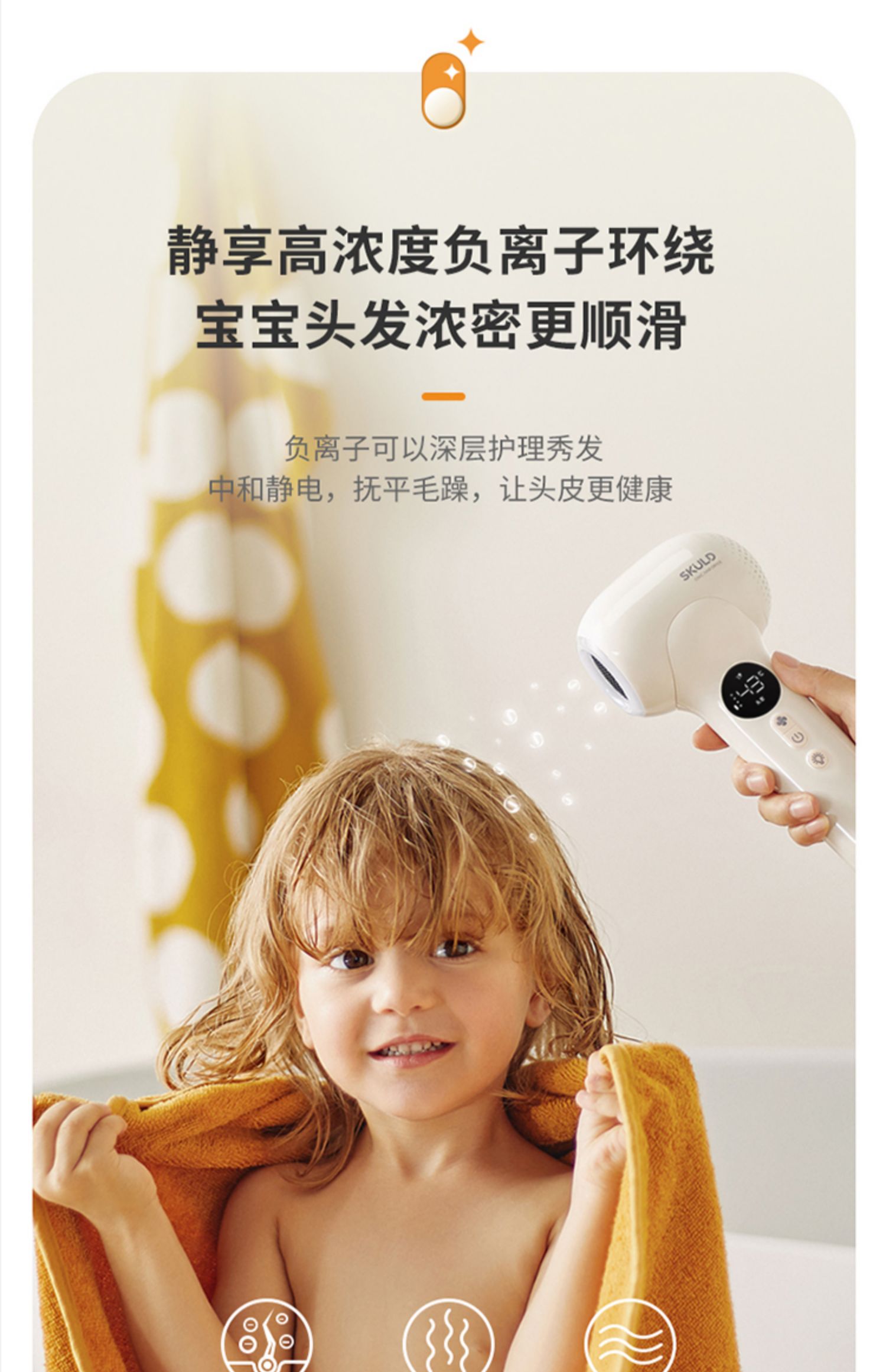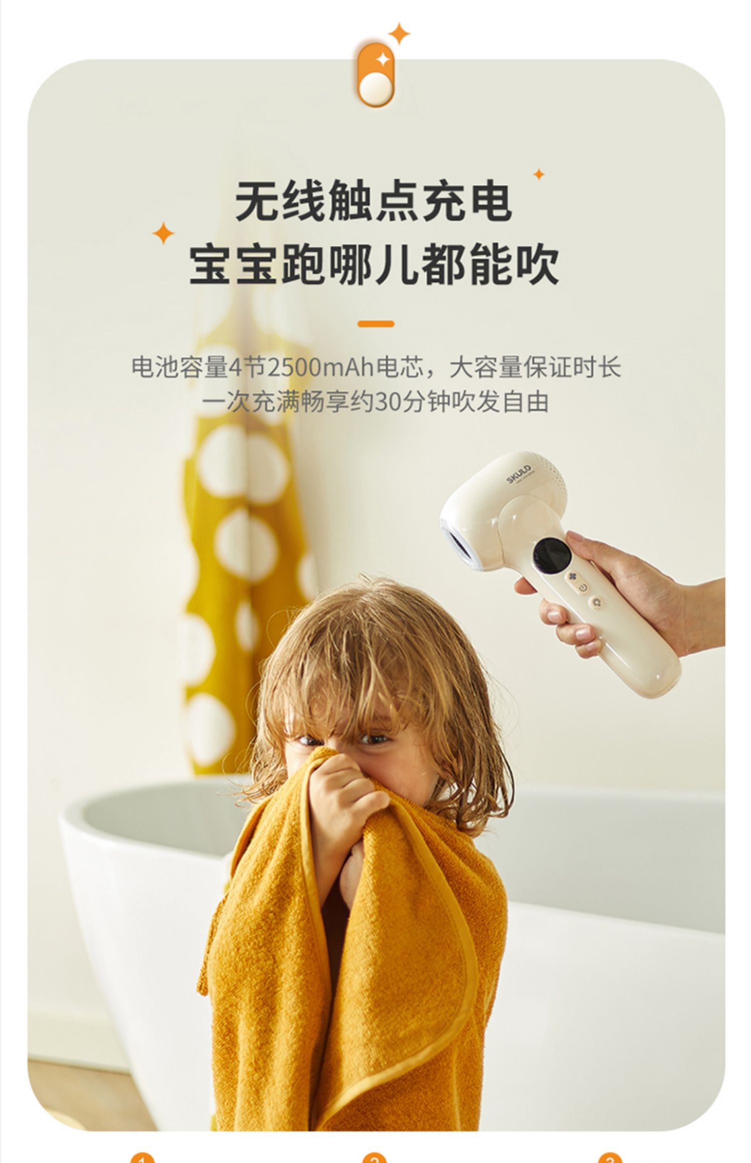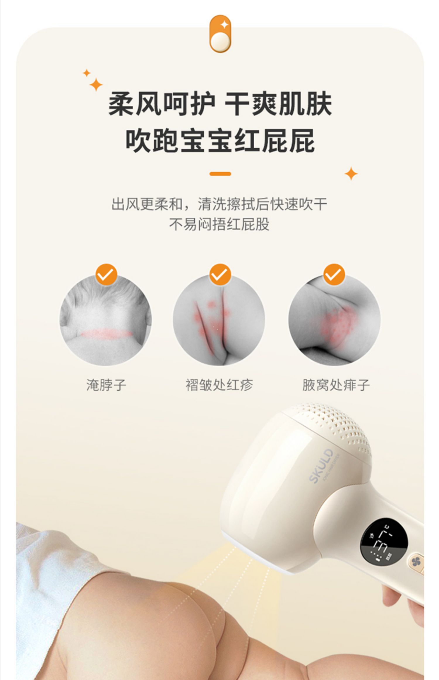 SKULD时蔻宝宝电吹风吹屁屁专用儿童吹头发吹屁股婴儿无线吹风机