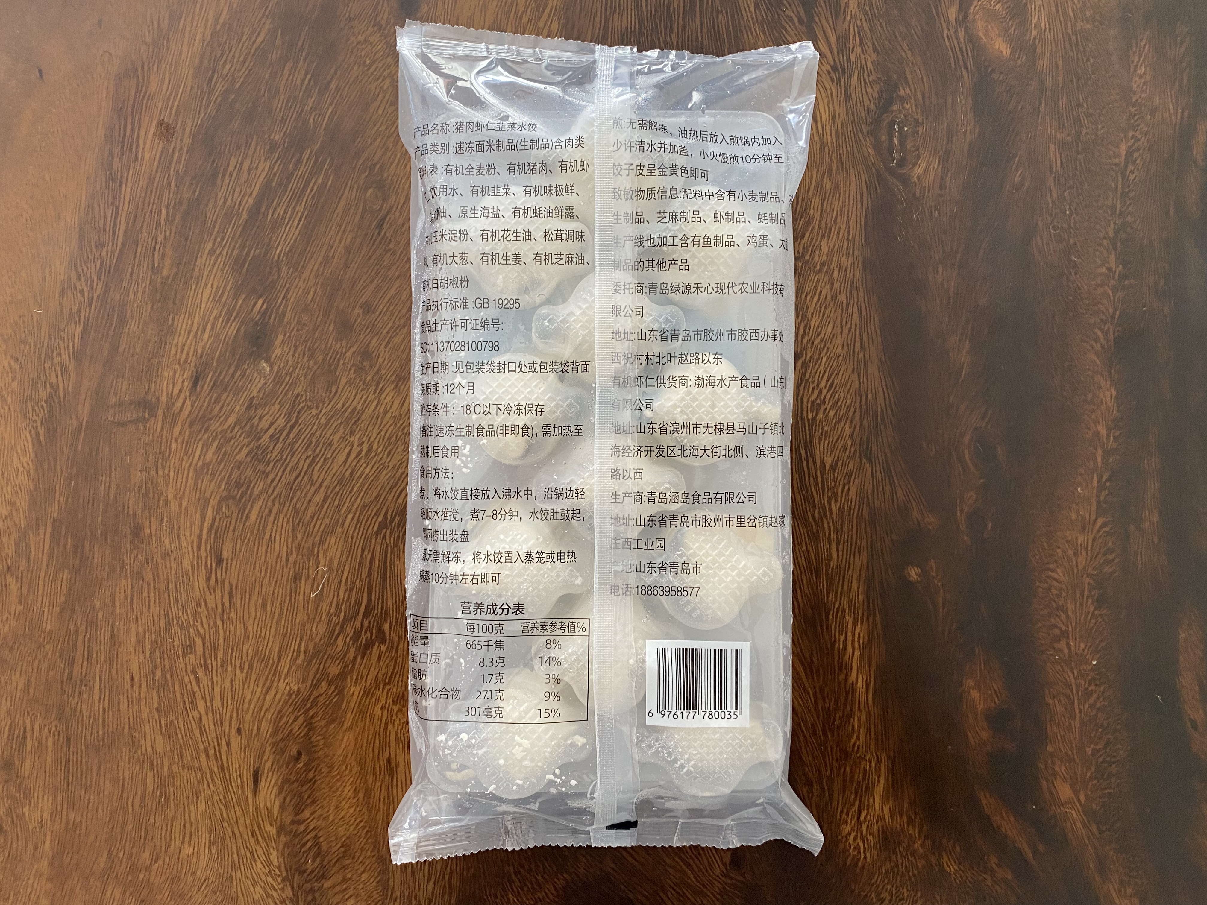 ✅配料表:有机全麦粉、有机猪肉、有机虾仁、饮用水、有机韭菜、有机味极鲜、有机酱油、原生海盐、有机蚝油鲜露、有机玉米淀粉、有机花生油、松茸调味料、有机大葱、有机生姜、有机芝麻油、有机白胡椒粉