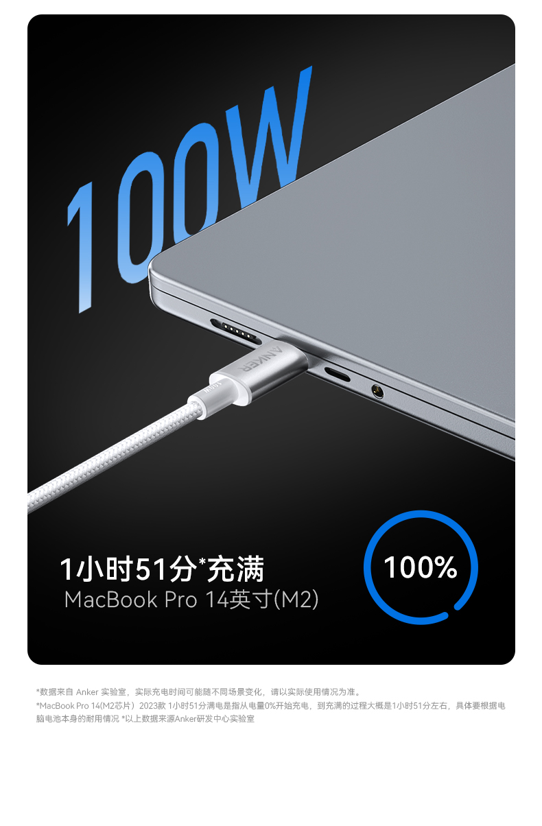 [屁侠推荐]Anker安克编织PD100W双typeC尼龙PD快充安卓数据线适用iPhone15华为小米手机充电线双头USB-C超长3米M数据线 A8756/7/8