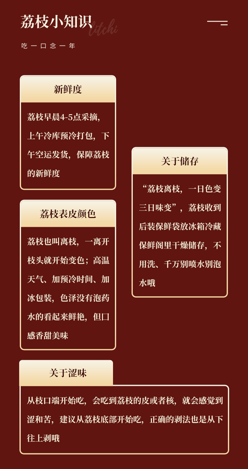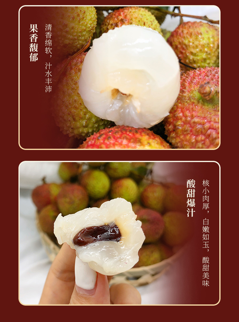 食用方式:收到货后先放入冰箱冷藏后再食用,口感体验更佳哦(荔枝不容易储存,请尽快食用)