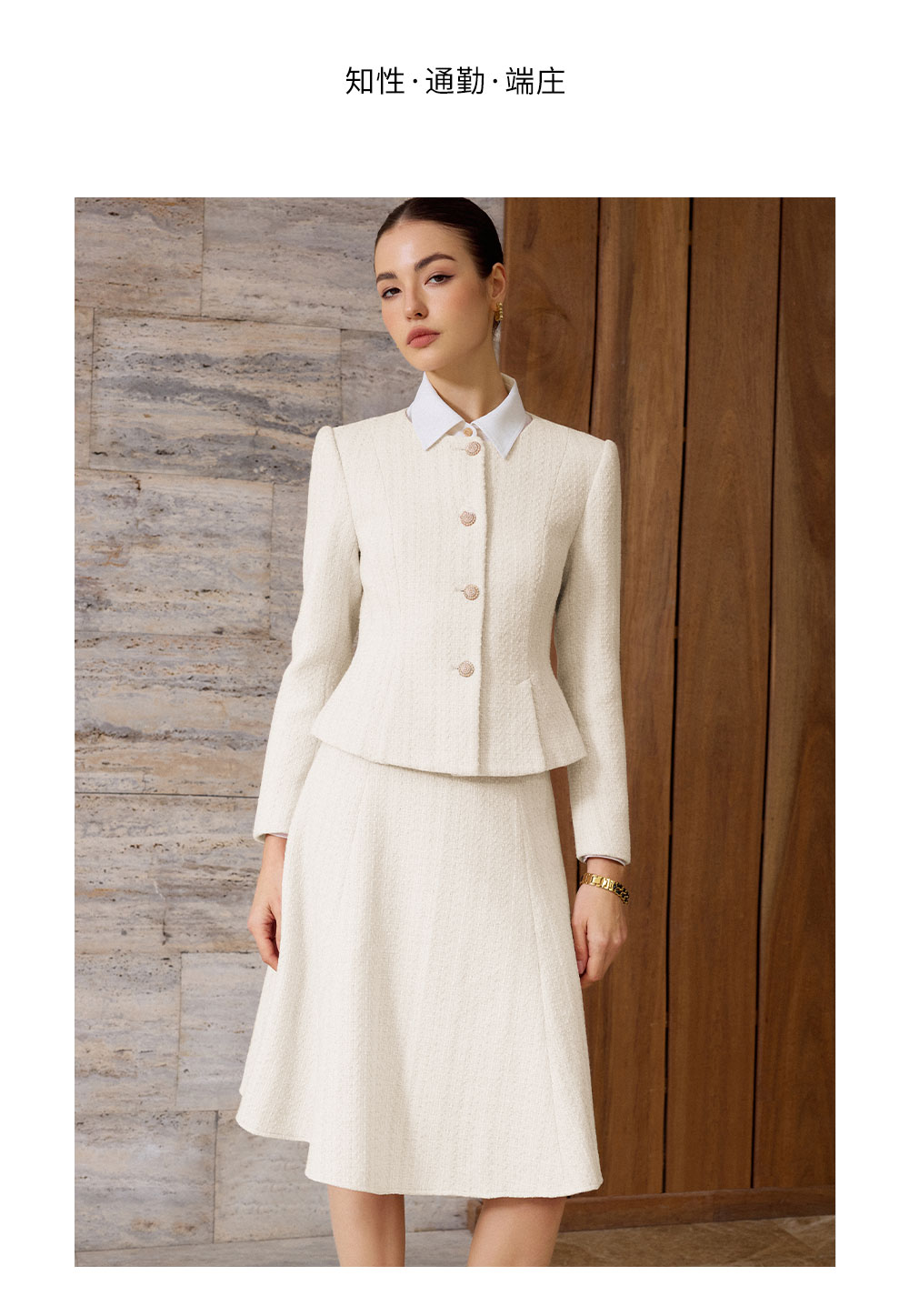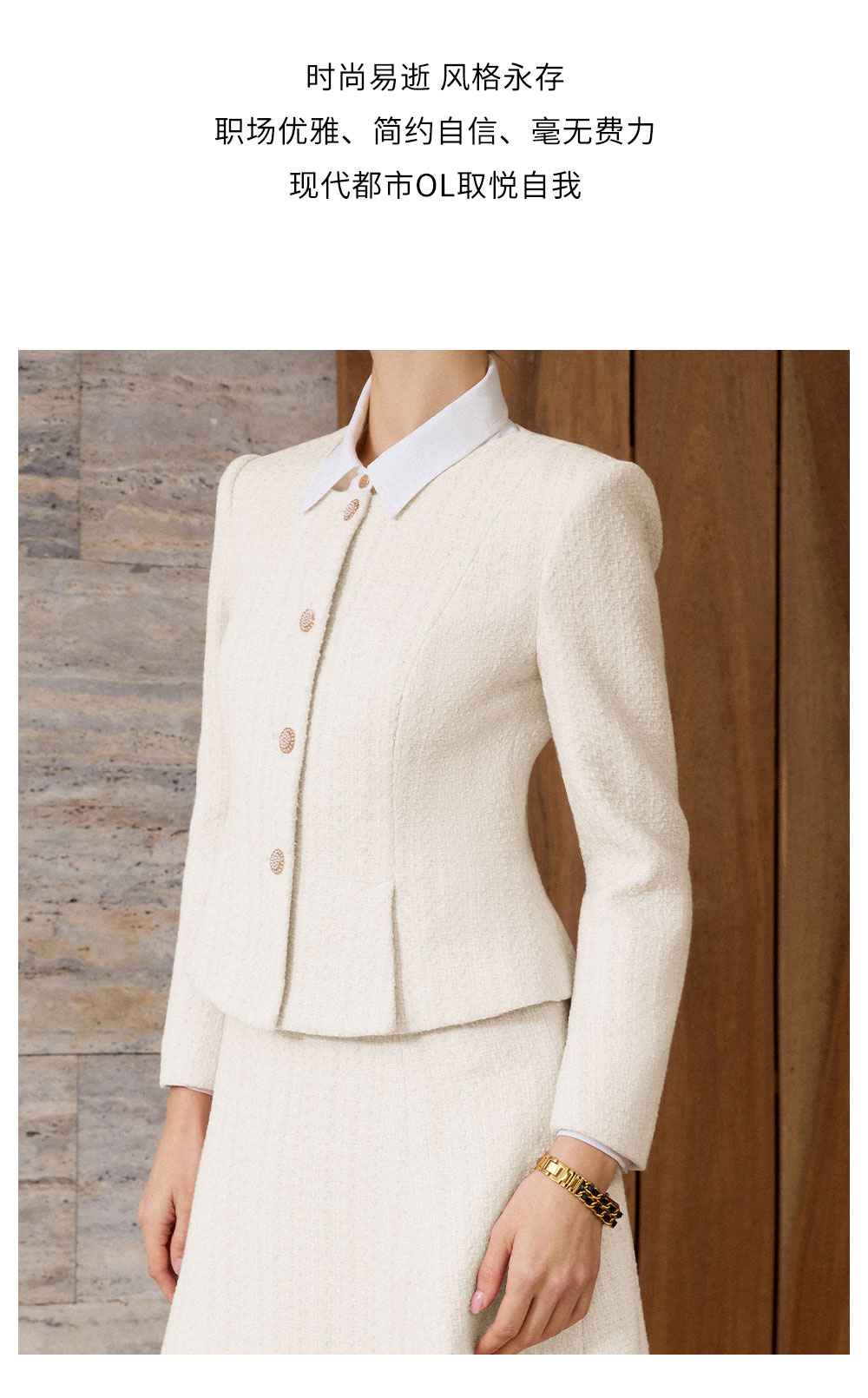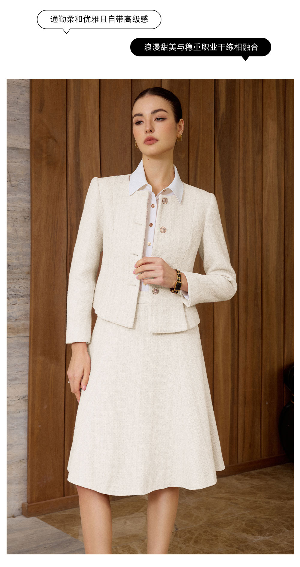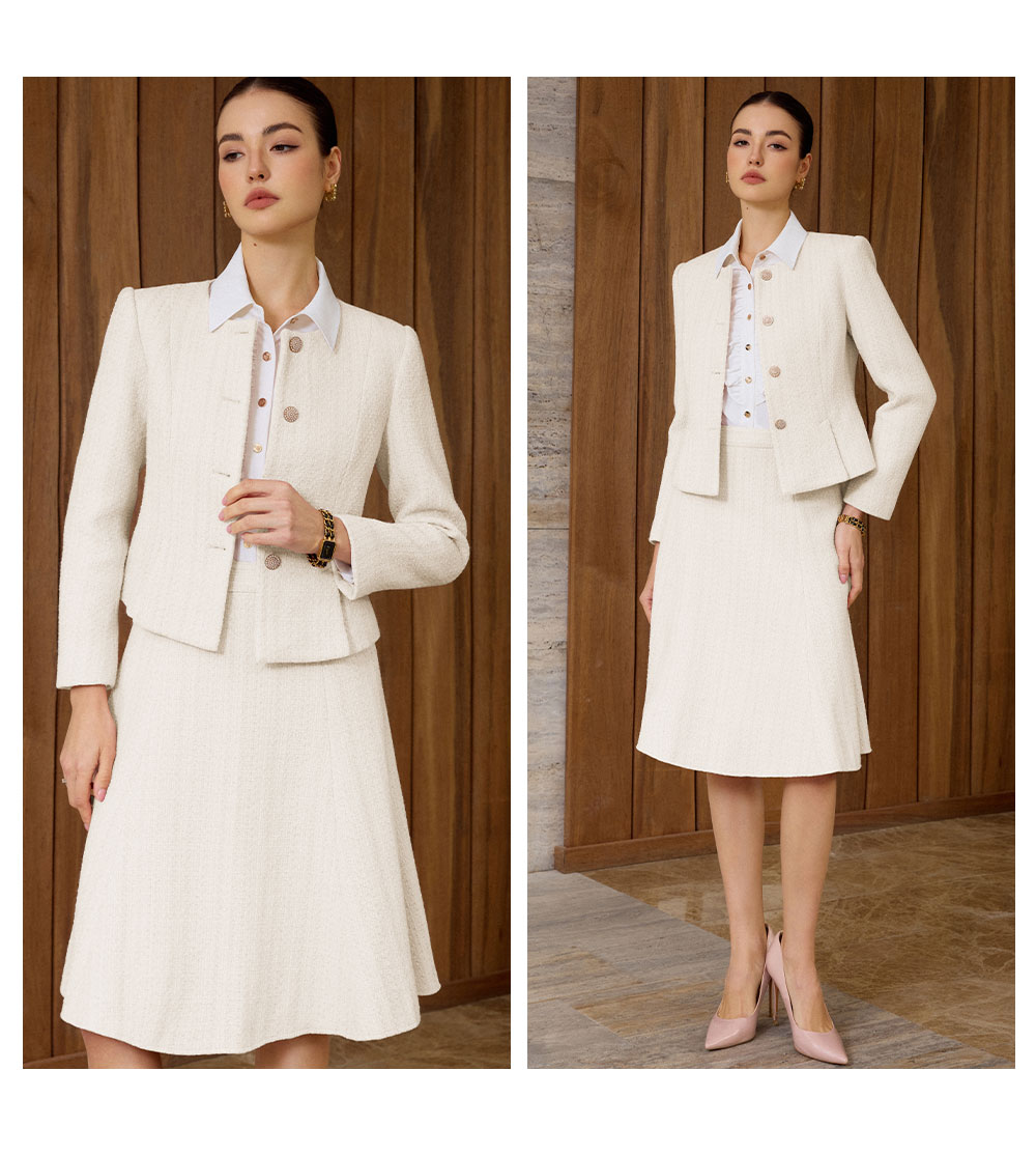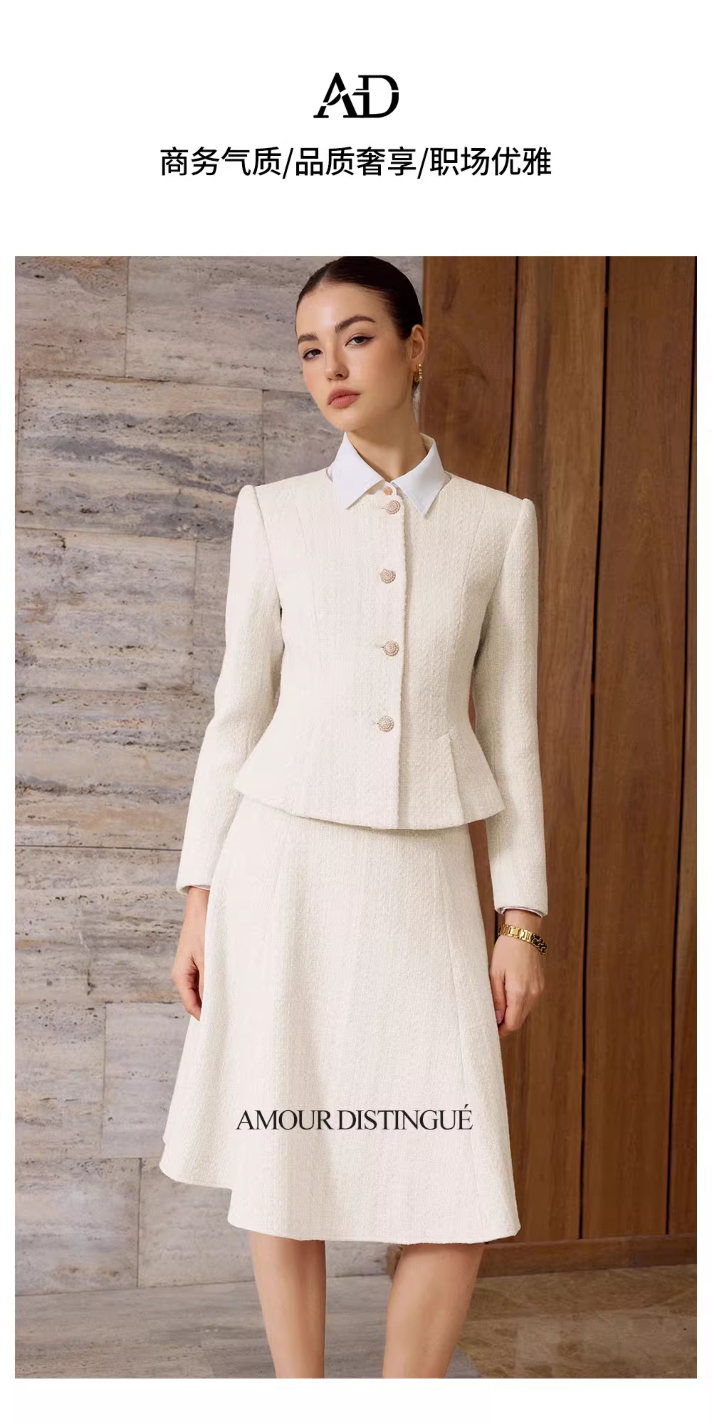 AD法式优雅风西装套装女秋冬高级感职业正装轻熟风米白色两件套裙