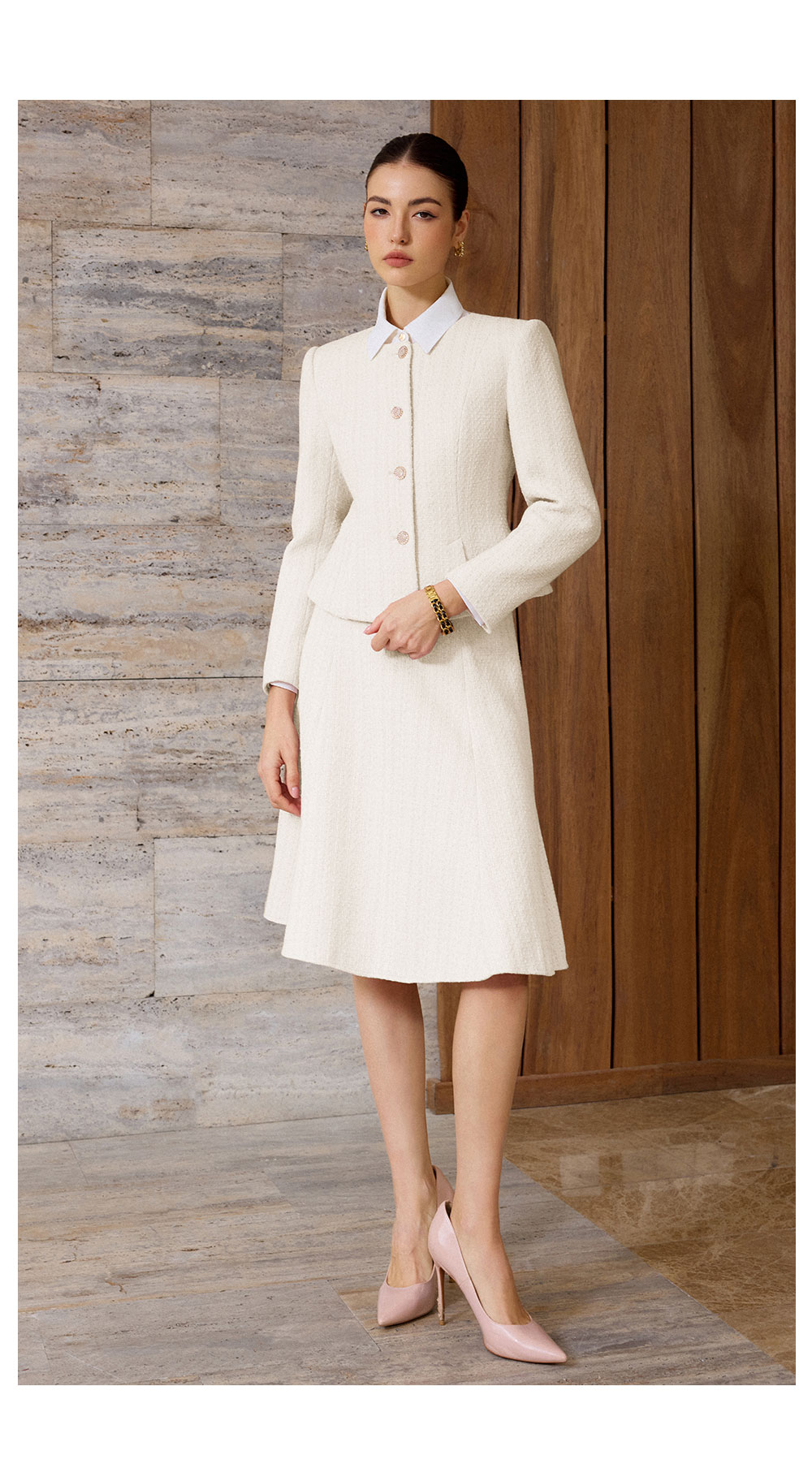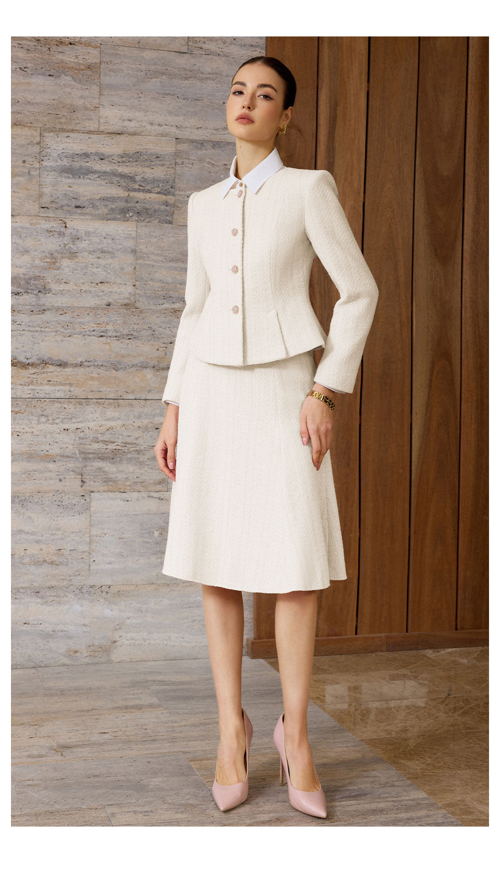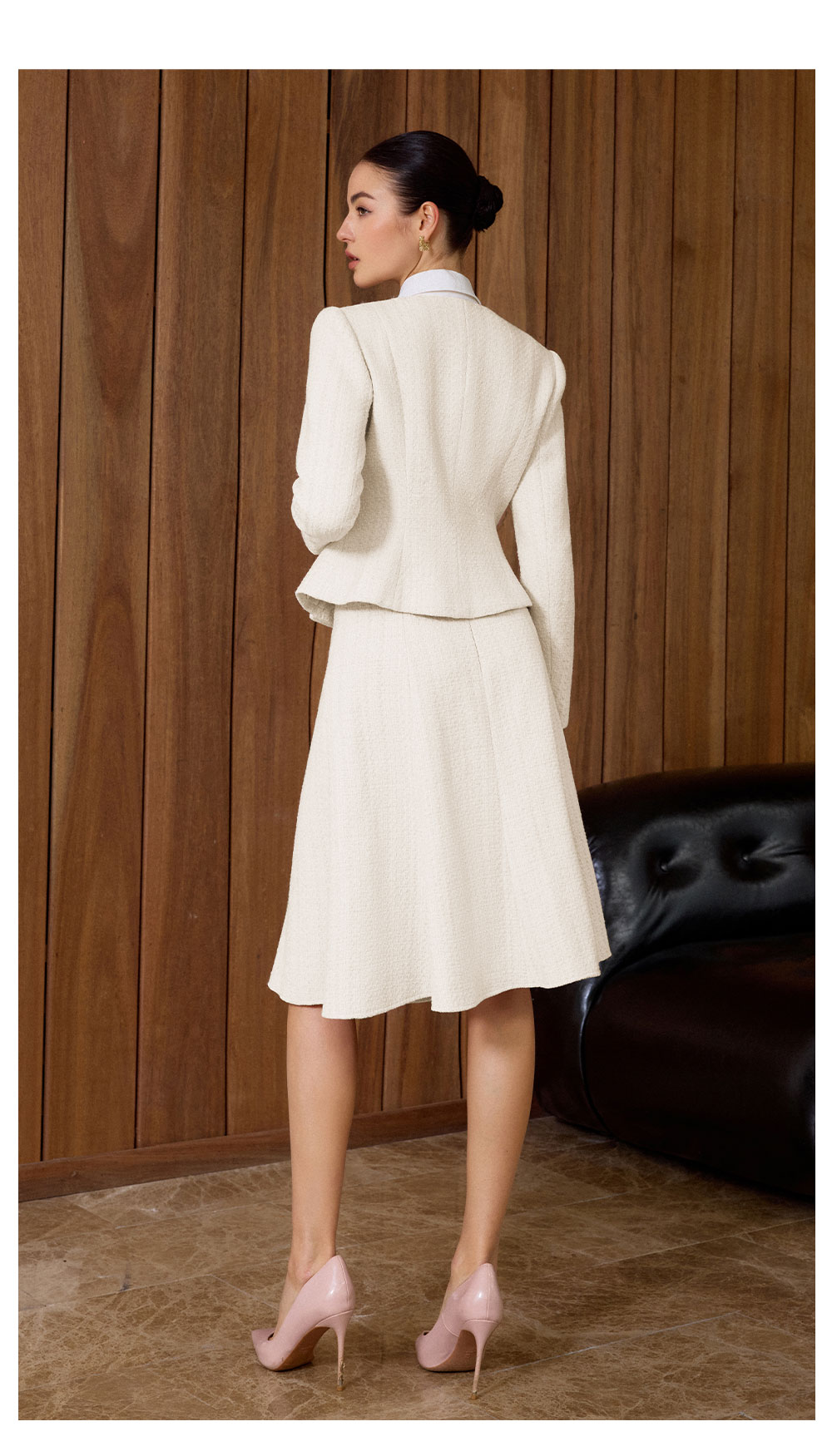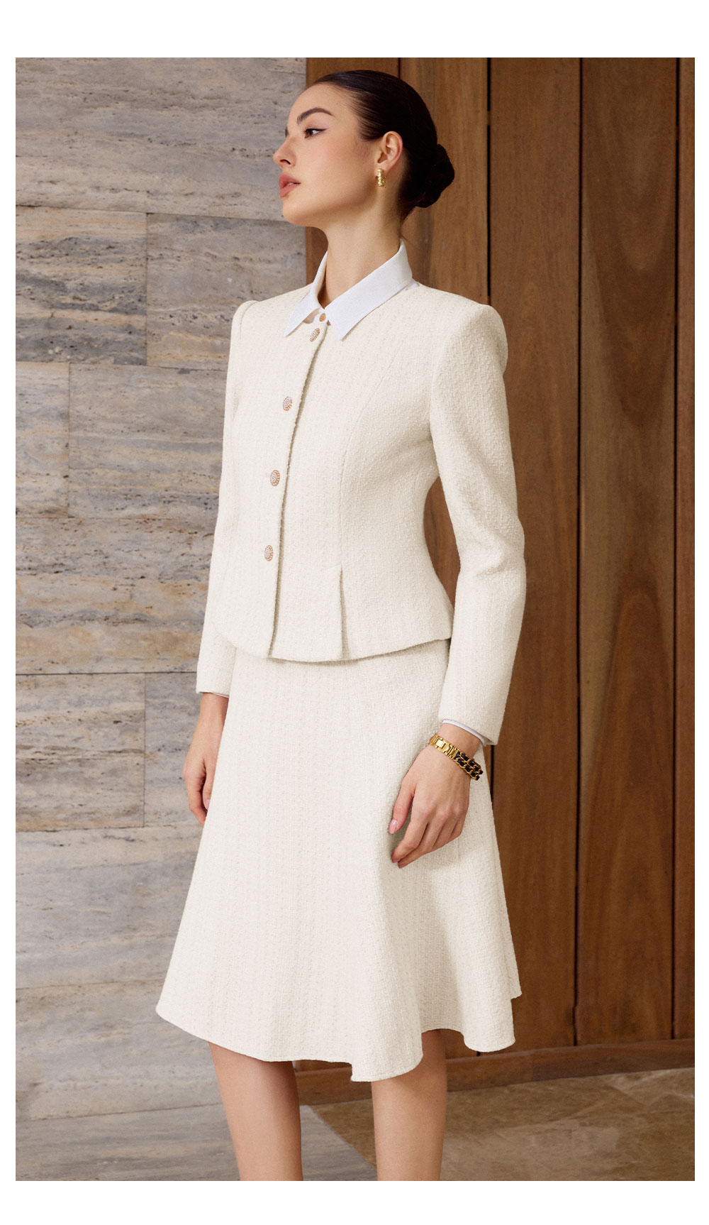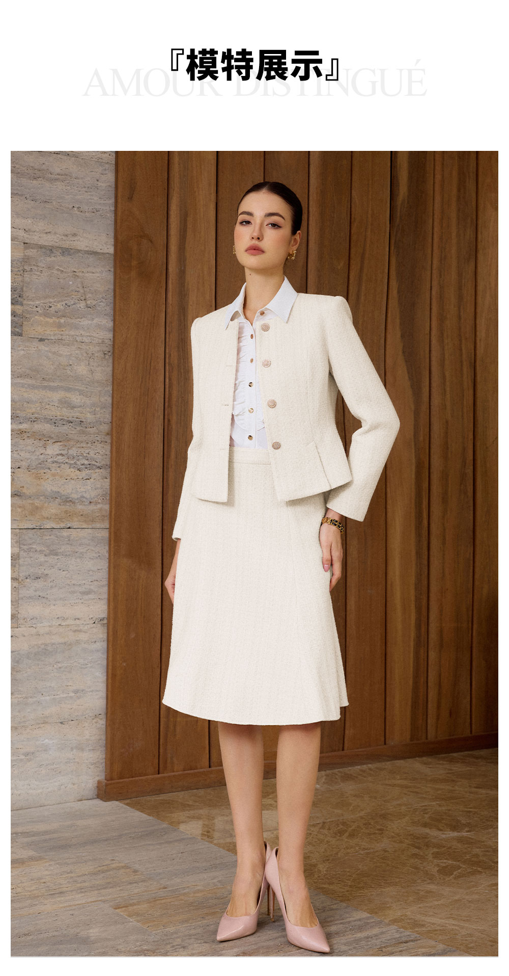 AD法式优雅风西装套装女秋冬高级感职业正装轻熟风米白色两件套裙