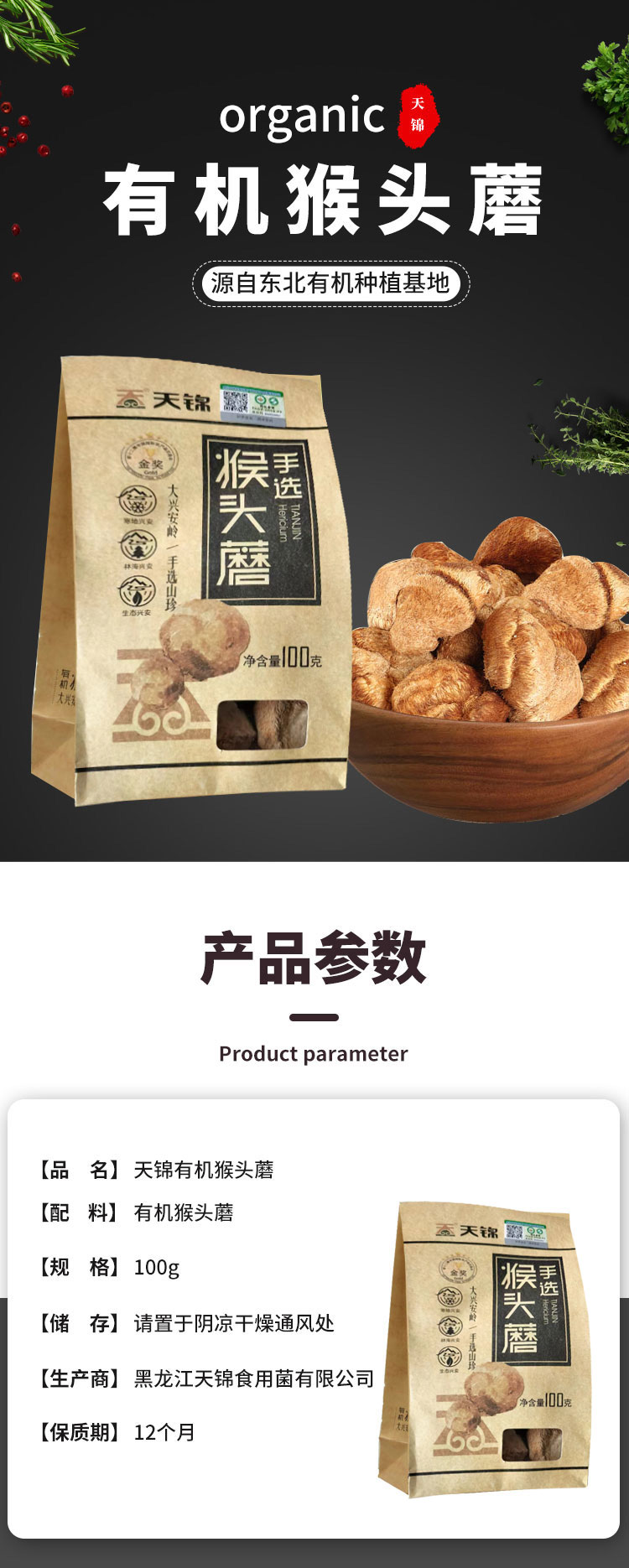 包邮有机猴头蘑100g菌菇干货蘑菇