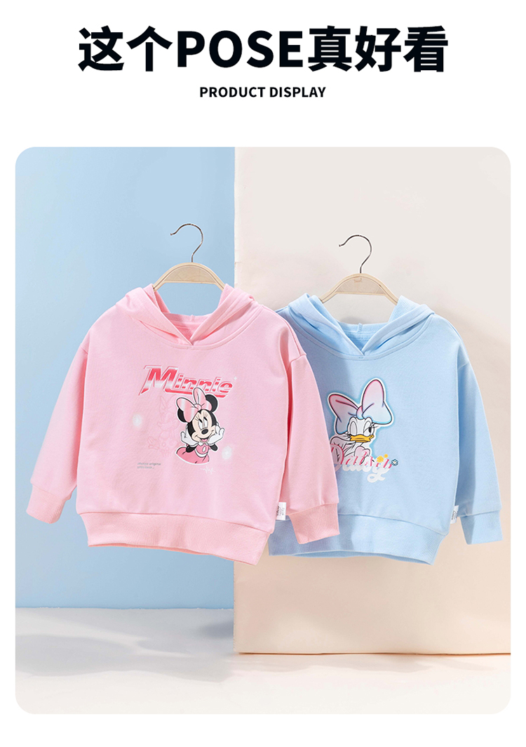 【商城同款】迪士尼2024春季女童连帽卫衣卡通米妮印花上装中小童棉弹卫衣231DS1046