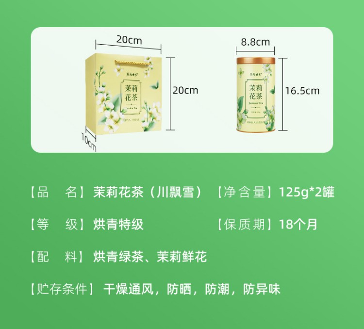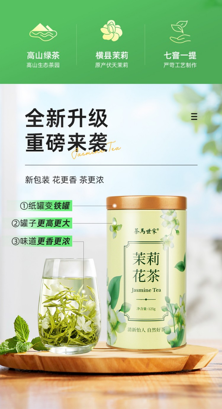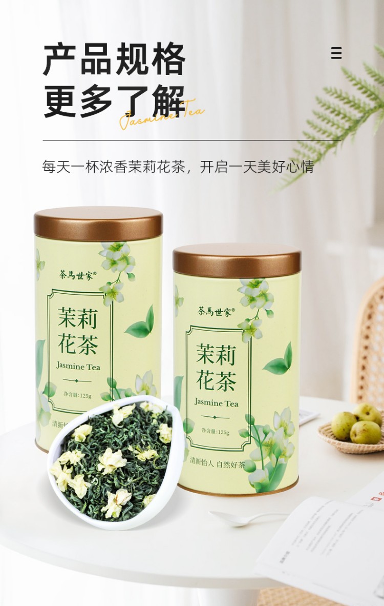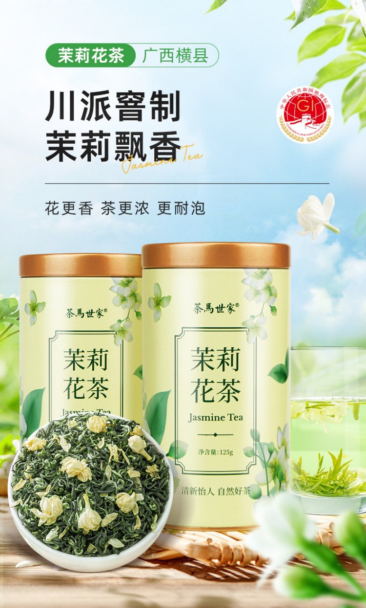 【茉莉花茶】茶马世家丨茉莉绿茶 特级浓香型 罐装 125g*2罐 送手提袋 广西横县茉莉花、川派茉莉飘雪工艺