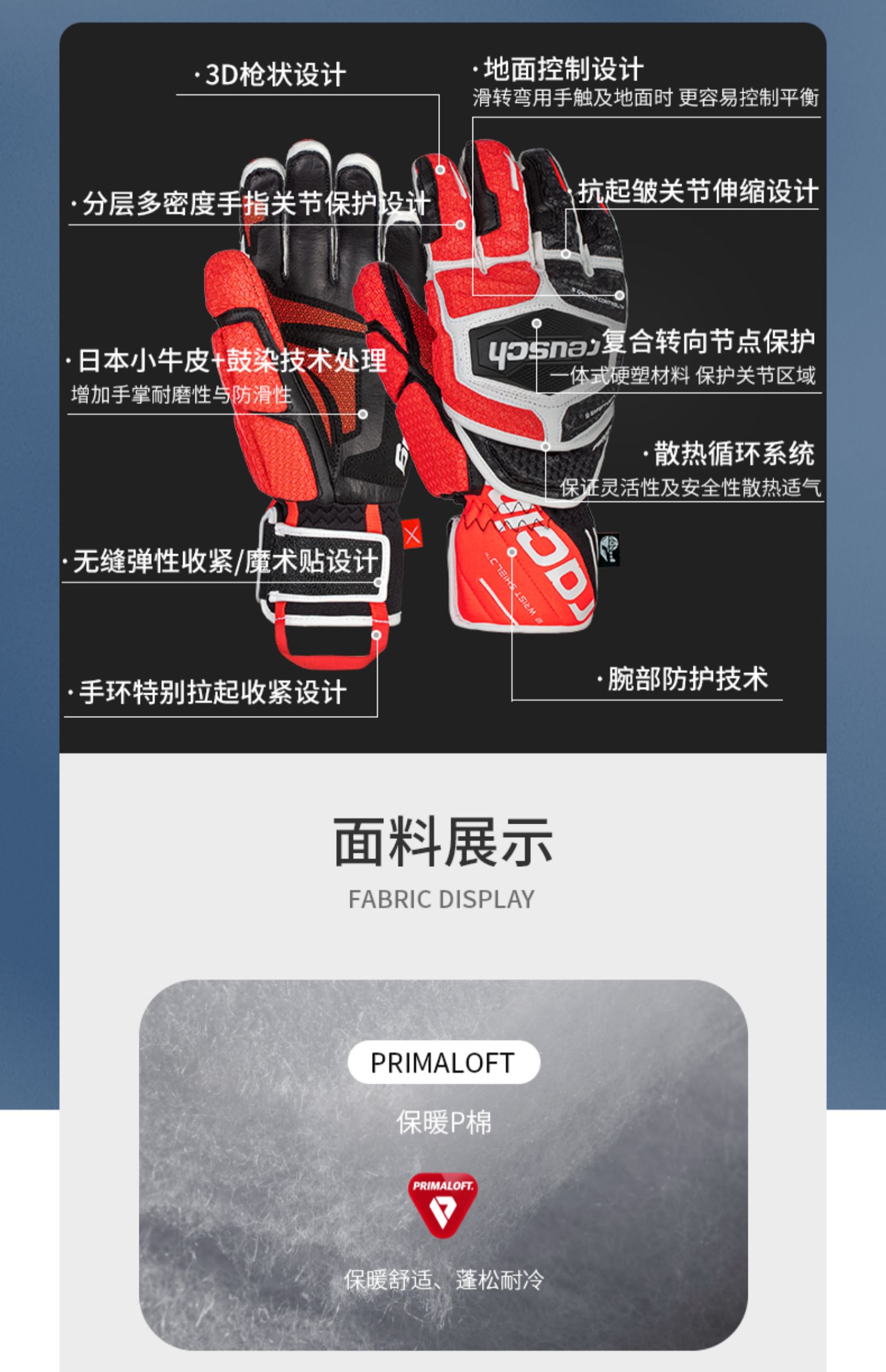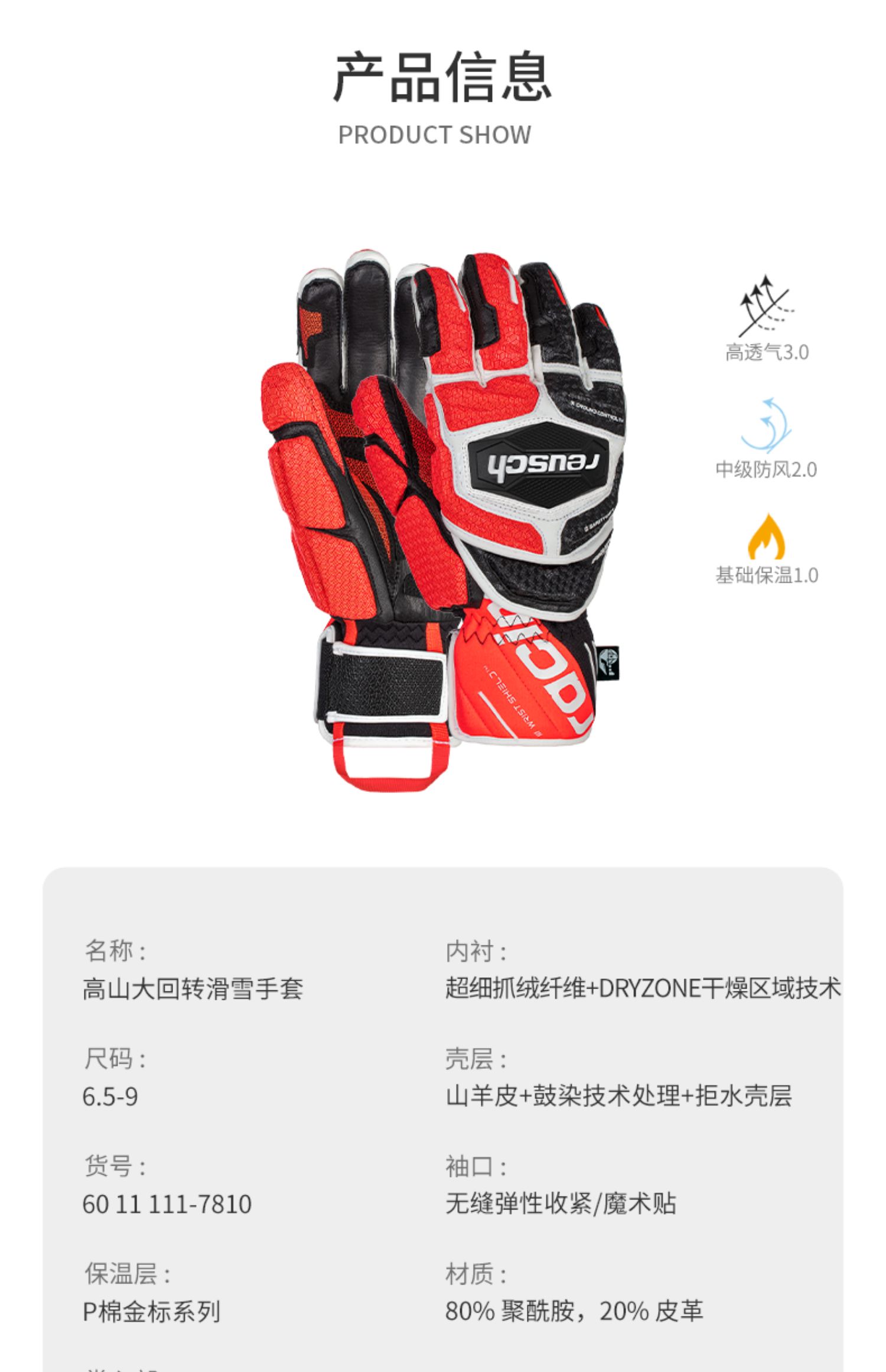 Reusch炫驰男女高山滑雪大回转世界杯竞技冠军款滑雪手套6011111